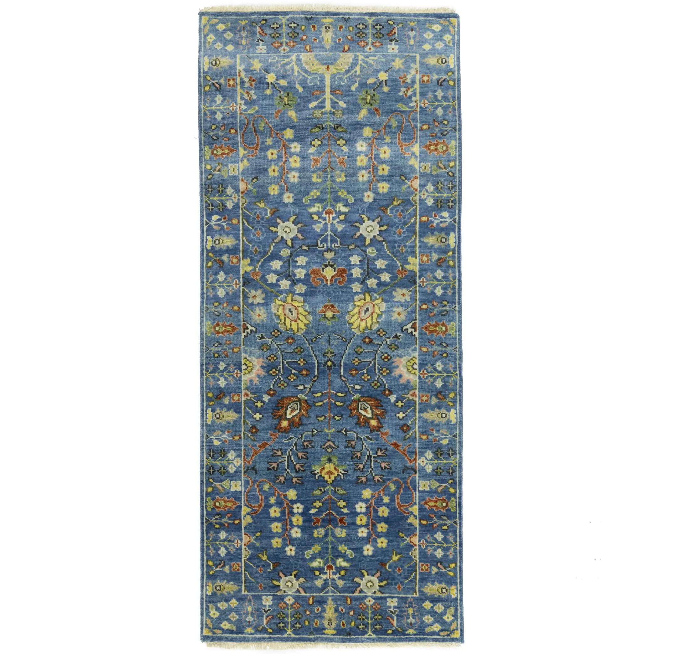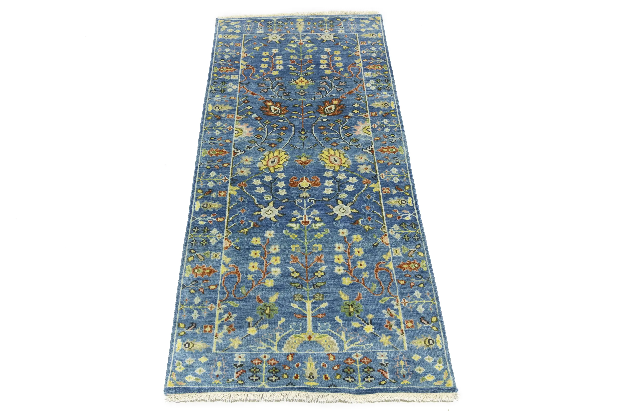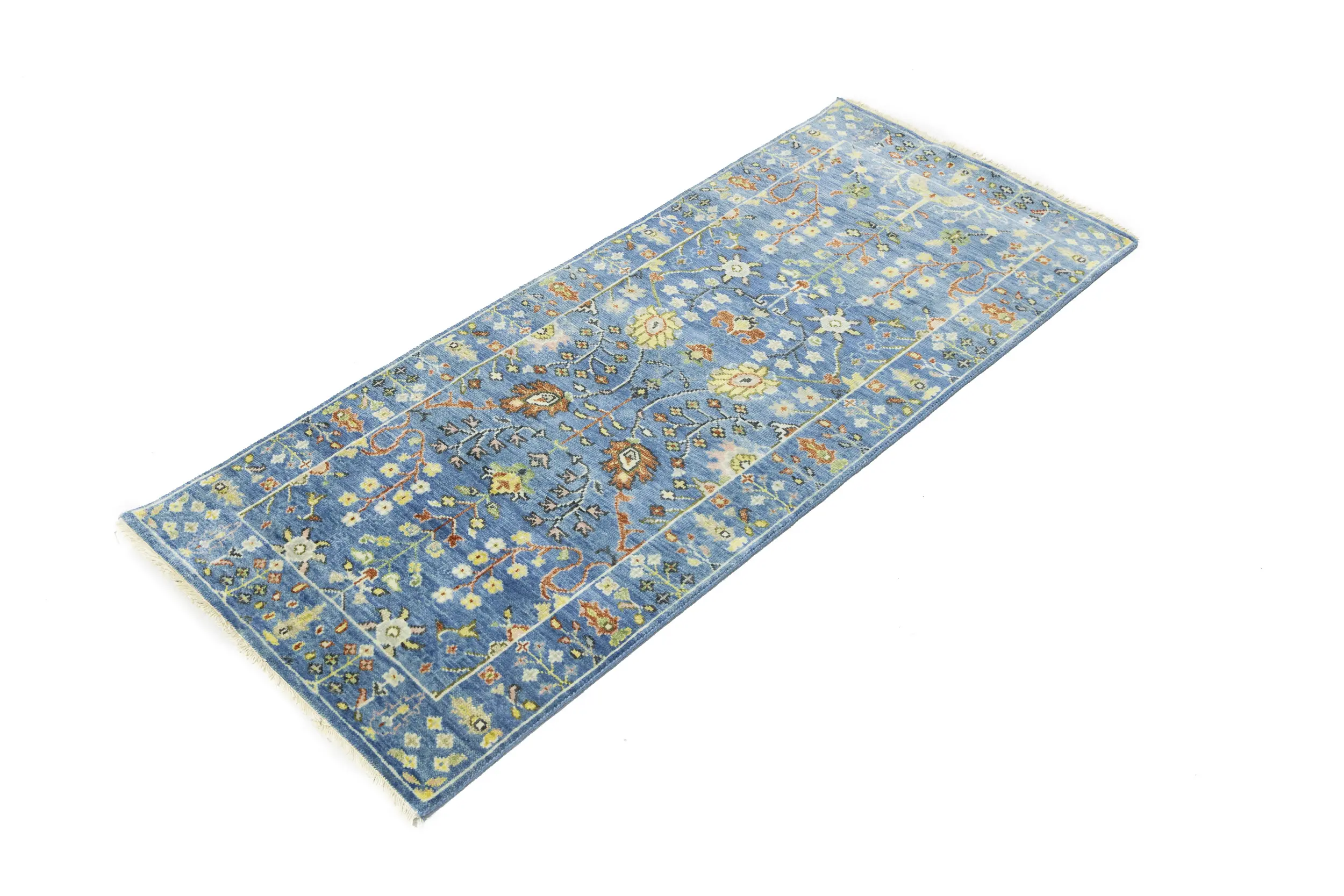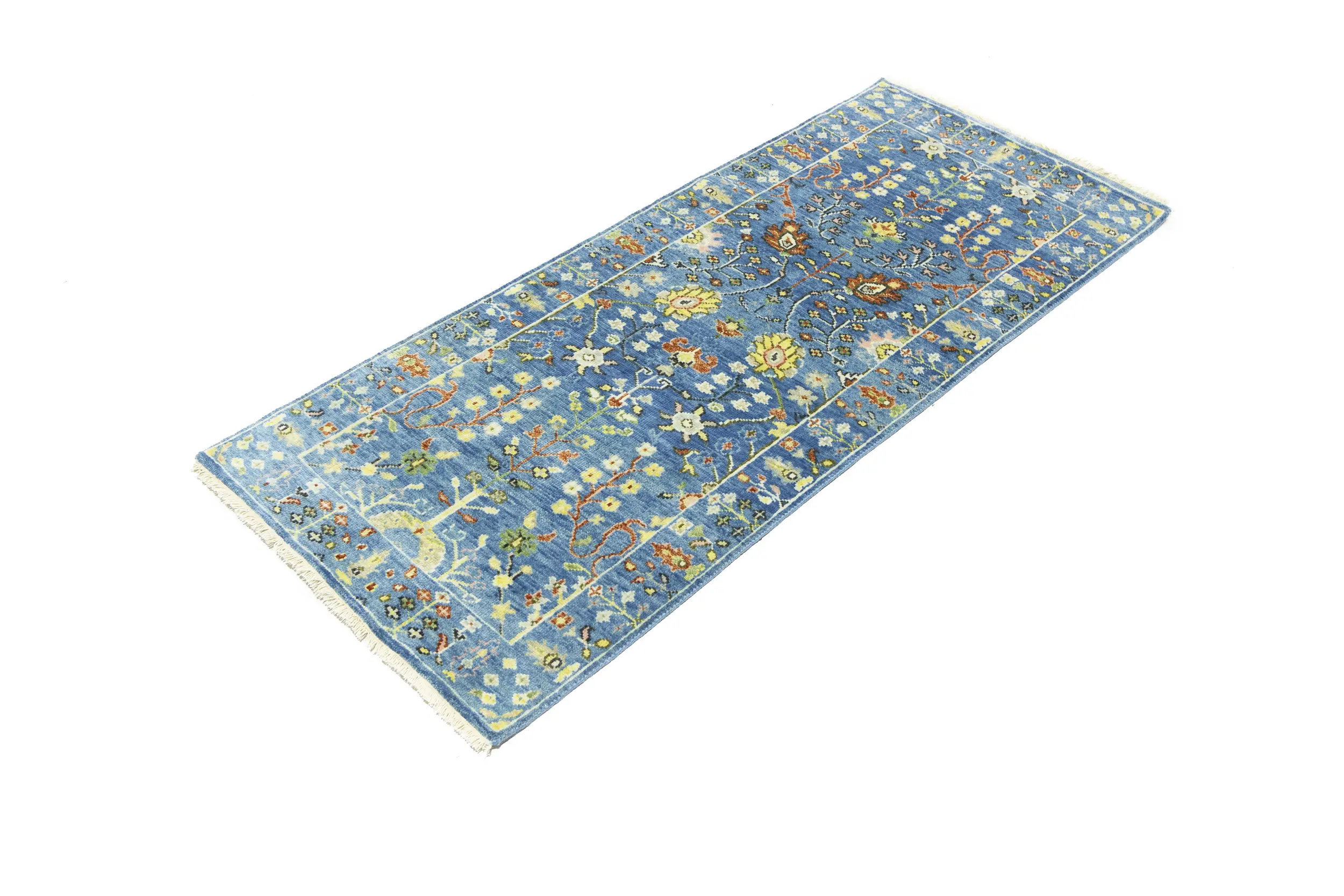 Blue Floral Traditional 2'5x6 Osh Chobi Oriental Runner Rug