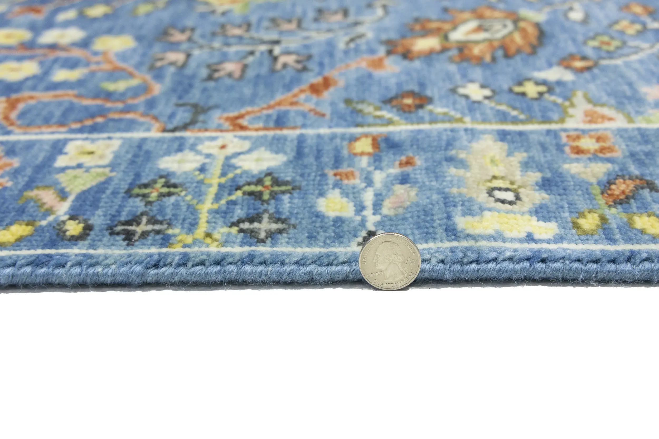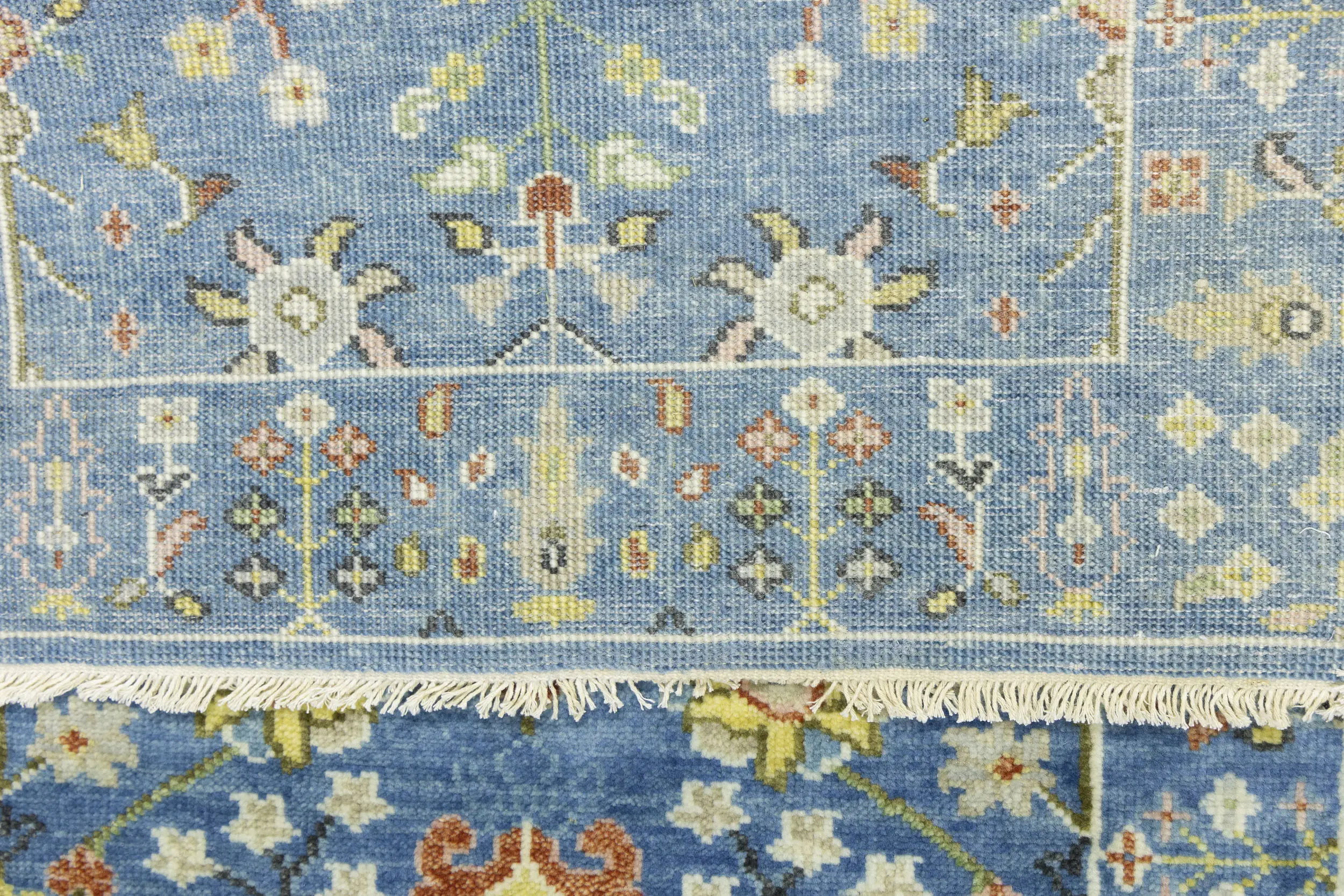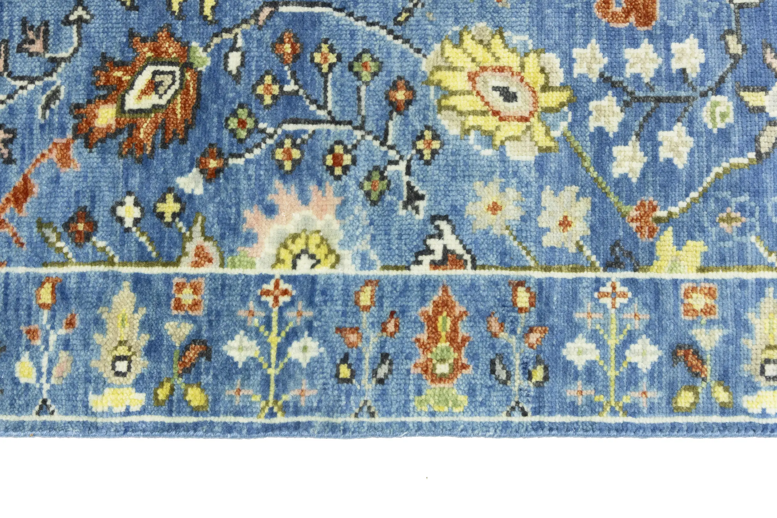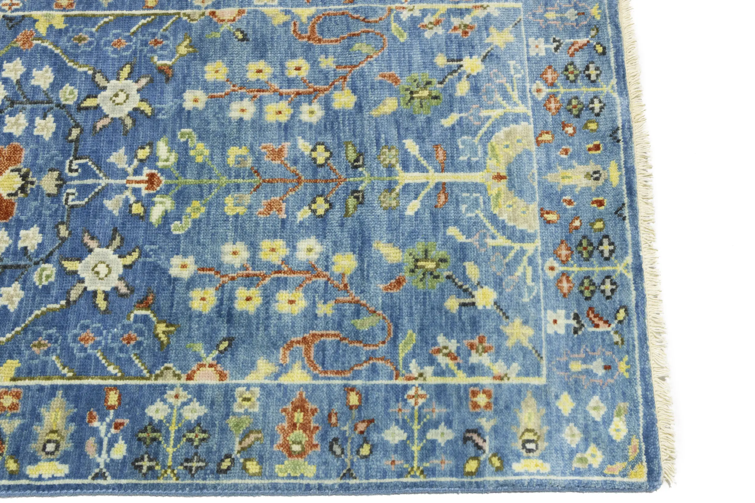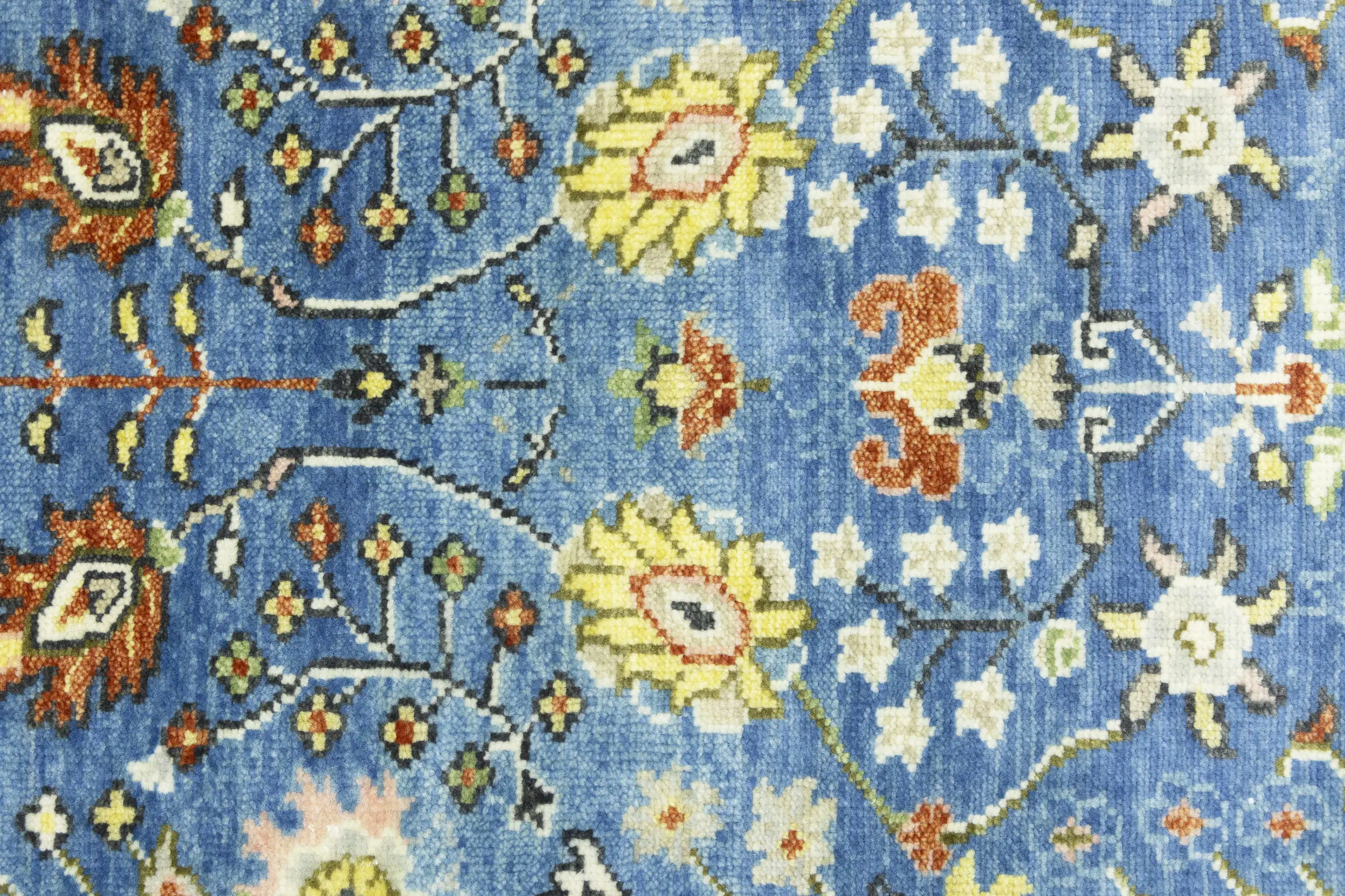 This genuine 2'5x6 blue new Oriental runner was made by the hands of gifted weavers inspired by a variety of spectacular artistic designs, to recreate the aged look of the original piece with a richness of color and ornately patterned background field. What set this vintage style Oriental area runner from the others are the material and dye used (wool pile and cotton foundation), knot count, ancient designs, fantastic grades, and its regional historical connection: it has deep roots, from the story of the people who produced it to the meaning of the symbols and colors displayed across its canvas that have been praised for centuries. This Indian home décor carpet will be completely cozy and inviting that never will go out of style! Also, this Oriental runner would be among your most valuable treasures, it is a great investment that accrues value over time, and it will last for generations because was woven with high-quality, all-natural wool. Environmentally friendly, opulent yet affordable; this rug will give you a thorough amount of character to help define your living space with elegance and warmth that will capture the eyes and attention of your audience (homeowners, designers, decorators, family and friends).