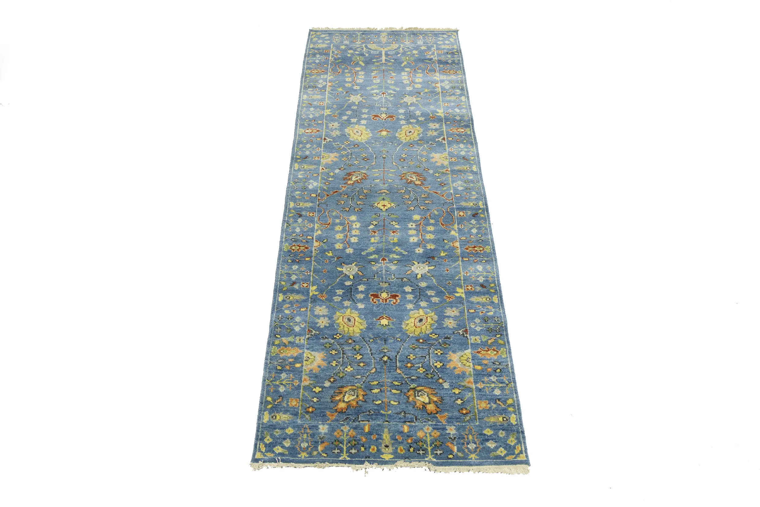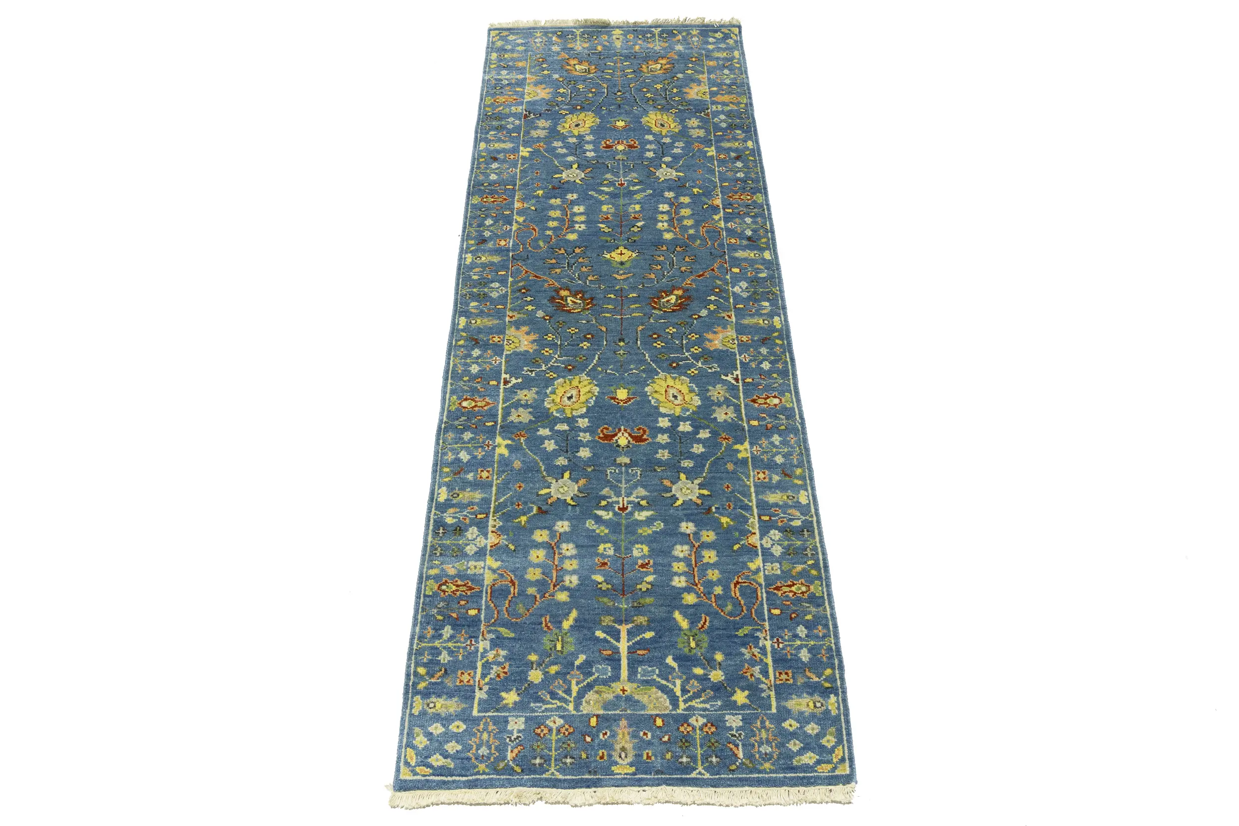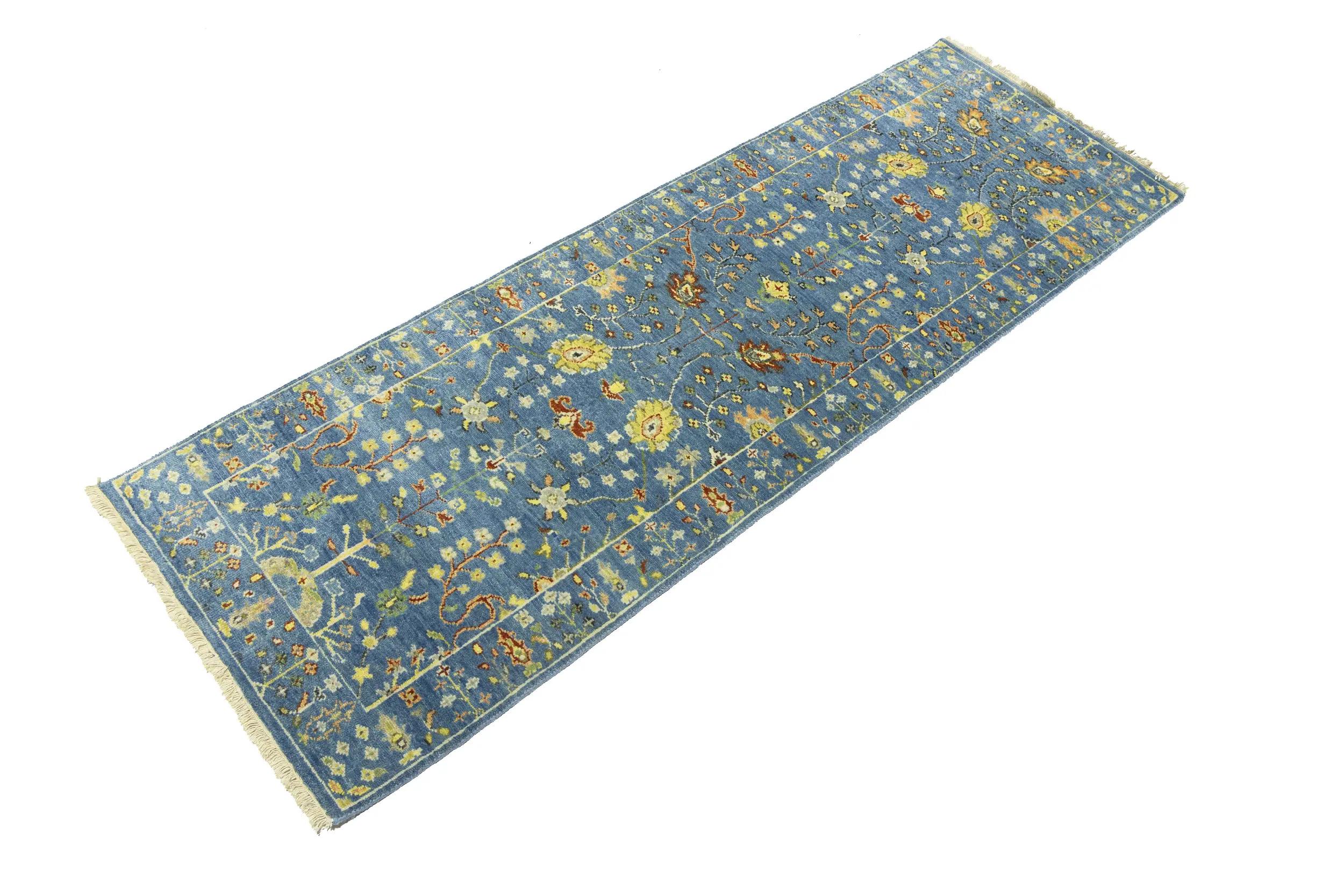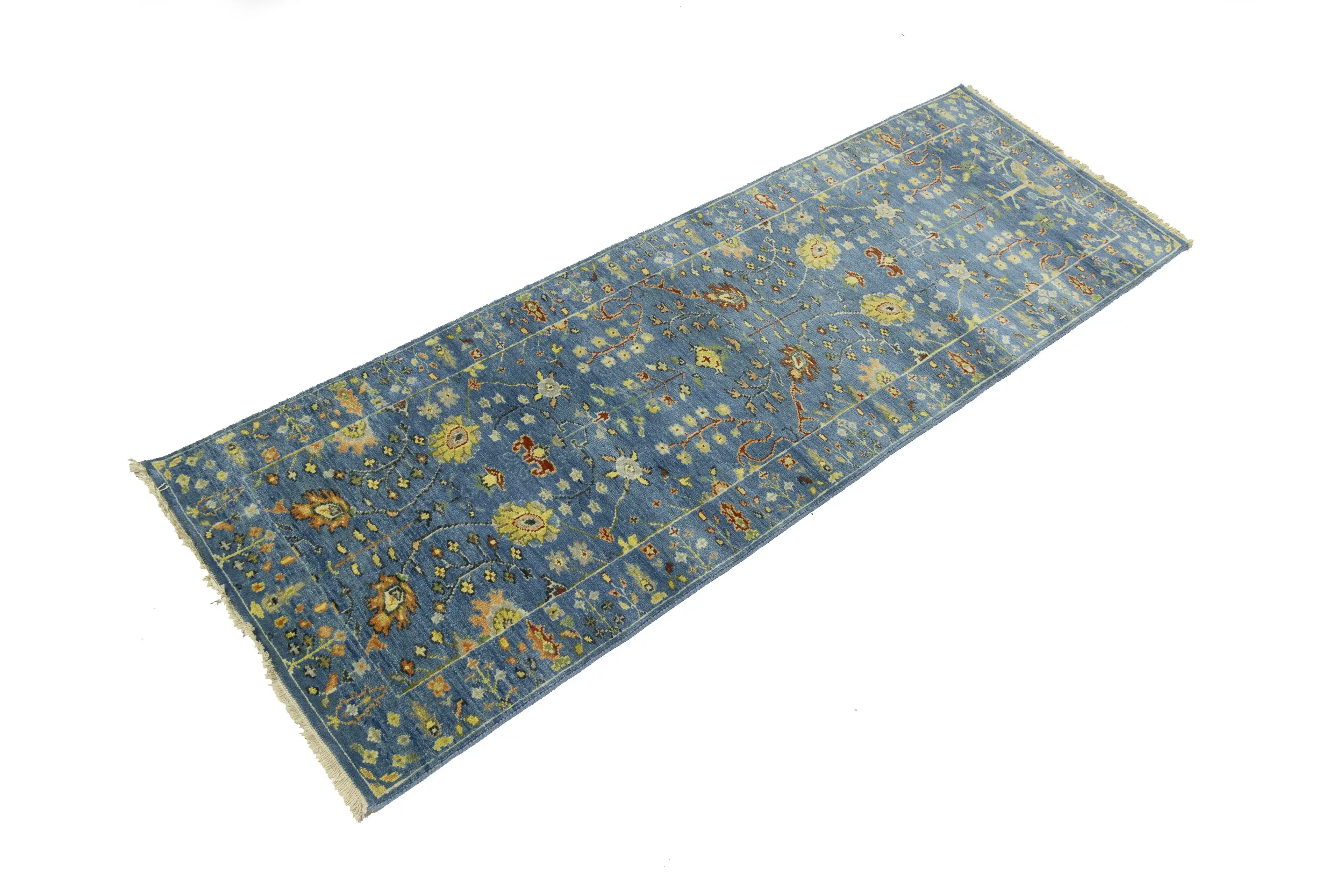 Blue Floral Traditional 3x8 Oushak Chobi Oriental Runner Rug