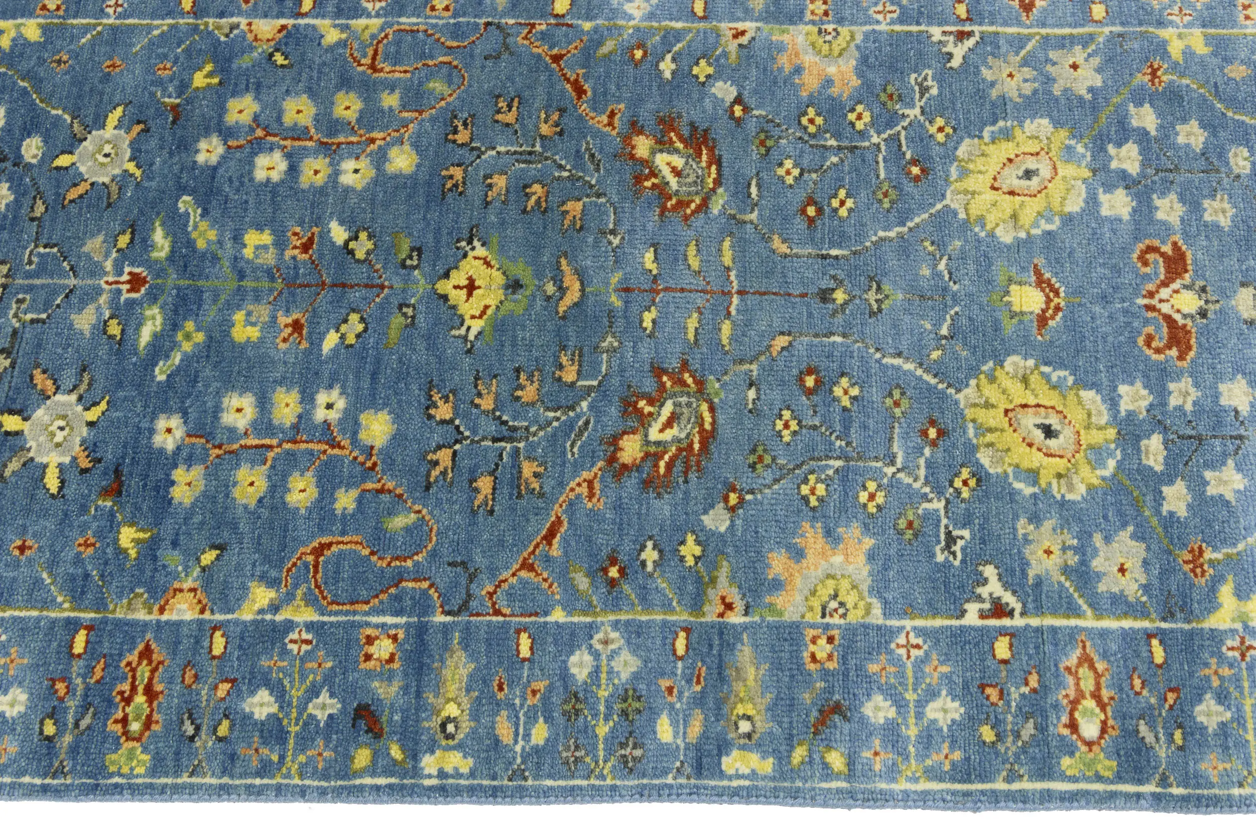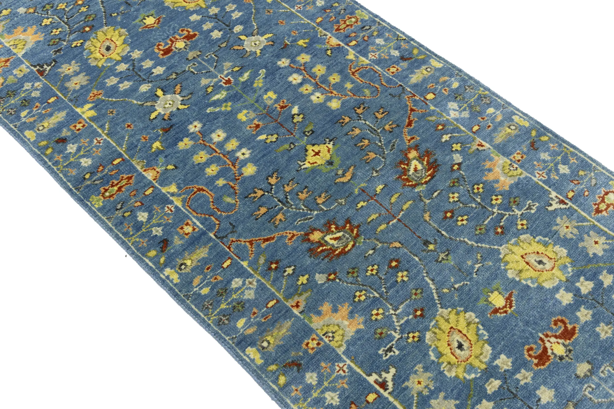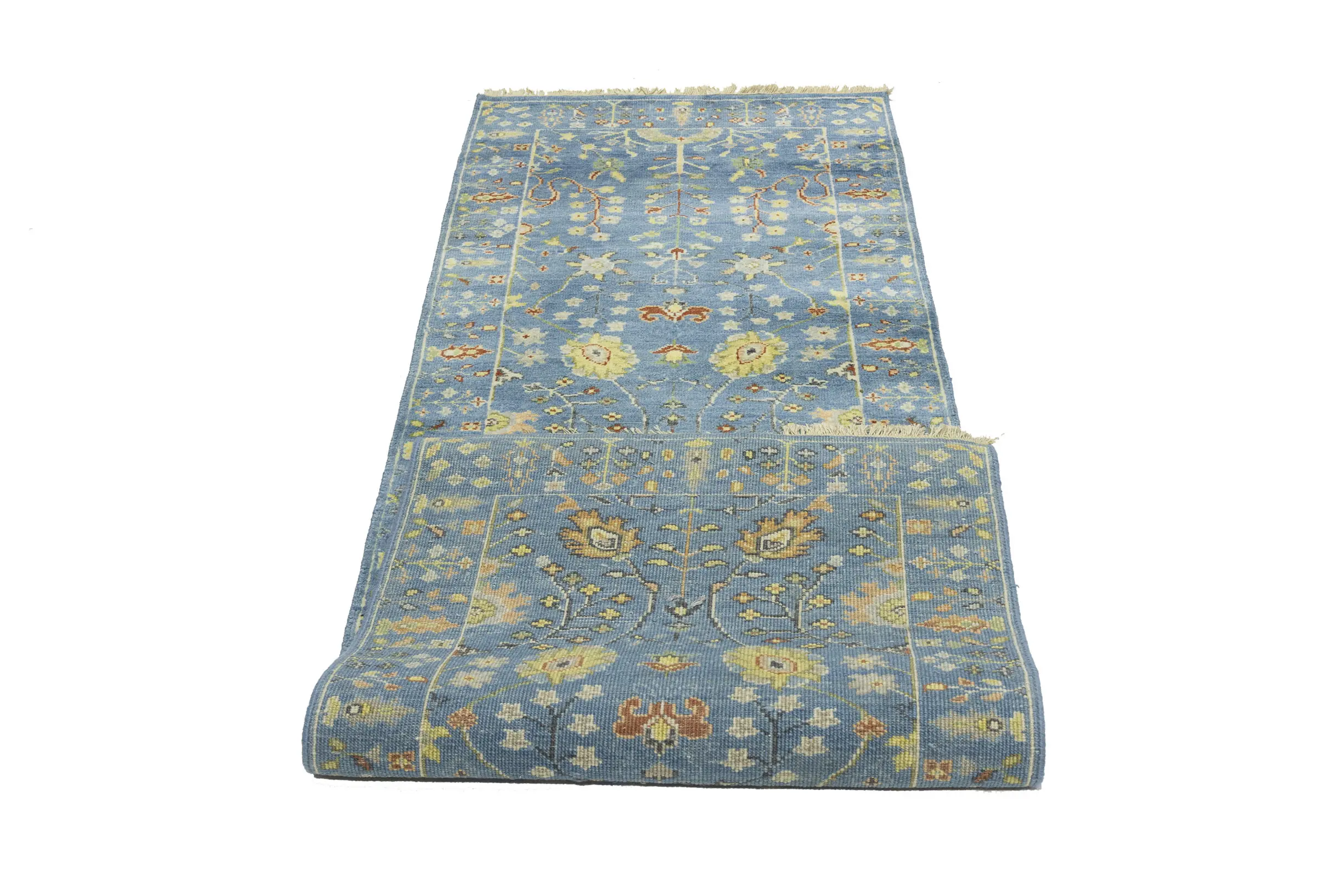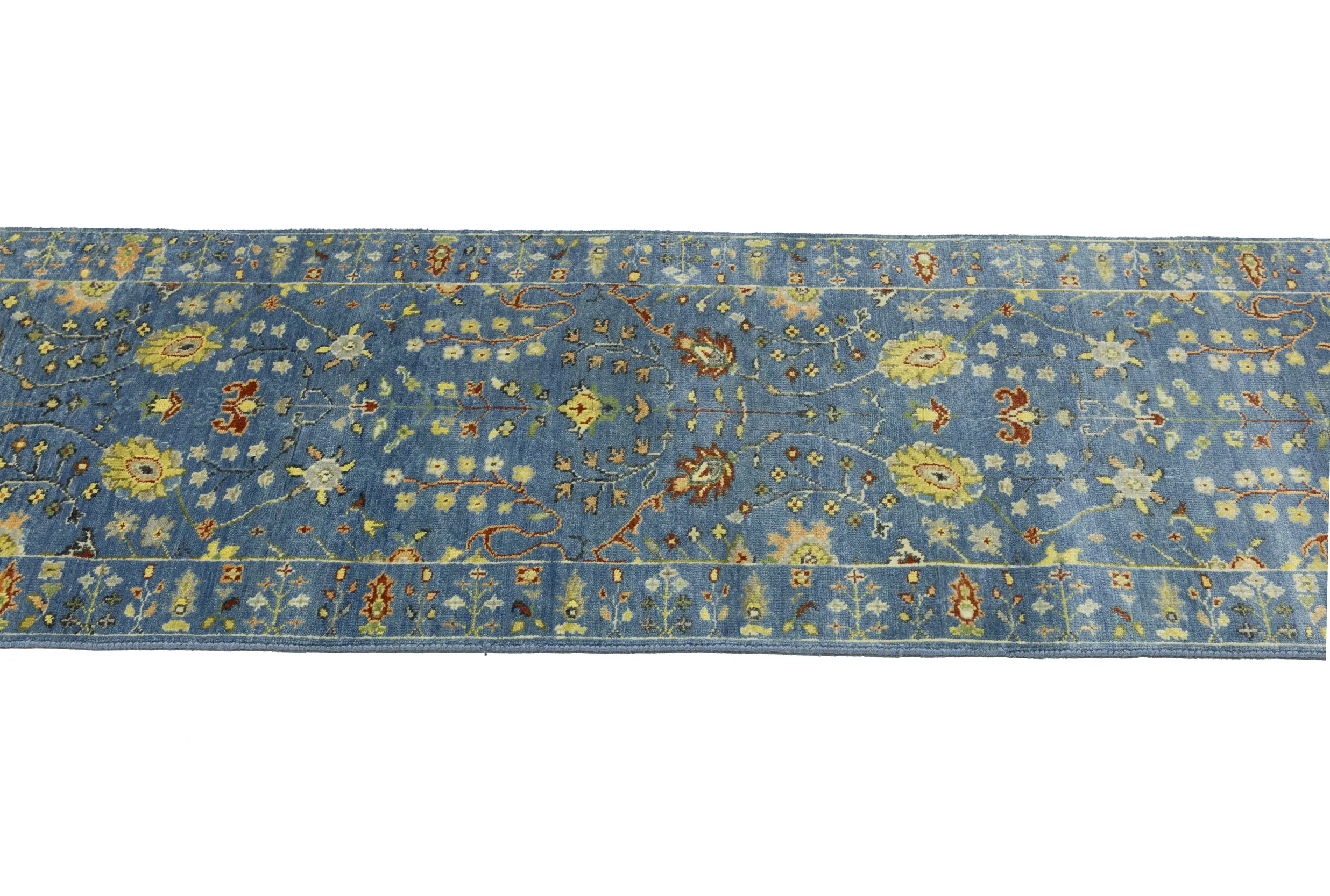 Blue Floral Traditional 3x8 Oushak Chobi Oriental Runner Rug