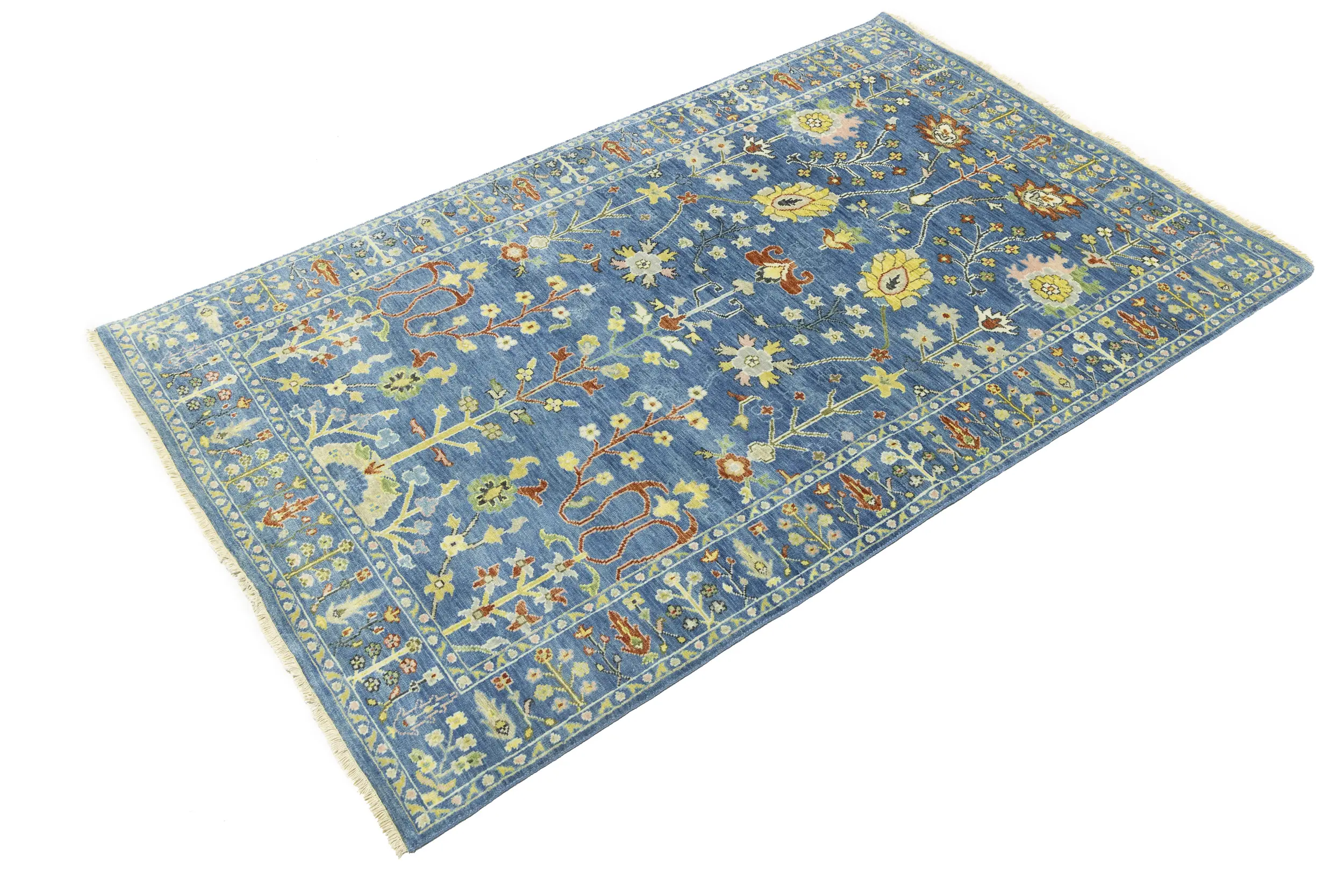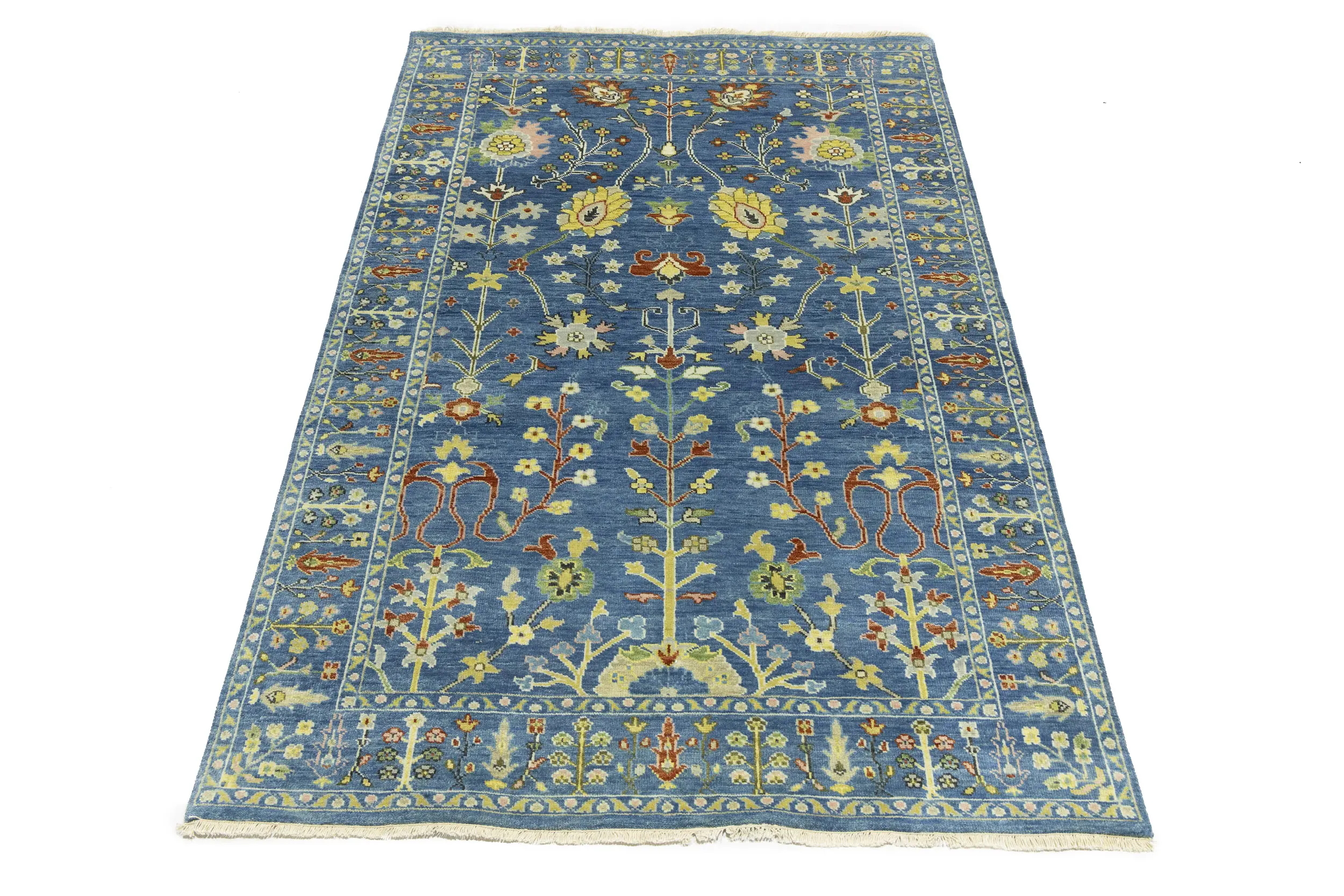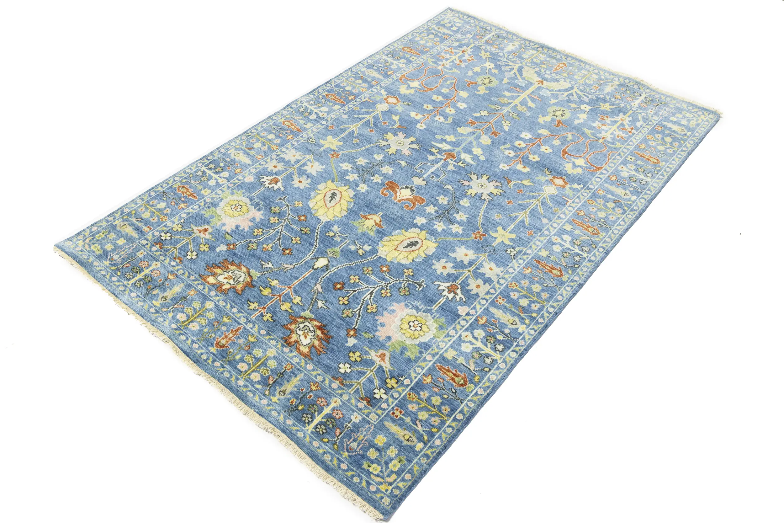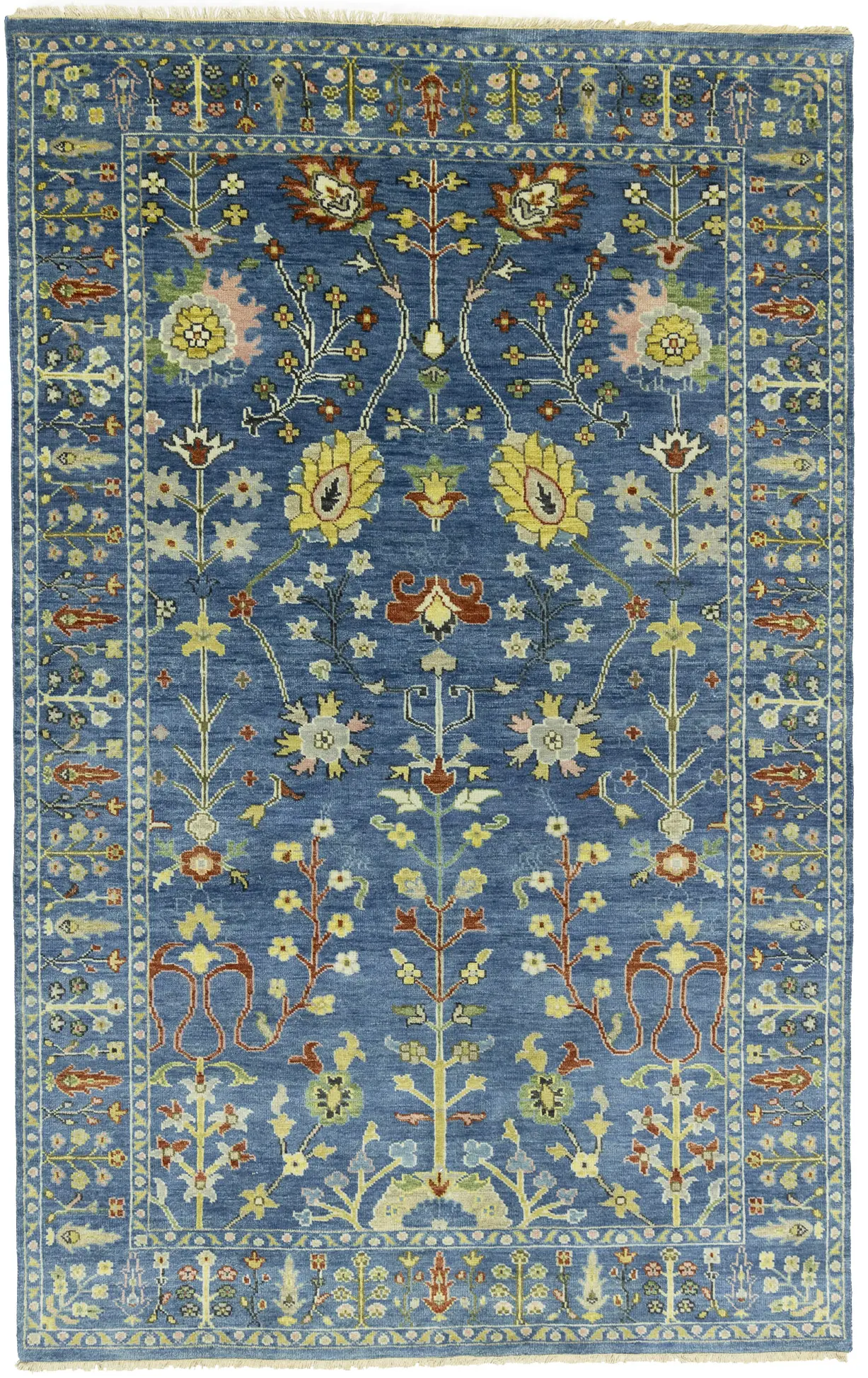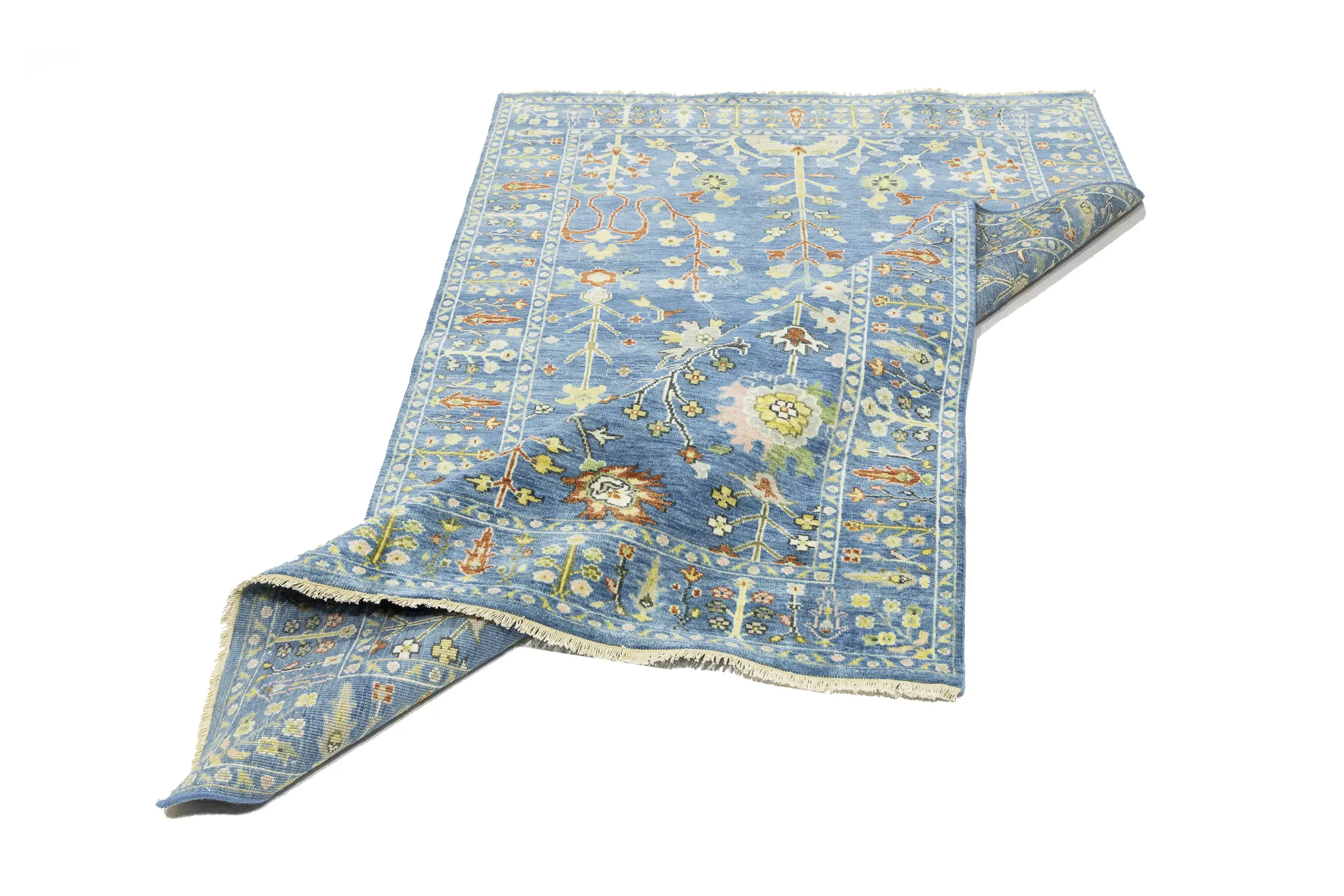 Blue Floral Traditional 5X8 Oushak Chobi Oriental Rug