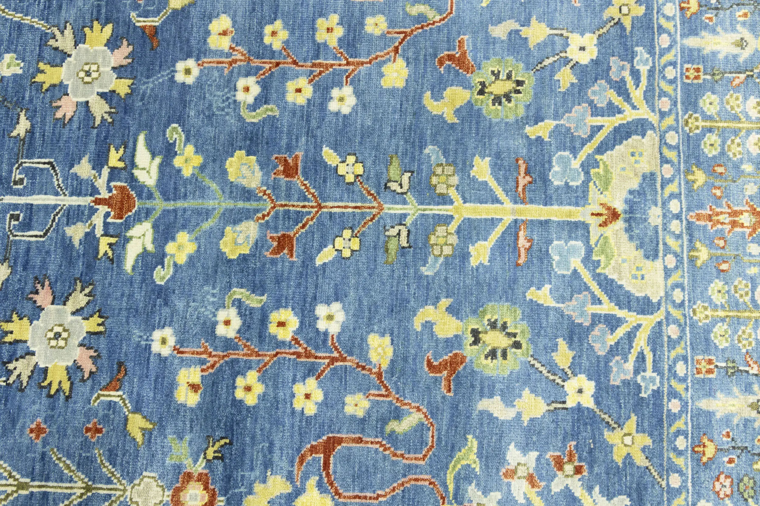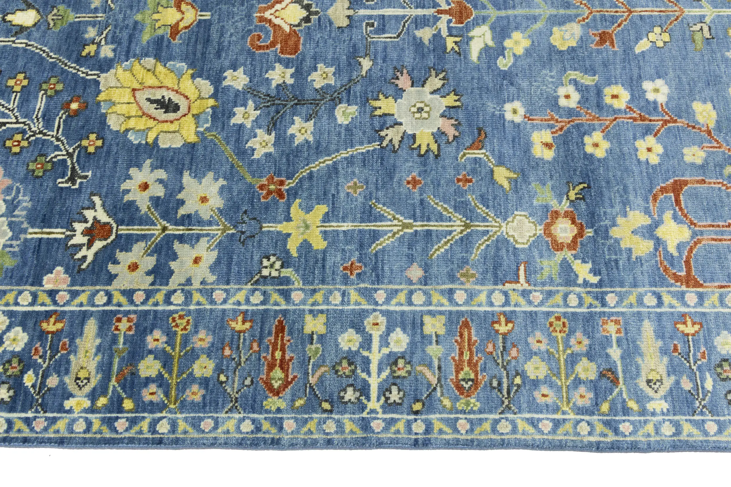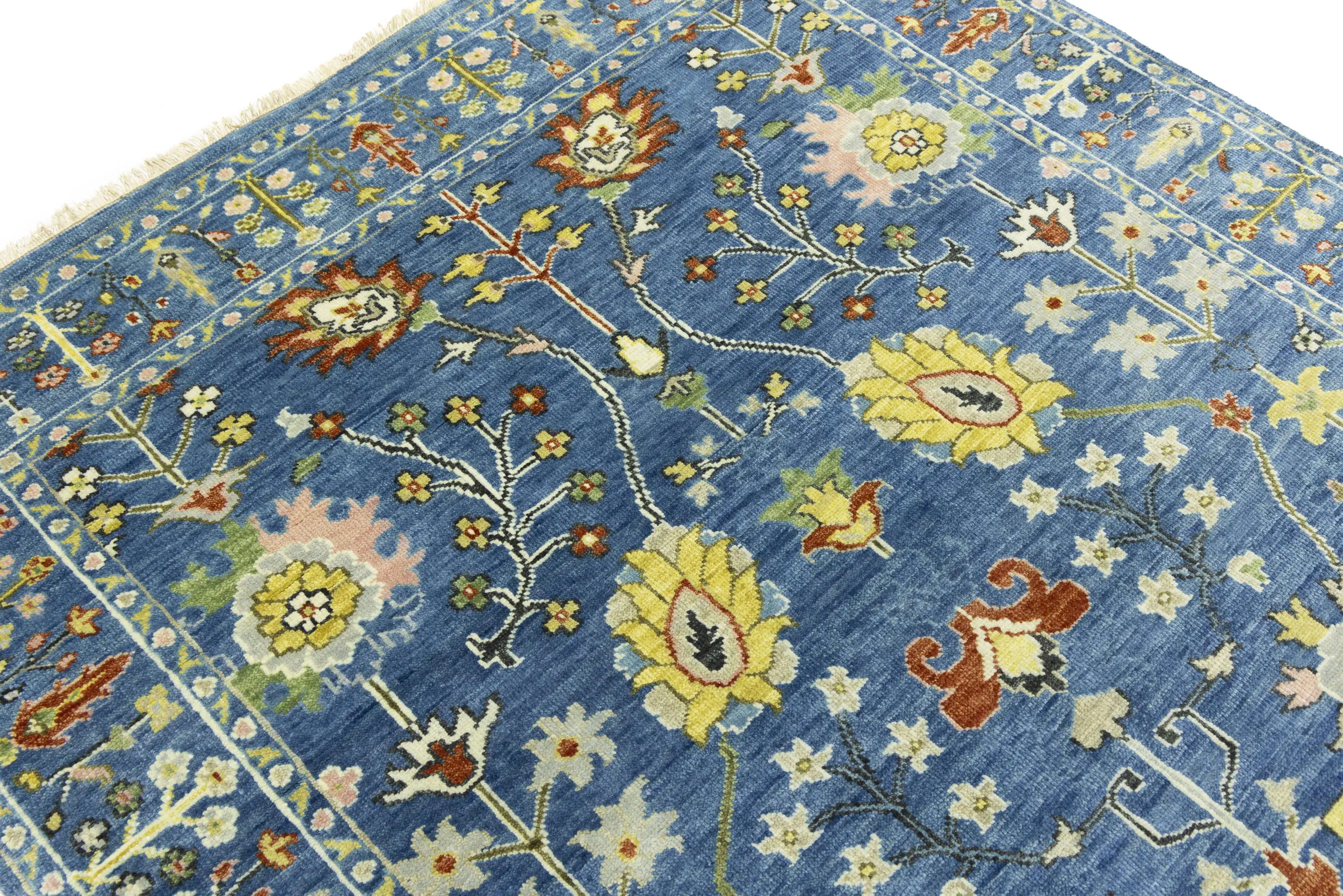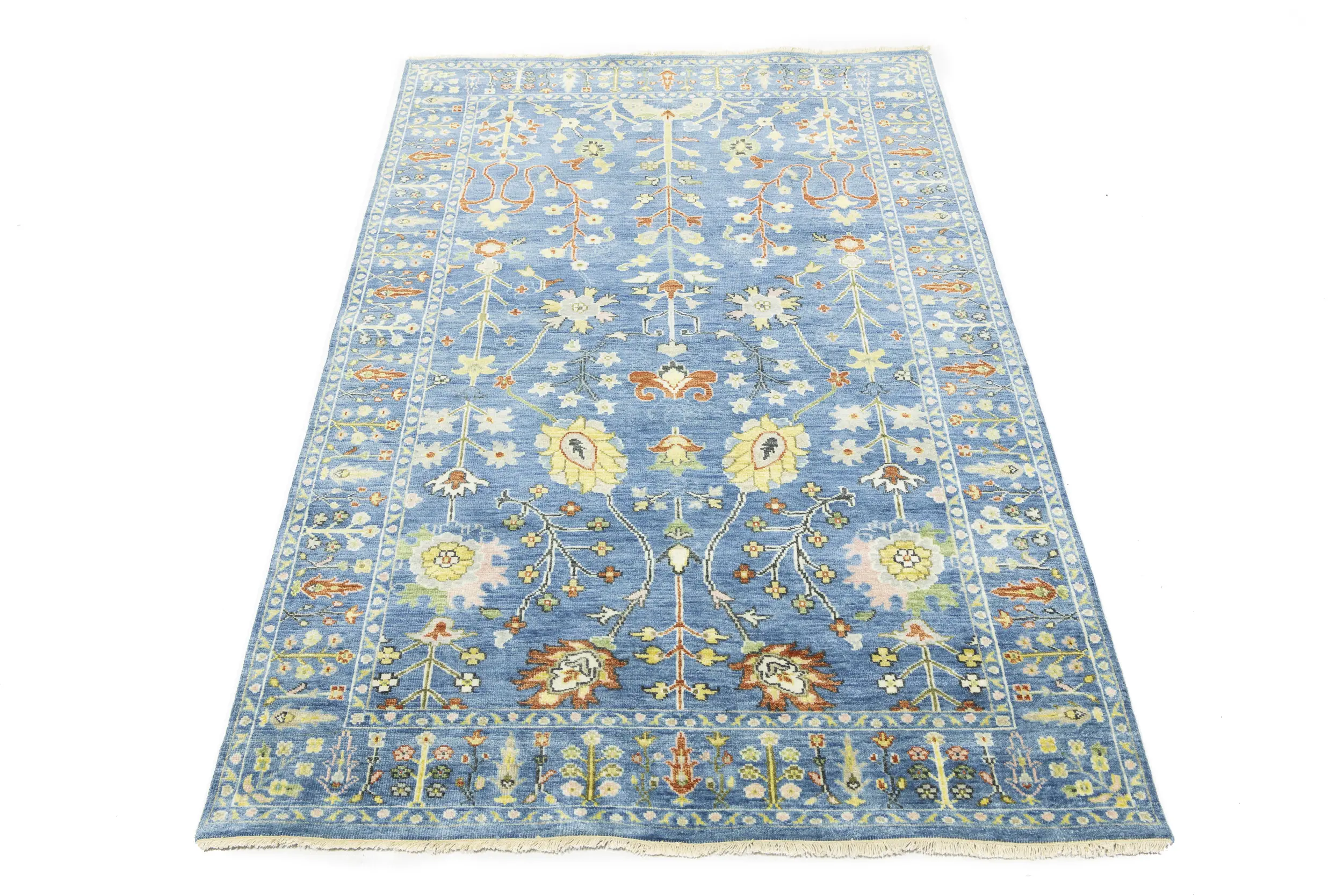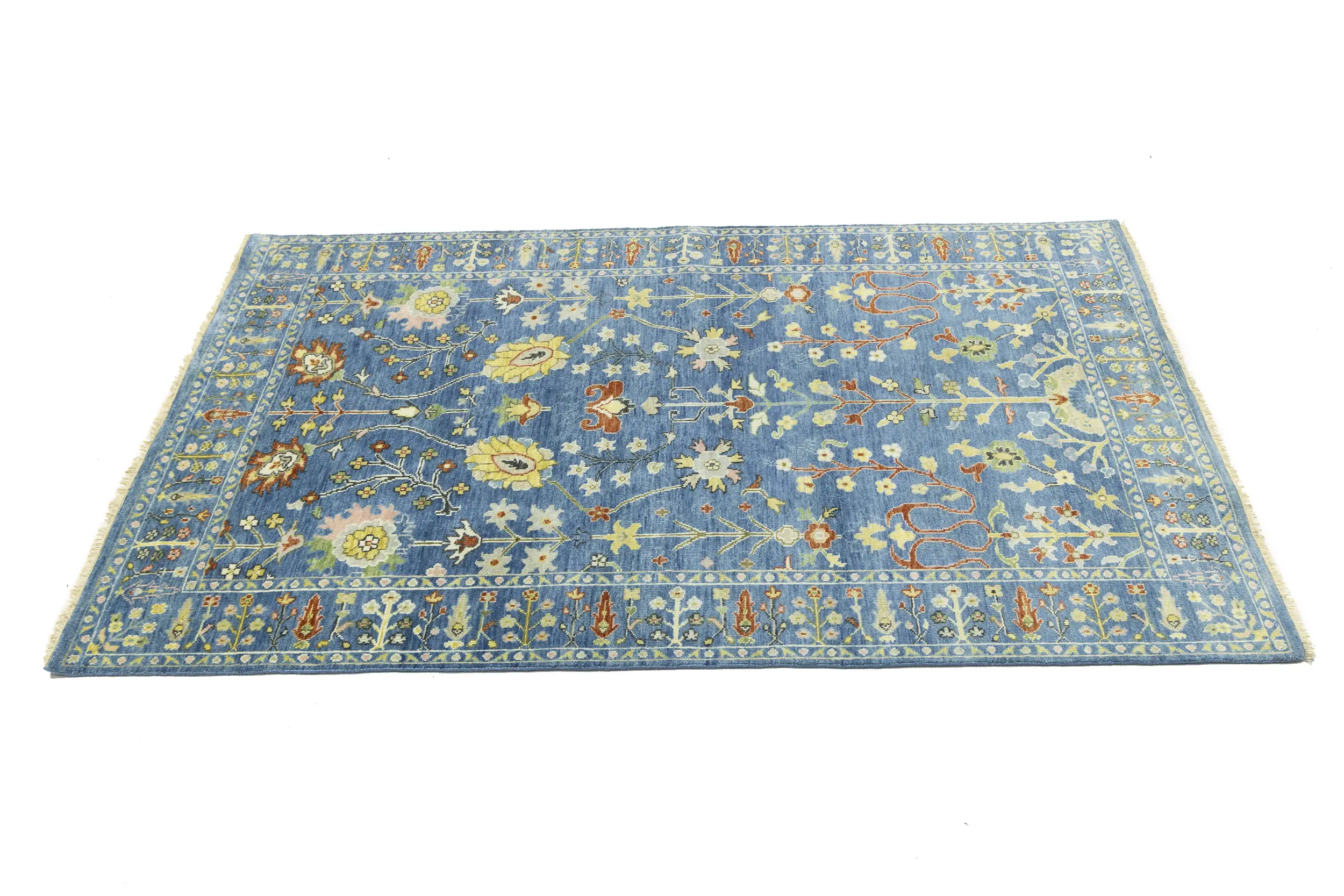 Blue Floral Traditional 5X8 Oushak Chobi Oriental Rug