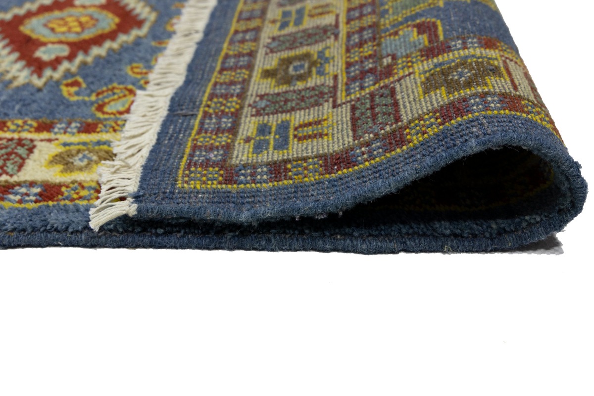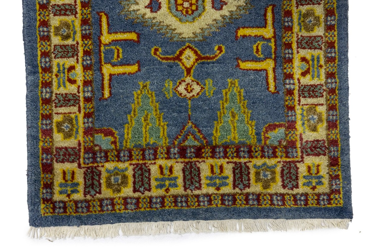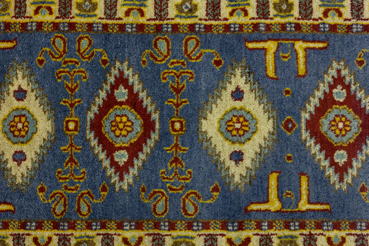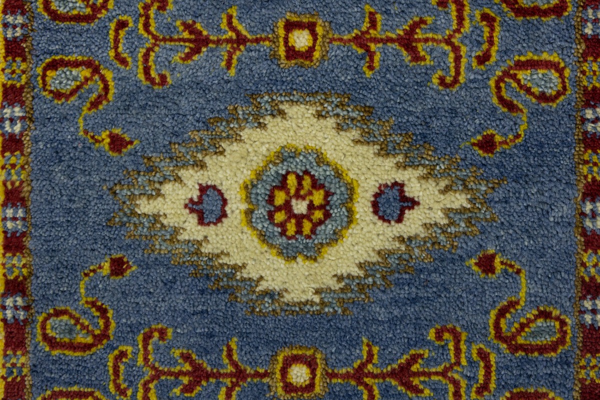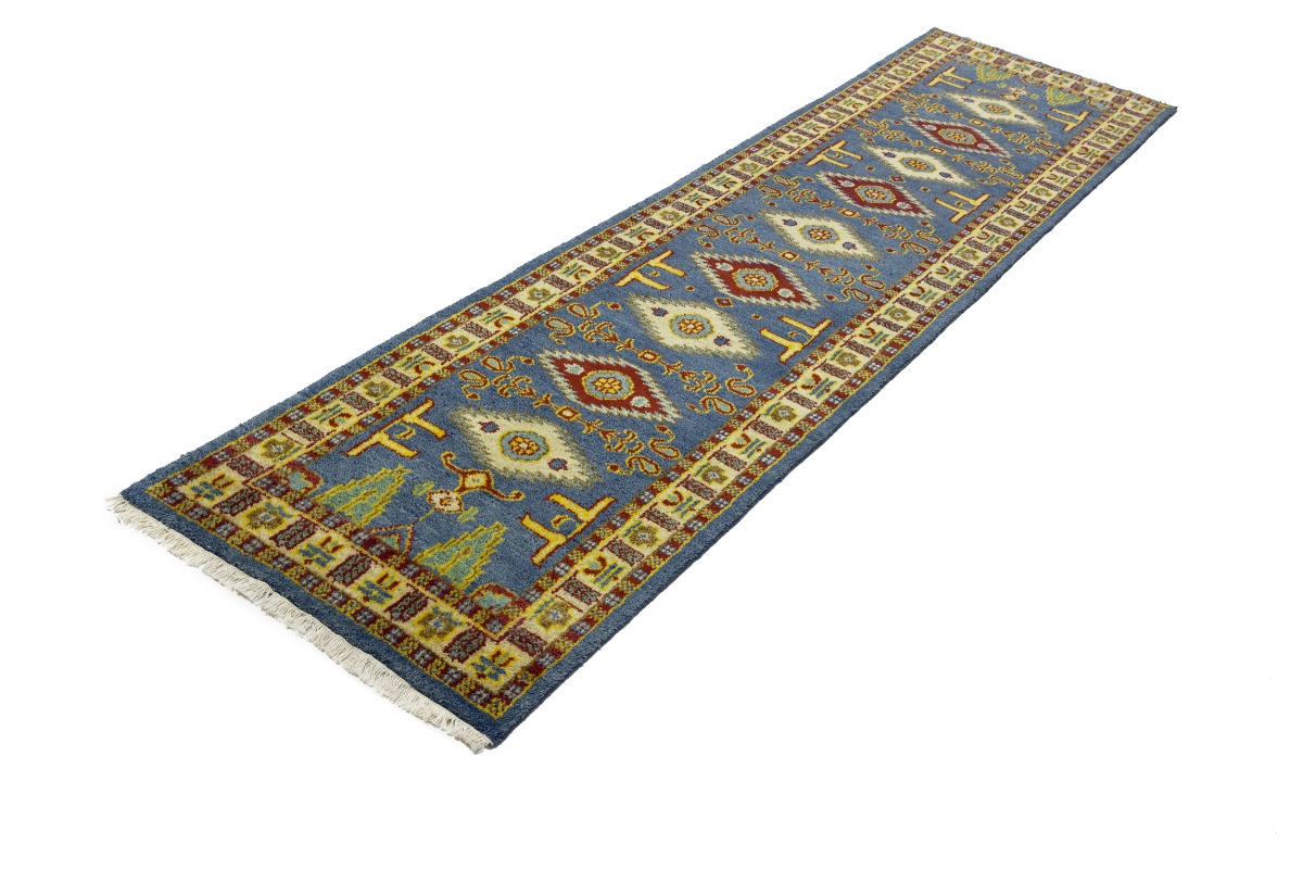 Blue Geometric 2'5X9'7 Kazak Oriental Runner Rug