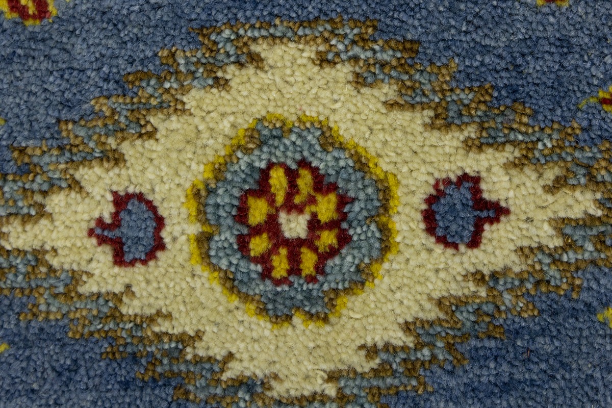 This original 2'5X9'7 blue new Oriental runner was finely knotted by the hands of weavers influenced by a variety of amazing artistic designs, to recreate the aged look of the exceptional piece with a richness of color and embellished background field. What set this vintage style Oriental area runner from the others are the material and dye used (wool pile and cotton foundation), knot count, antique designs, fantastic grades, and its regional historical connection: it has deep roots, from the story of the people who produced it to the meaning of the symbols and colors displayed across its canvas that have been praised for centuries. This Indian home décor carpet will be completely cozy and inviting that never will go out of style! Also, this Oriental rug would be among your most valuable treasures, it is a great investment that increase in value over time, and it will last a lifetime because was woven with high-quality, all-natural wool. Eco-friendly, opulent yet affordable; this runner will give you an extra pop of character to help define your home environment with luxury and warmth that will capture the eyes and attention of your audience (homeowners, designers, decorators, family and friends). OT-8015