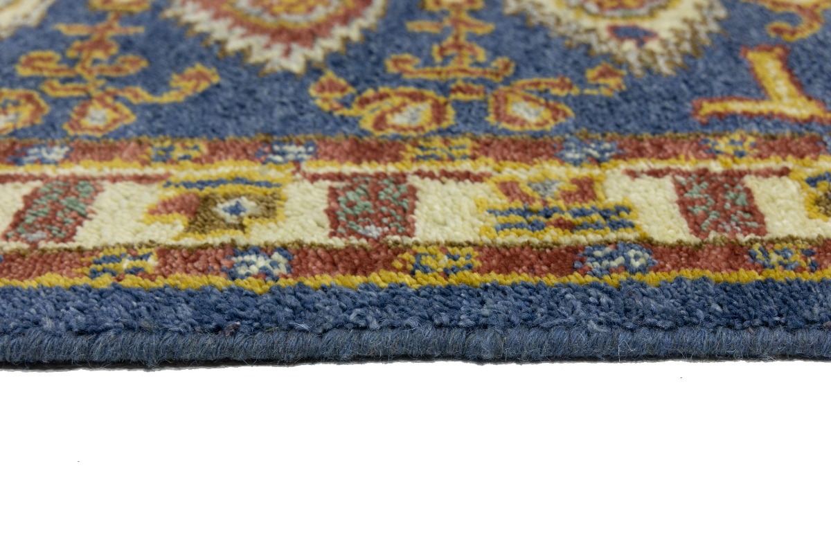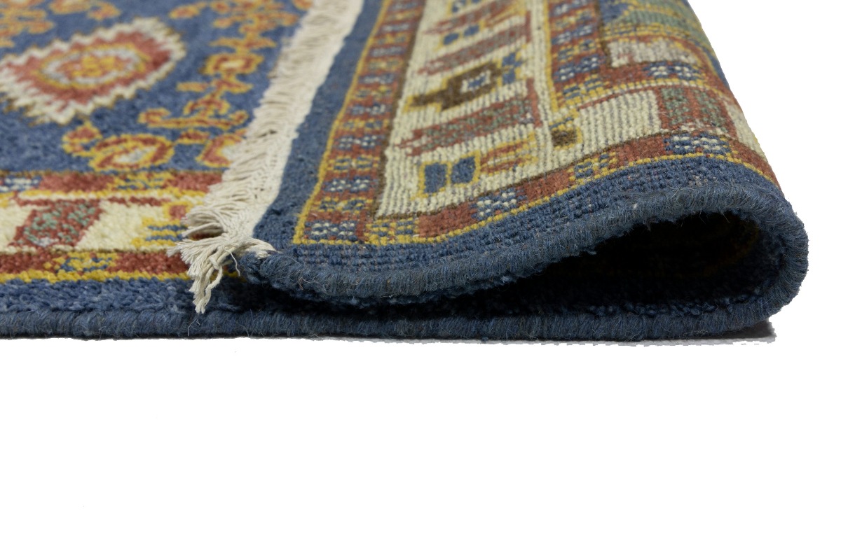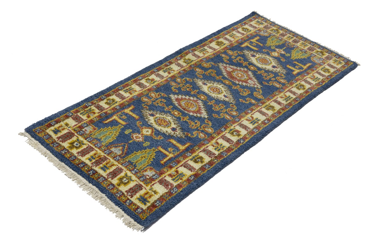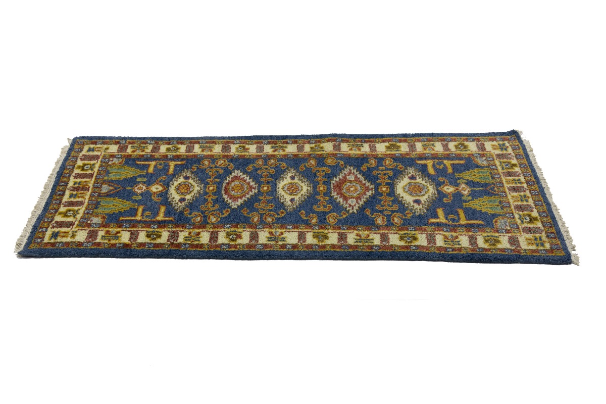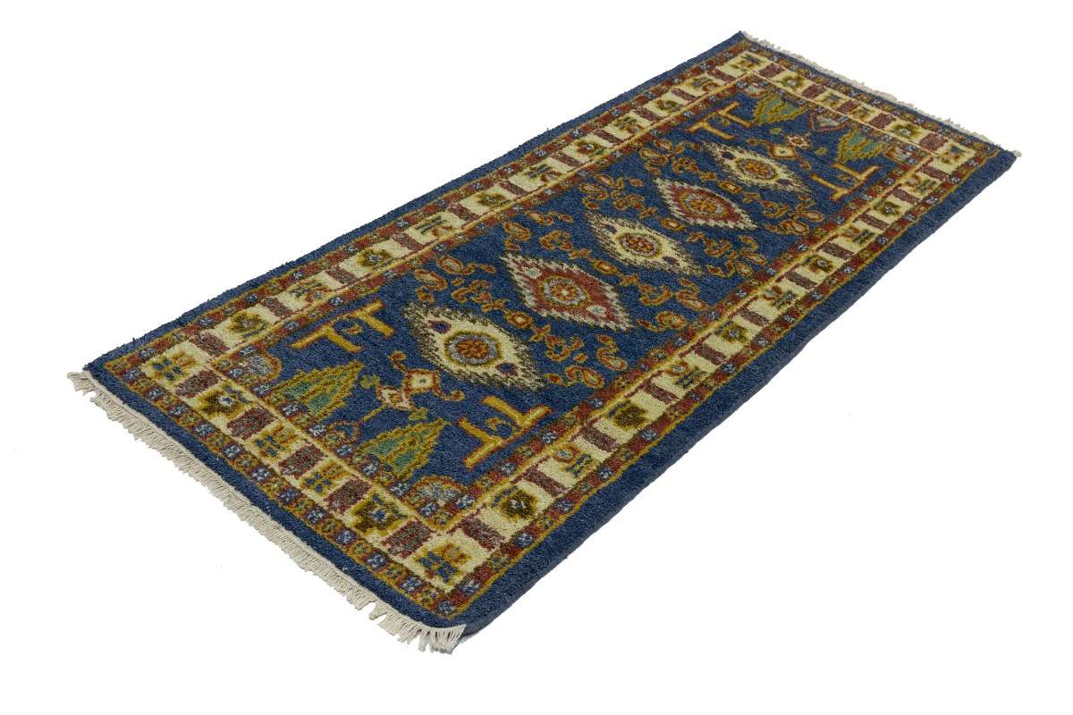 This genuine 2'7X6'4 blue new Oriental runner was made by the hands of gifted weavers inspired by a variety of spectacular artistic designs, to recreate the aged look of the original piece with a richness of color and ornately patterned background field. What set this vintage style Oriental area runner from the others are the material and dye used (wool pile and cotton foundation), knot count, ancient designs, fantastic grades, and its regional historical connection: it has deep roots, from the story of the people who produced it to the meaning of the symbols and colors displayed across its canvas that have been praised for centuries. This Indian home décor carpet will be completely cozy and inviting that never will go out of style! Also, this Oriental rug would be among your most valuable treasures, it is a great investment that accrues value over time, and it will last for generations because was woven with high-quality, all-natural wool. Environmentally friendly, opulent yet affordable; this runner will give you a thorough amount of character to help define your living space with elegance and warmth that will capture the eyes and attention of your audience (homeowners, designers, decorators, family and friends). OT-8005