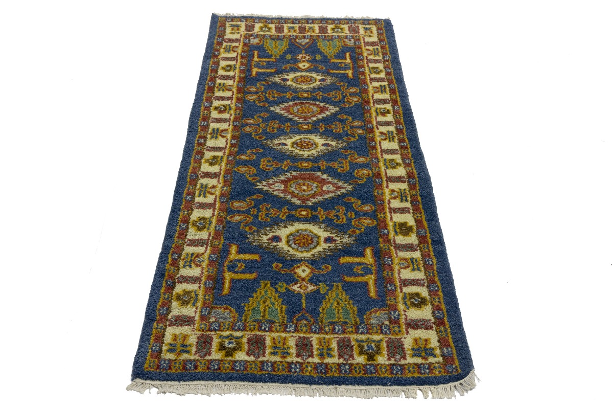 Blue Geometric 2'7X6'4 Kazak Oriental Runner Rug