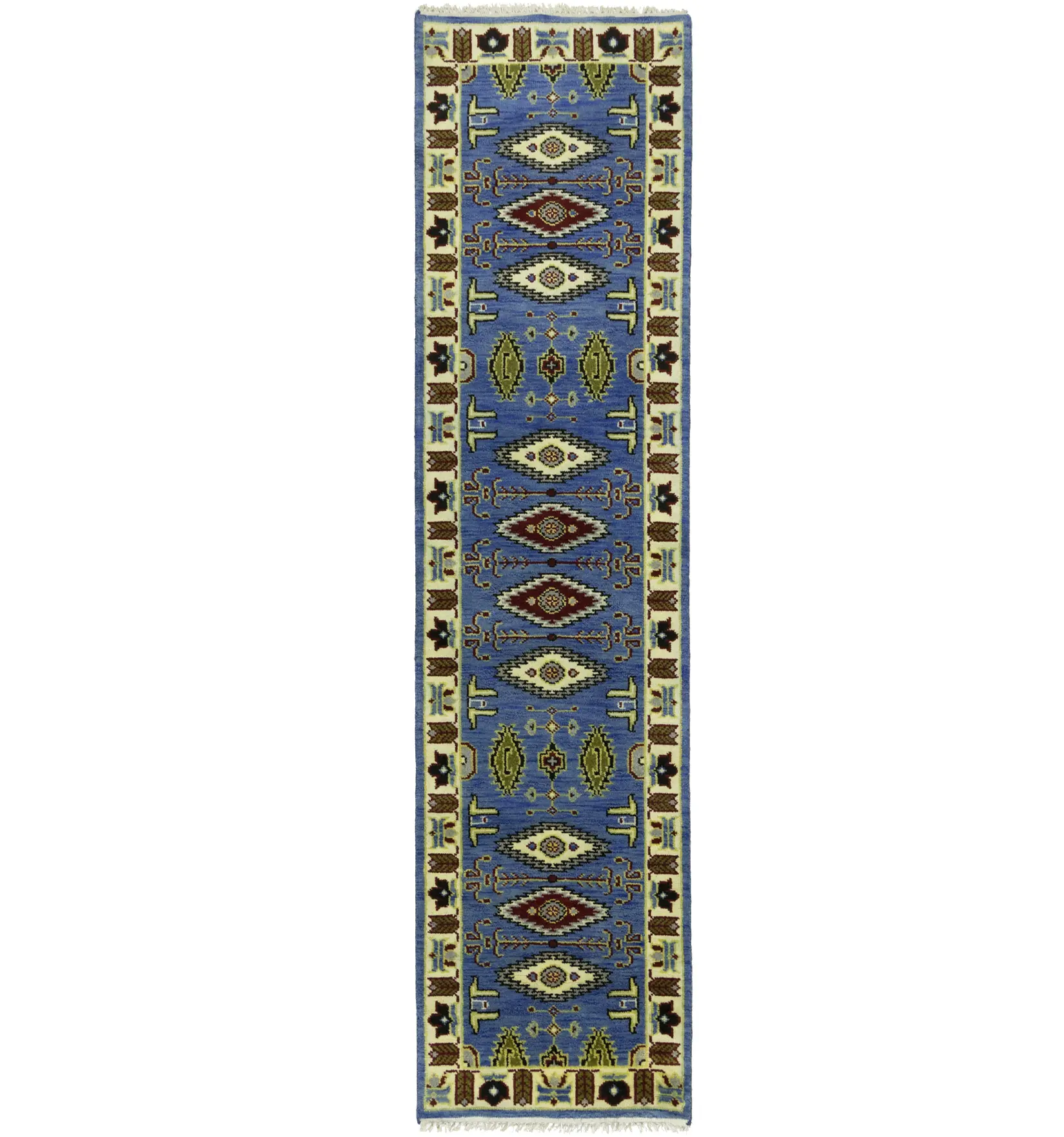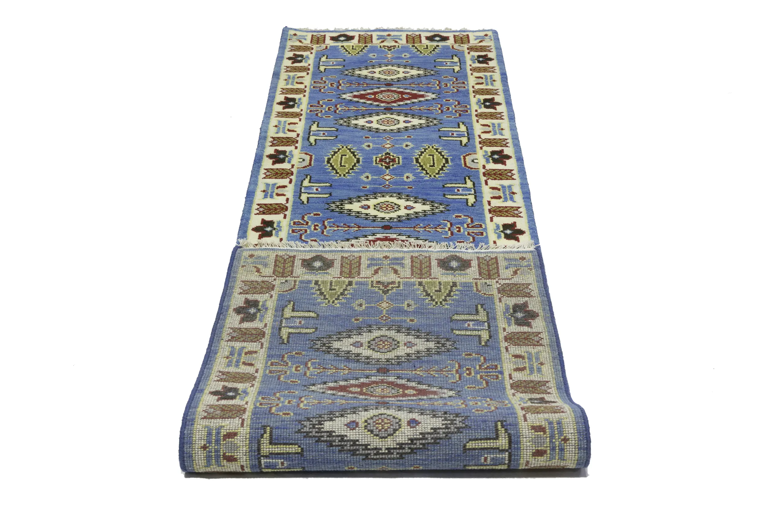 Handmade 3X10 blue oriental runner made with vegetable dyes (fine wool pile and cotton foundation), superior knot count, and appealing ancient designs. This Oriental runner never will go out of style and would be among your most valuable treasures.