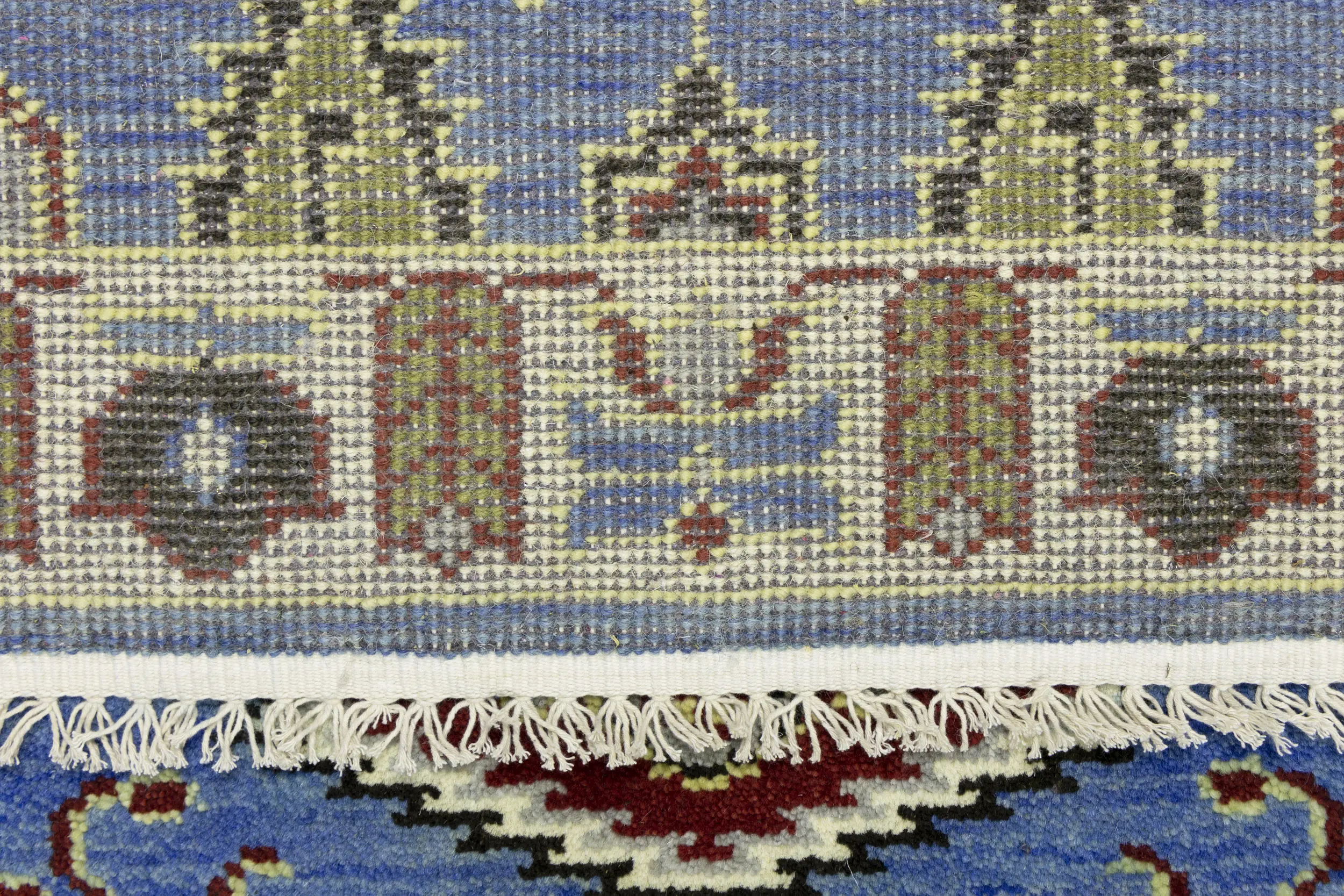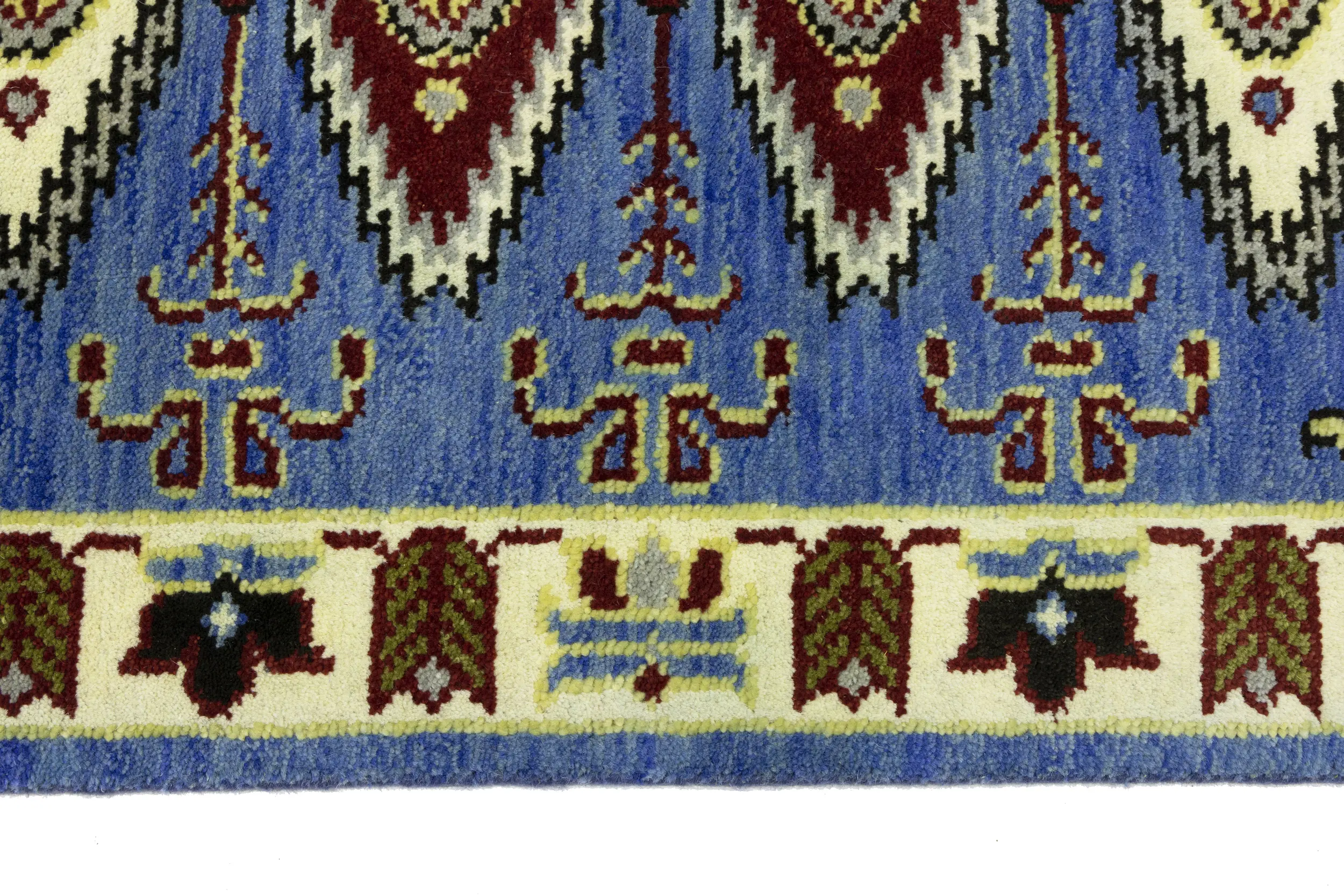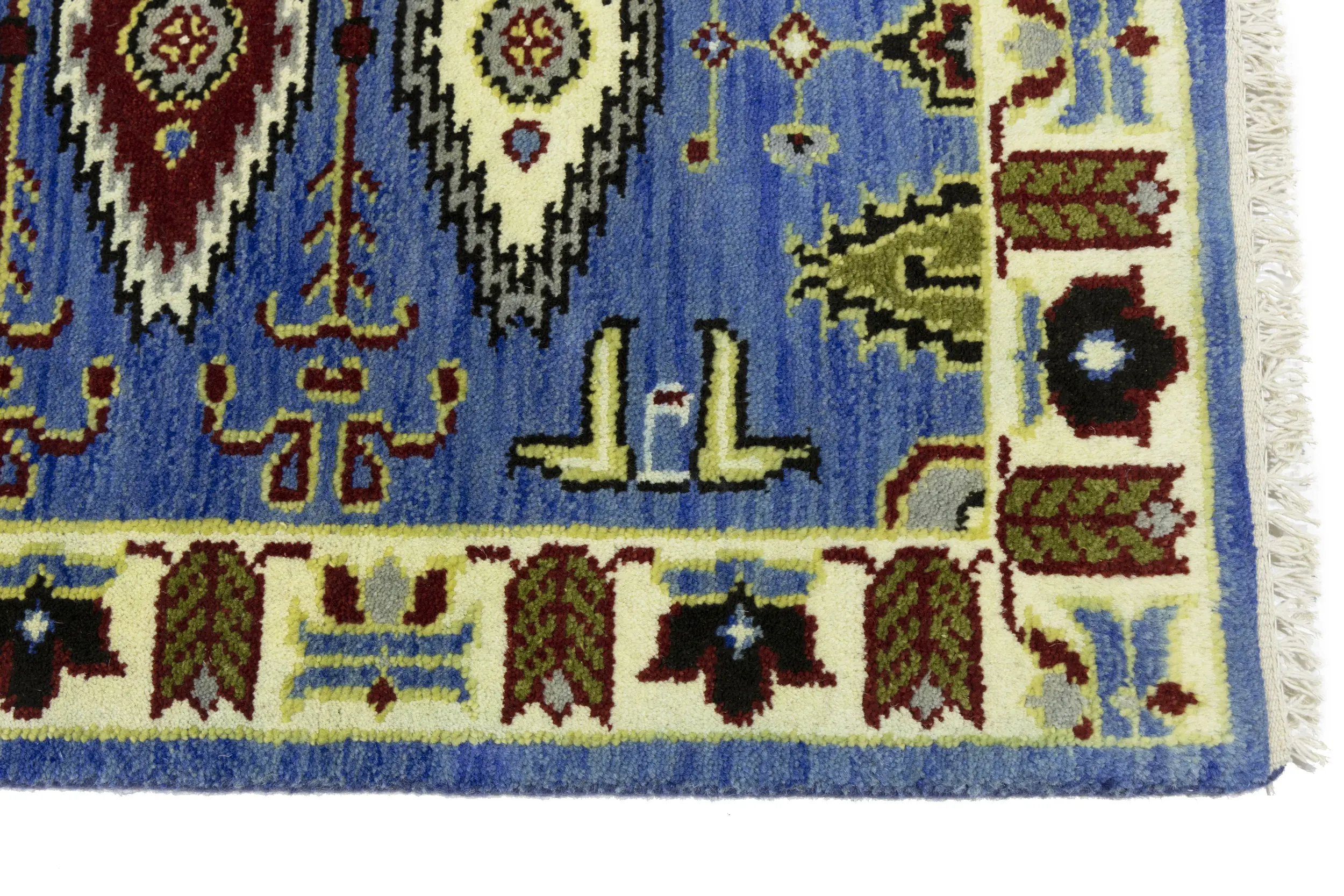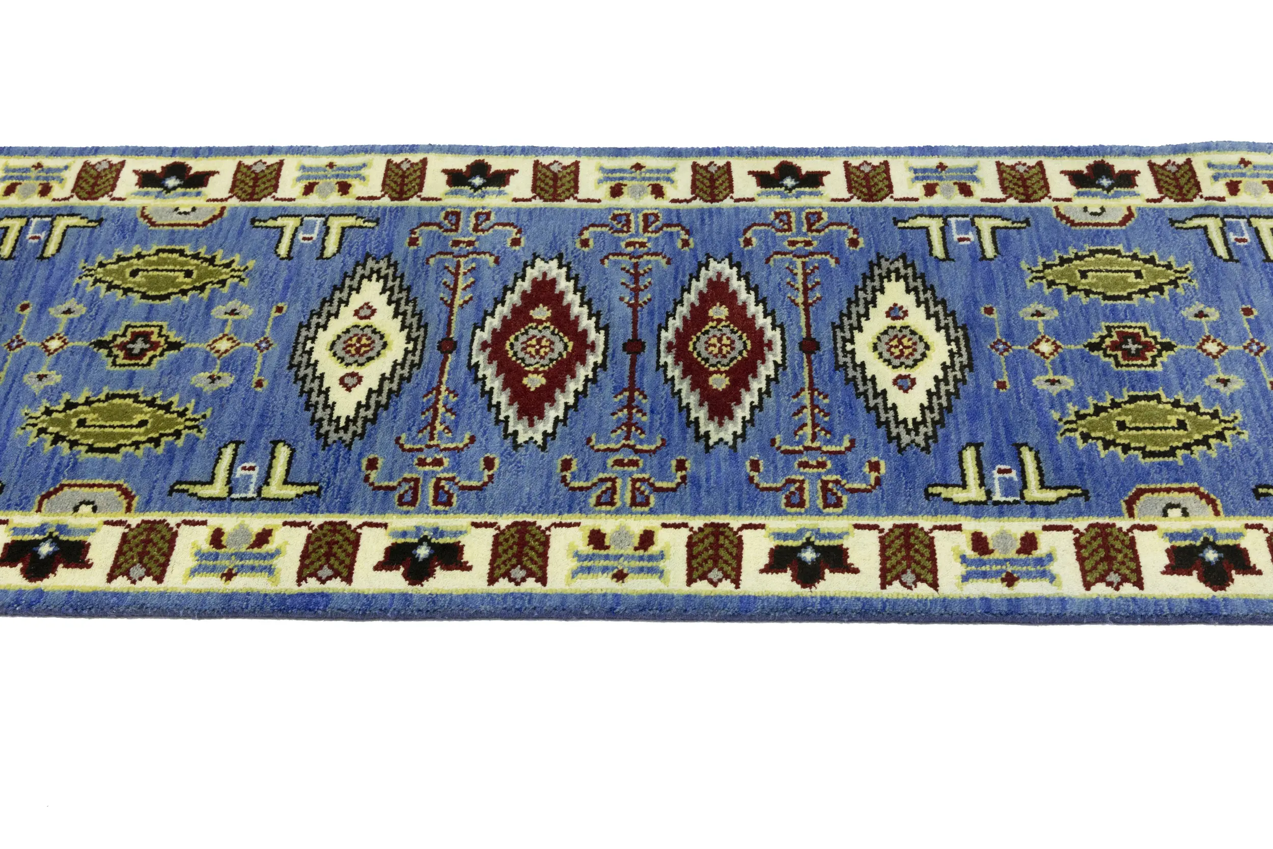 This genuine 3X10 blue new Oriental runner was made by the hands of gifted weavers inspired by a variety of spectacular artistic designs, to recreate the aged look of the original piece with a richness of color and ornately patterned background field. What set this vintage style Oriental area runner from the others are the material and dye used (wool pile and cotton foundation), knot count, ancient designs, fantastic grades, and its regional historical connection: it has deep roots, from the story of the people who produced it to the meaning of the symbols and colors displayed across its canvas that have been praised for centuries. This Indian home décor carpet will be completely cozy and inviting that never will go out of style! Also, this Oriental runner would be among your most valuable treasures, it is a great investment that accrues value over time, and it will last for generations because was woven with high-quality, all-natural wool. Environmentally friendly, opulent yet affordable; this rug will give you a thorough amount of character to help define your living space with elegance and warmth that will capture the eyes and attention of your audience (homeowners, designers, decorators, family and friends).