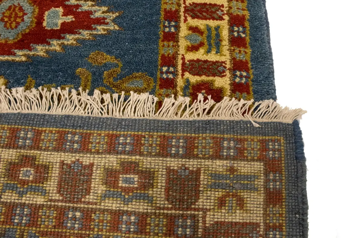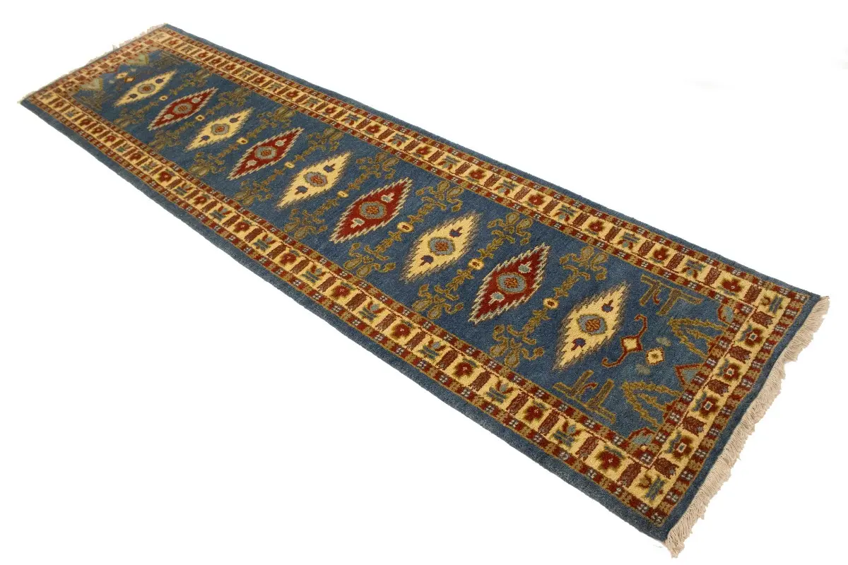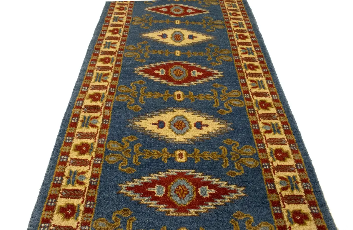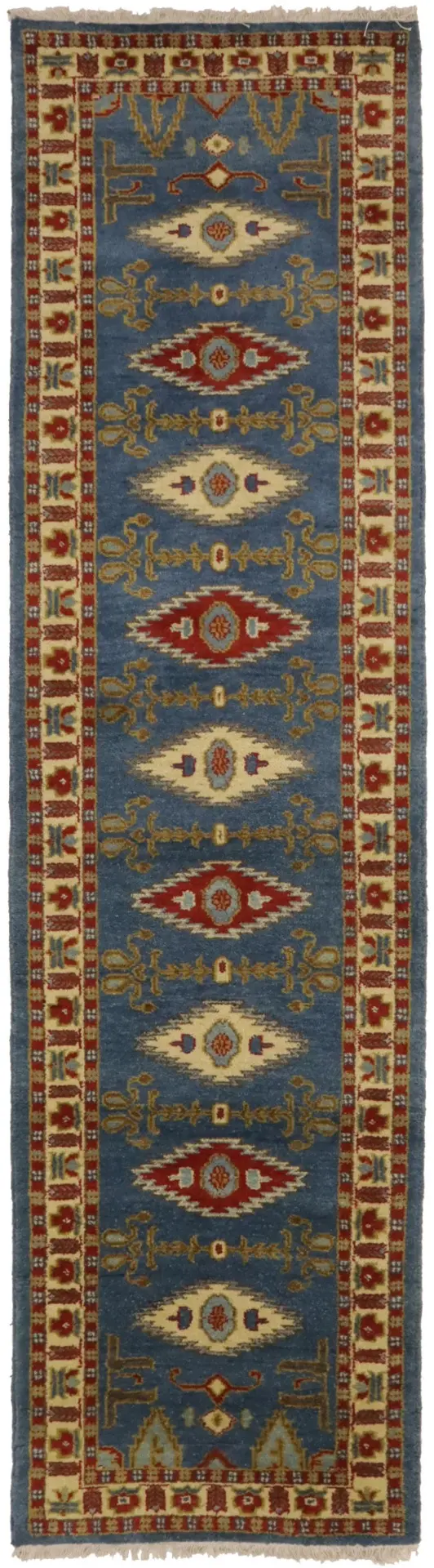 Blue Geometric 3X10 Kazak Oriental Runner Rug