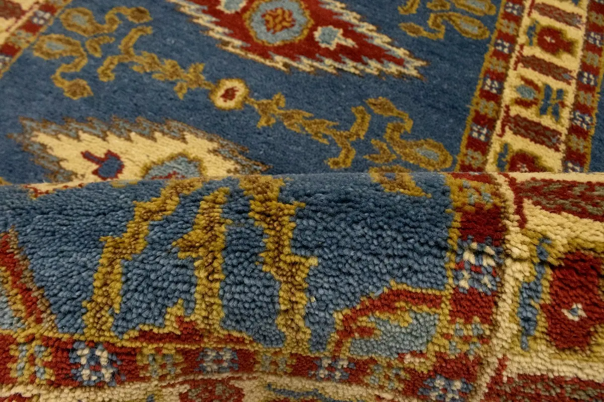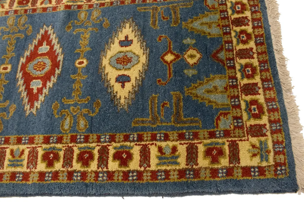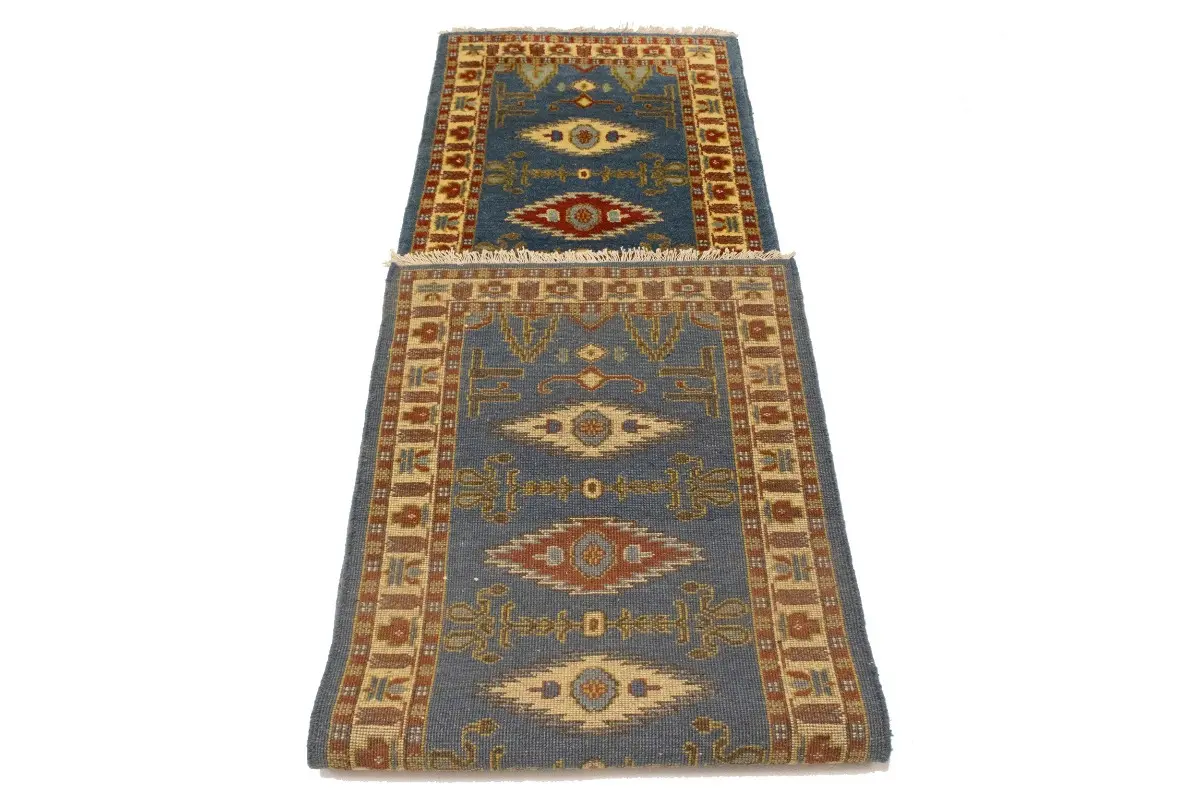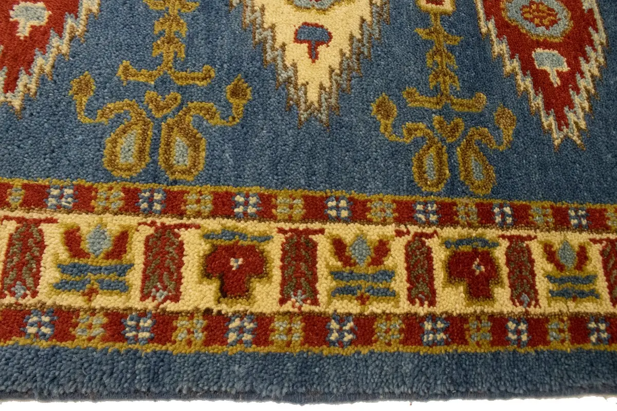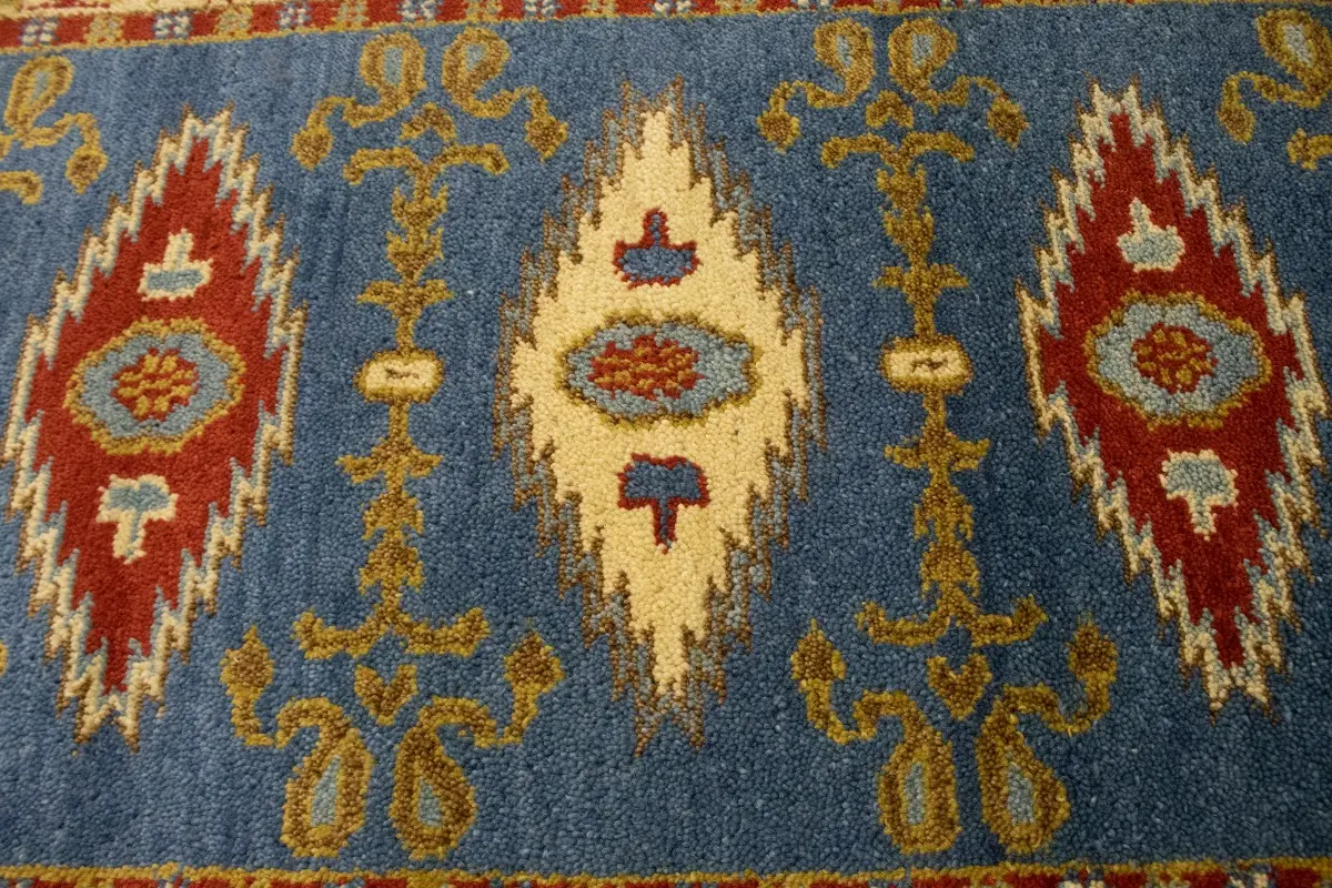 Blue Geometric 3X10 Kazak Oriental Runner Rug