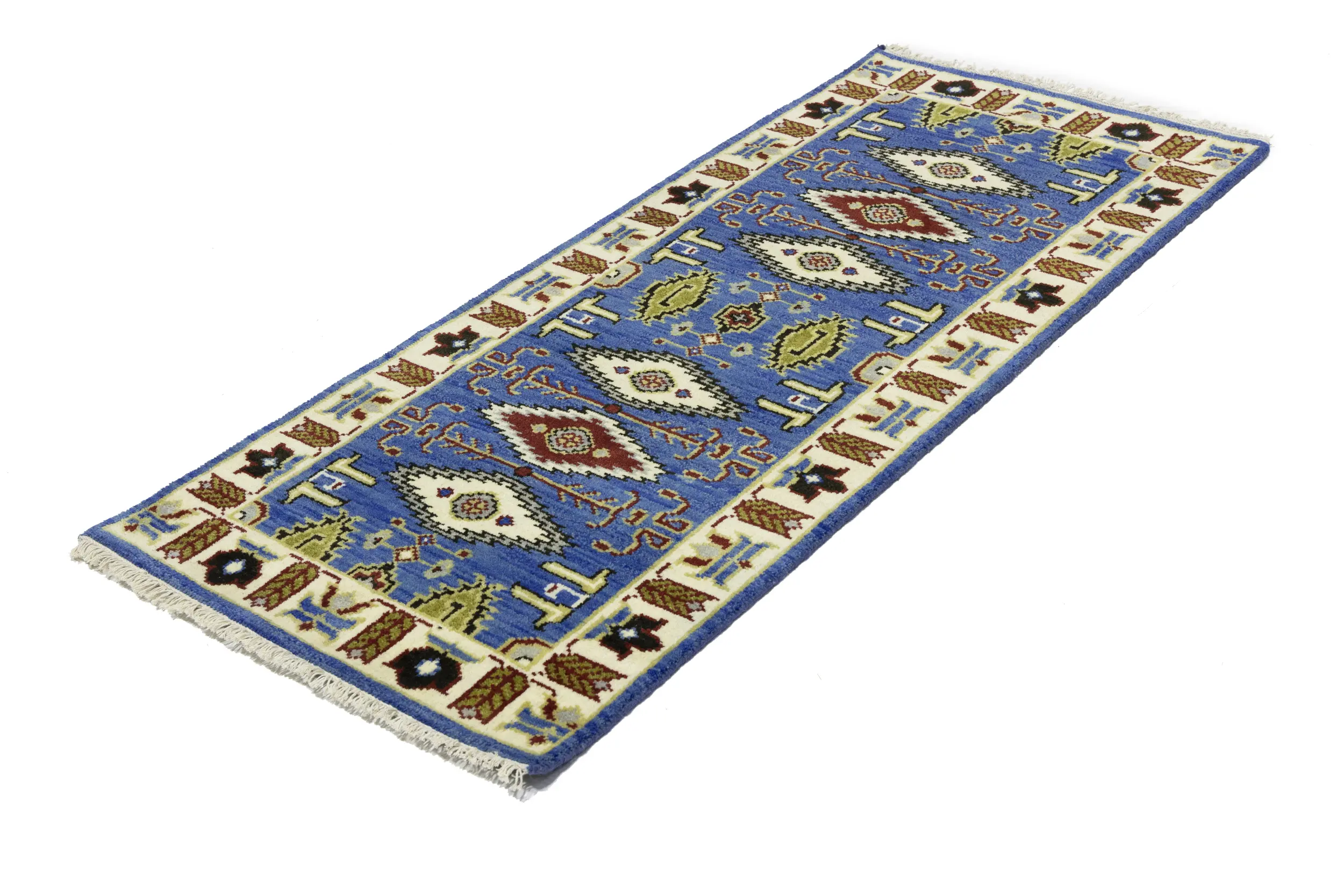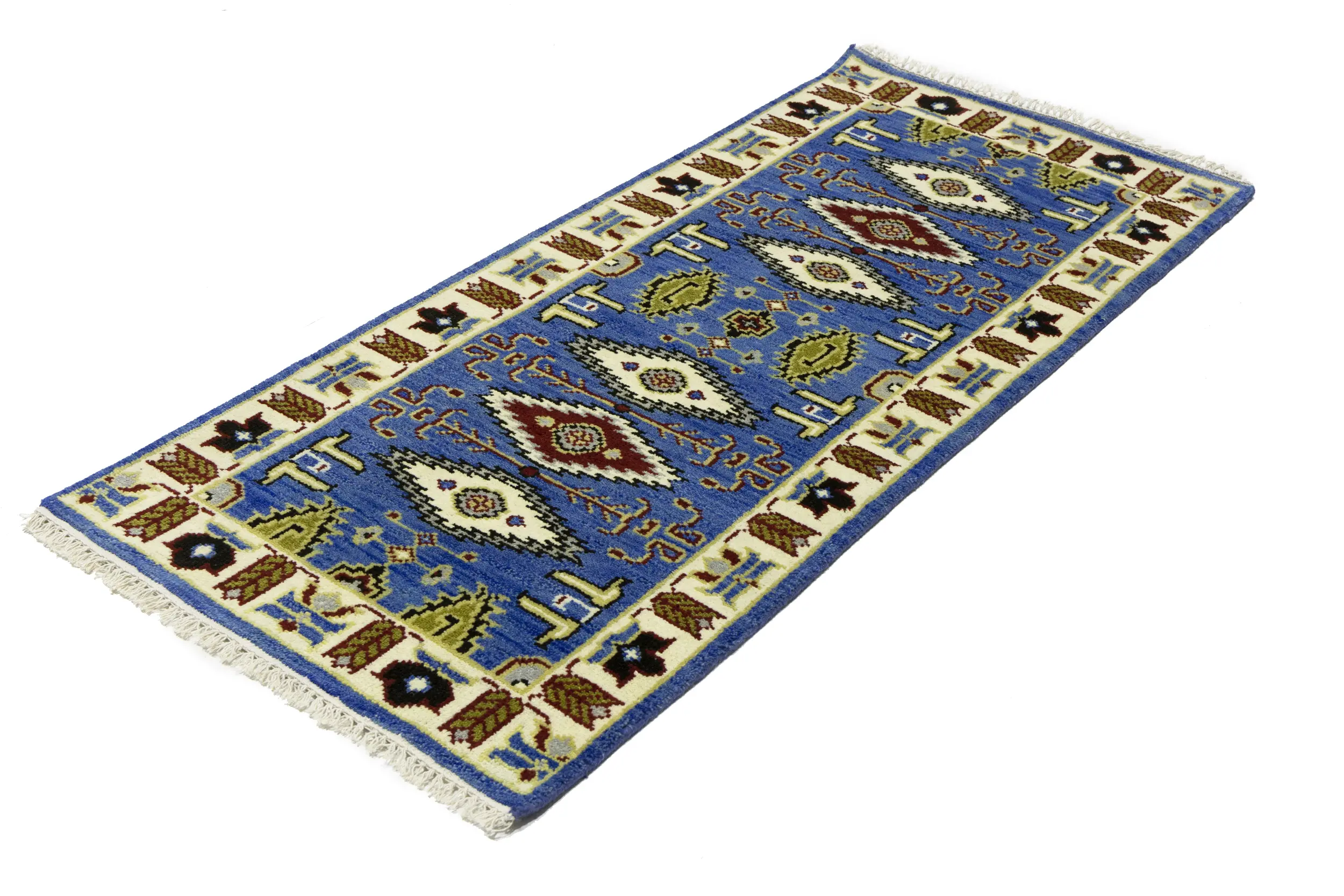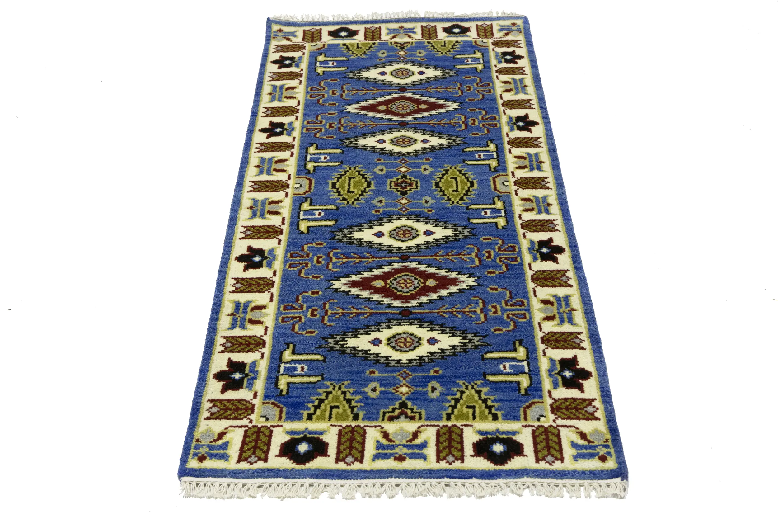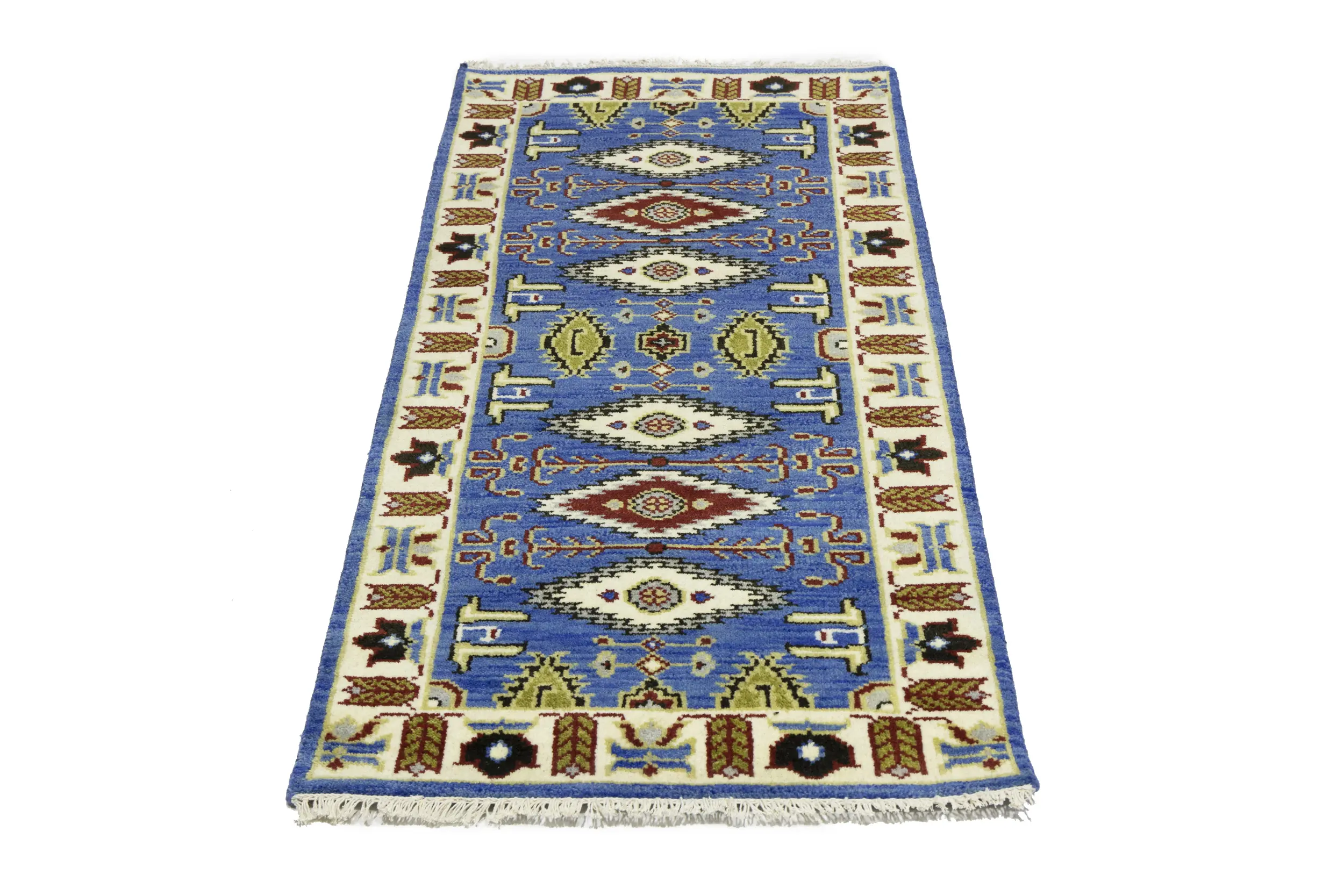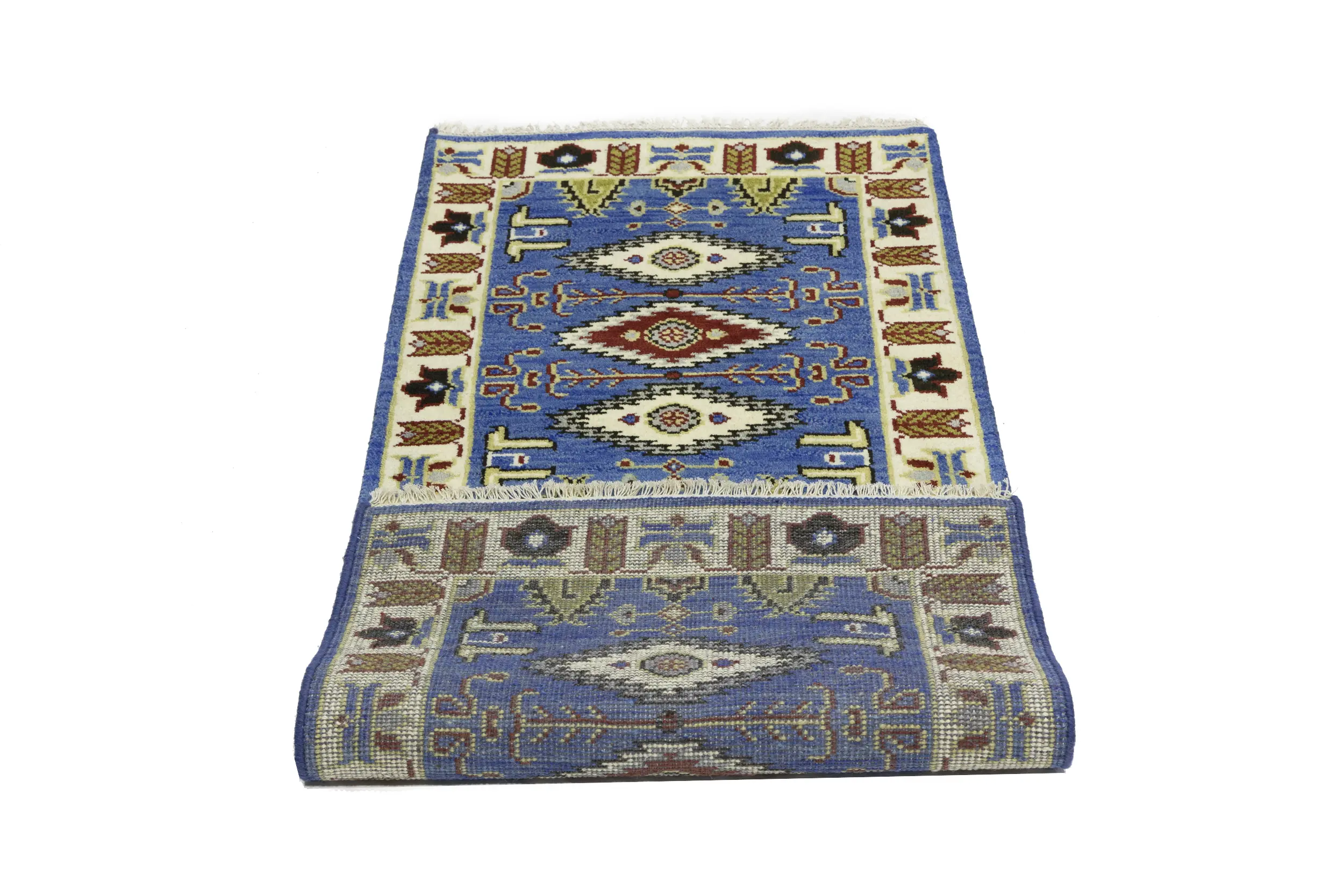 Handmade 3X6 blue oriental rug made with vegetable dyes (fine wool pile and cotton foundation), superior knot count, and appealing ancient designs. This Oriental rug never will go out of style and would be among your most valuable treasures.