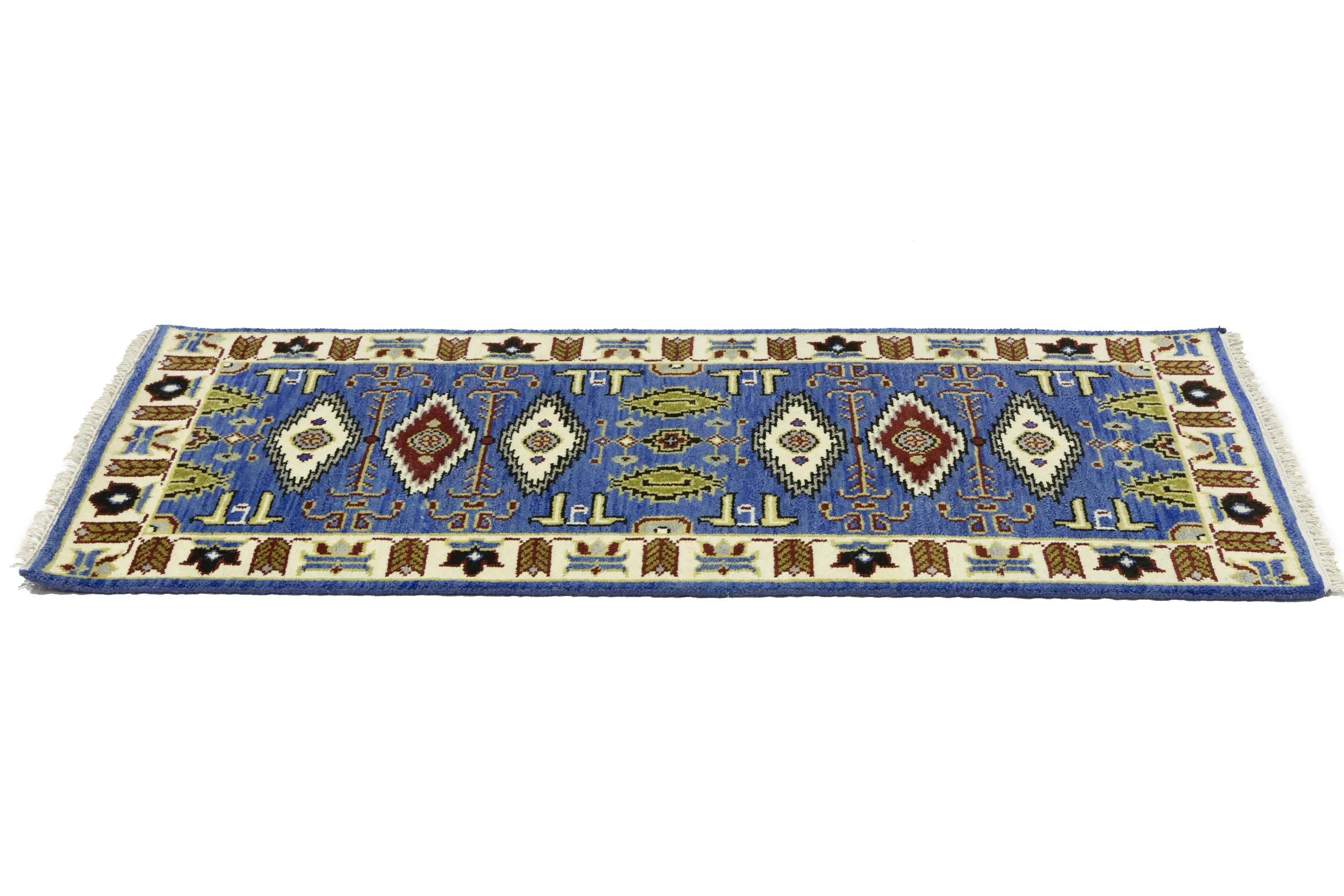 Blue Geometric 3X6 Kazak Oriental Rug