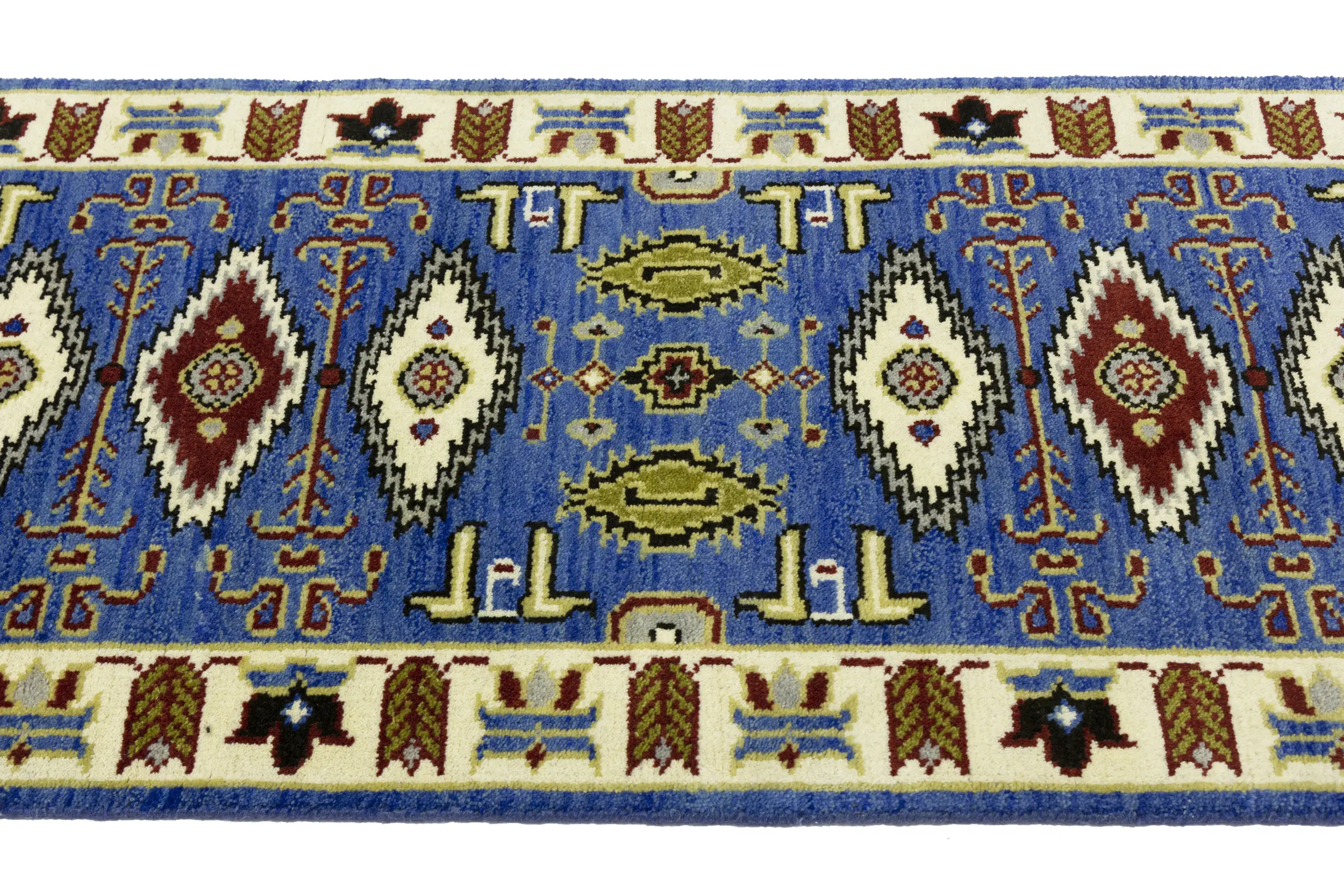 This genuine 3X6 blue new Oriental rug was made by the hands of gifted weavers inspired by a variety of spectacular artistic designs, to recreate the aged look of the original piece with a richness of color and ornately patterned background field. What set this vintage style Oriental area rug from the others are the material and dye used (wool pile and cotton foundation), knot count, ancient designs, fantastic grades, and its regional historical connection: it has deep roots, from the story of the people who produced it to the meaning of the symbols and colors displayed across its canvas that have been praised for centuries. This Indian home décor carpet will be completely cozy and inviting that never will go out of style! Also, this Oriental rug would be among your most valuable treasures, it is a great investment that accrues value over time, and it will last for generations because was woven with high-quality, all-natural wool. Environmentally friendly, opulent yet affordable; this rug will give you a thorough amount of character to help define your living space with elegance and warmth that will capture the eyes and attention of your audience (homeowners, designers, decorators, family and friends).