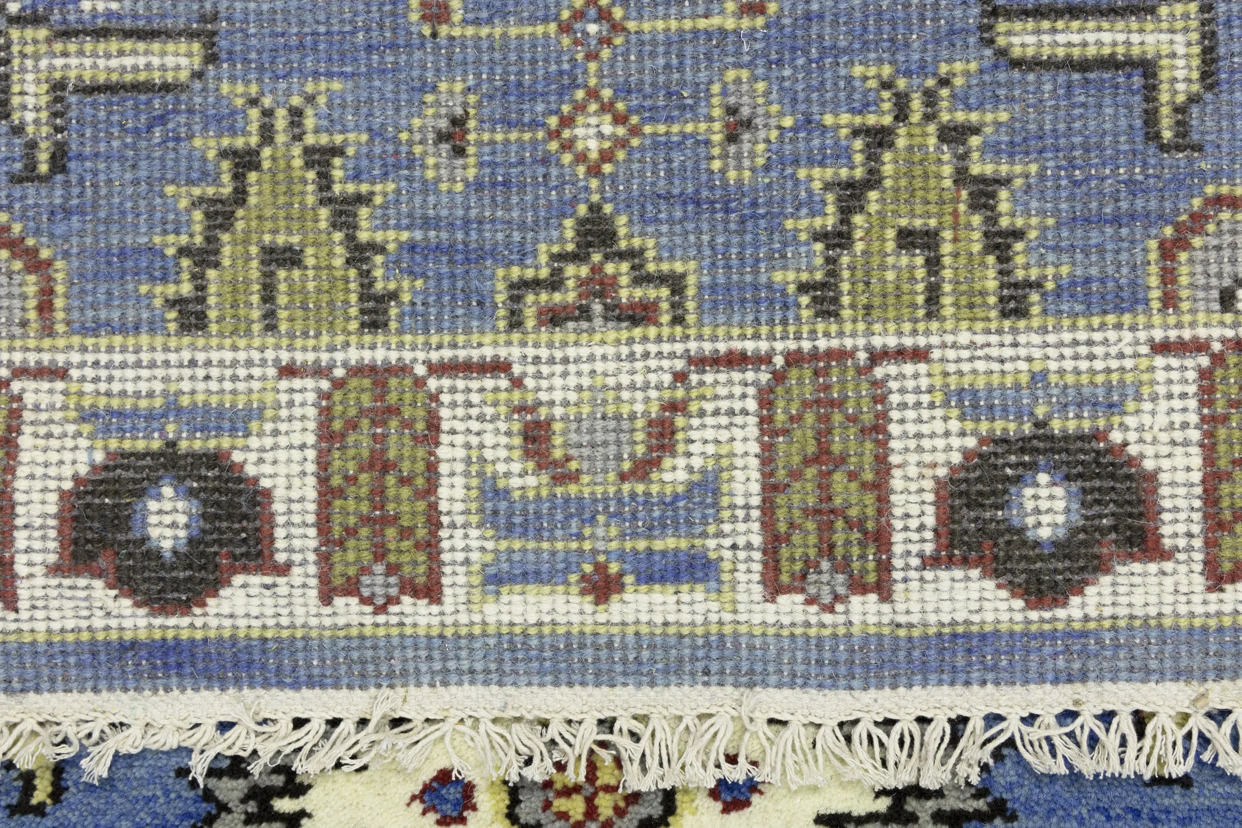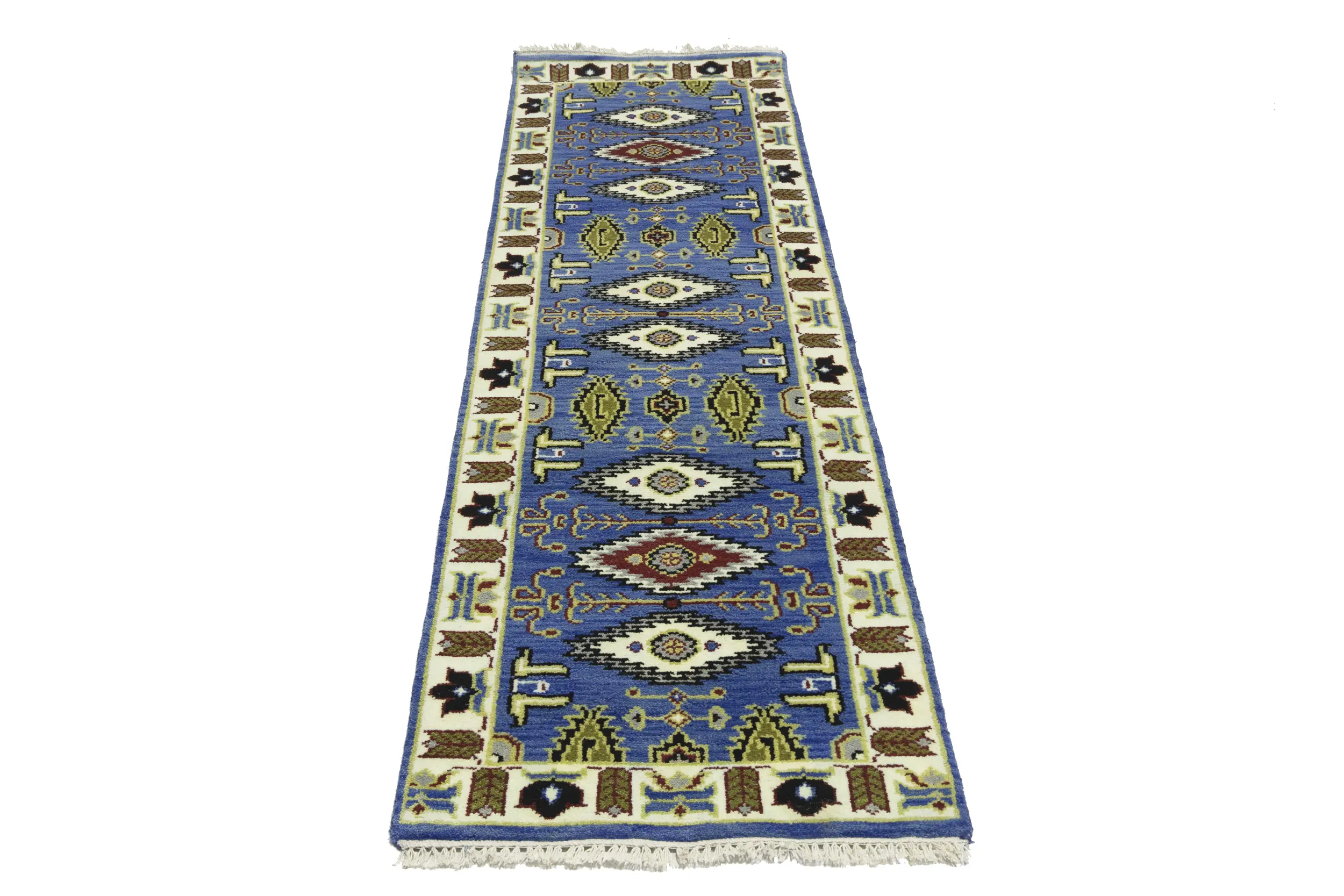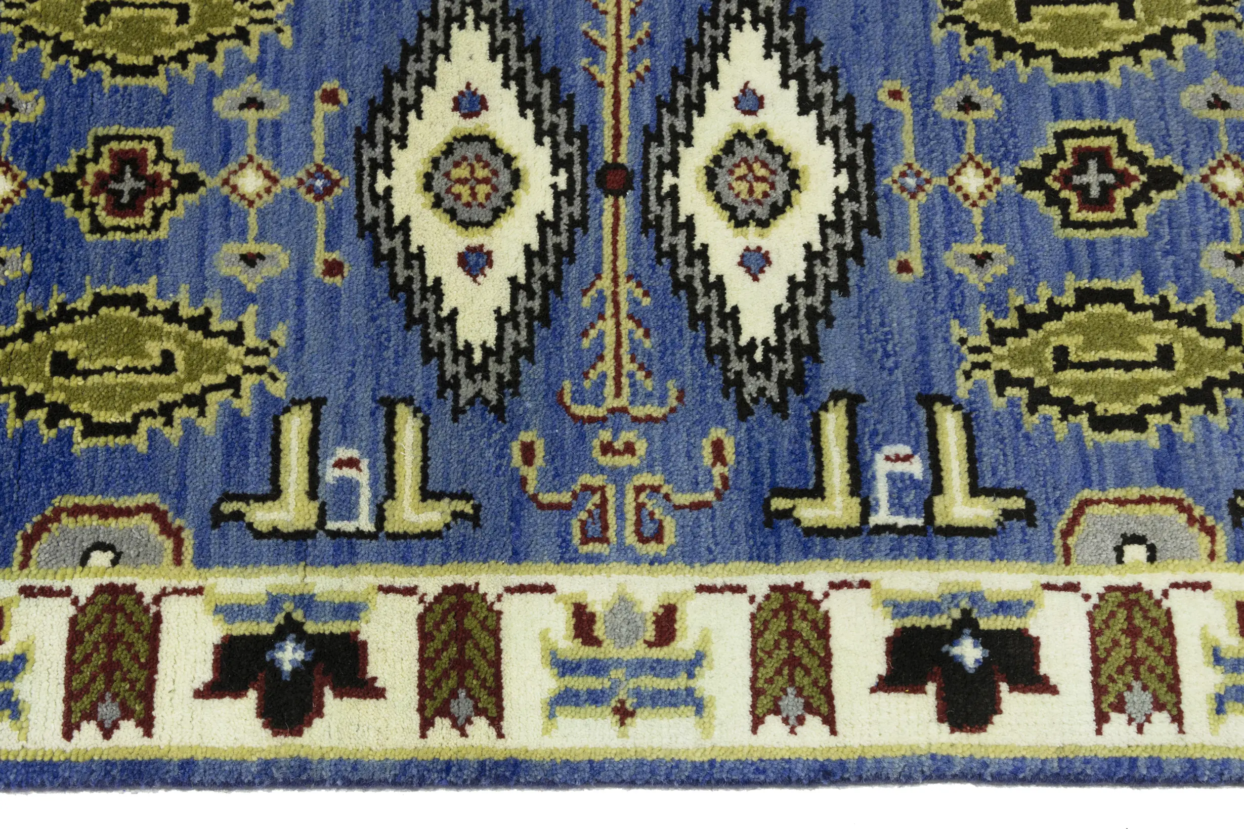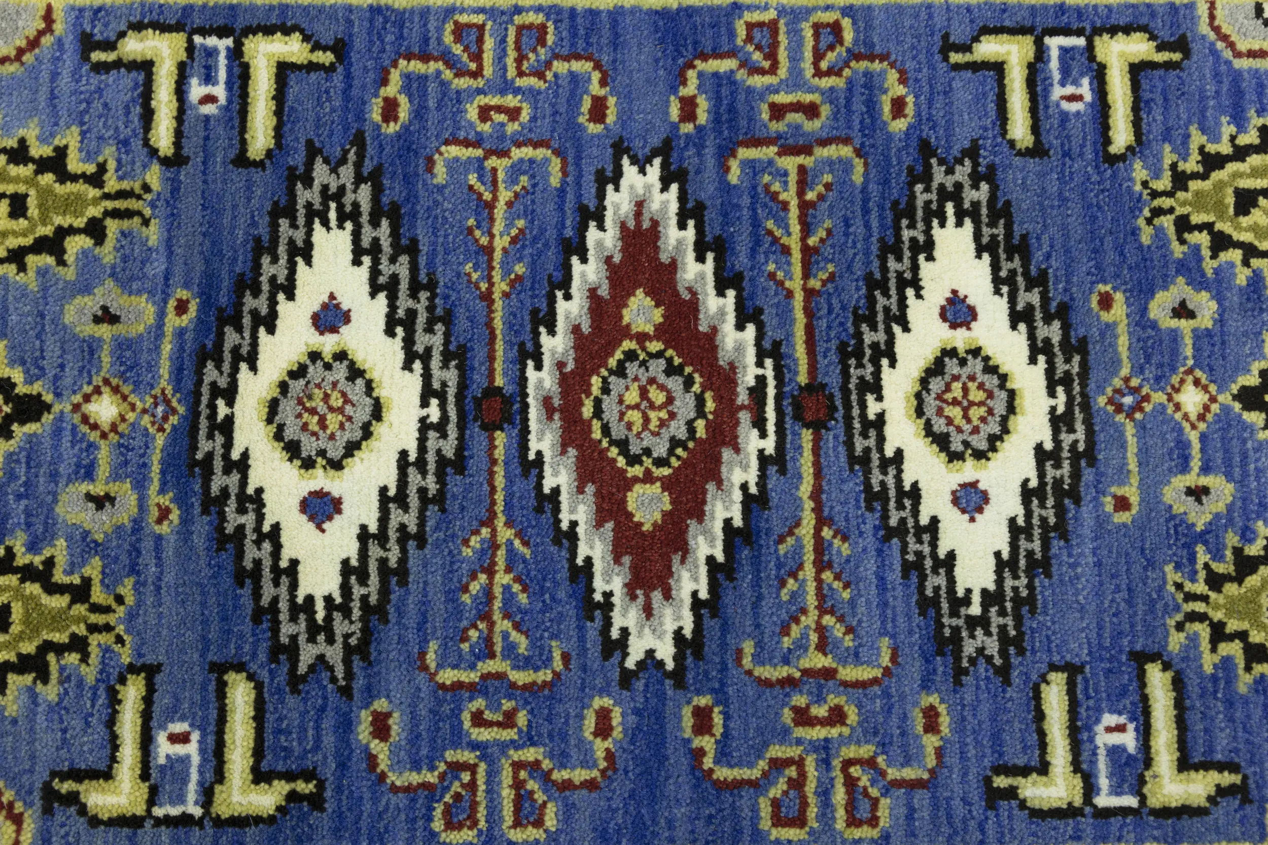 This genuine 3X8 blue new Oriental runner was made by the hands of gifted weavers inspired by a variety of spectacular artistic designs, to recreate the aged look of the original piece with a richness of color and ornately patterned background field. What set this vintage style Oriental area runner from the others are the material and dye used (wool pile and cotton foundation), knot count, ancient designs, fantastic grades, and its regional historical connection: it has deep roots, from the story of the people who produced it to the meaning of the symbols and colors displayed across its canvas that have been praised for centuries. This Indian home décor carpet will be completely cozy and inviting that never will go out of style! Also, this Oriental runner would be among your most valuable treasures, it is a great investment that accrues value over time, and it will last for generations because was woven with high-quality, all-natural wool. Environmentally friendly, opulent yet affordable; this rug will give you a thorough amount of character to help define your living space with elegance and warmth that will capture the eyes and attention of your audience (homeowners, designers, decorators, family and friends).