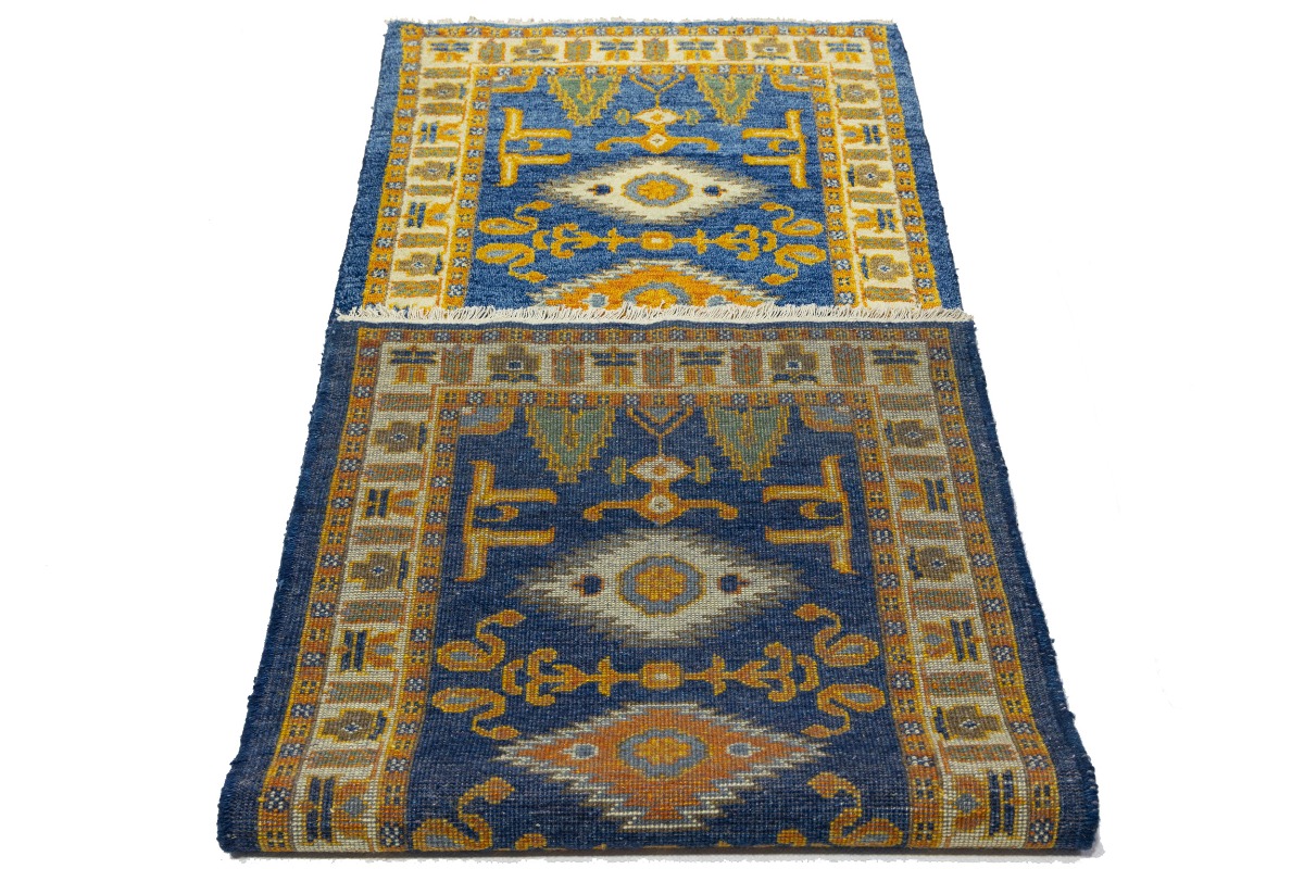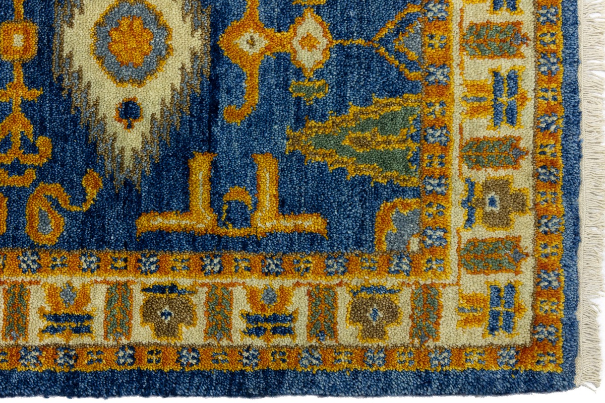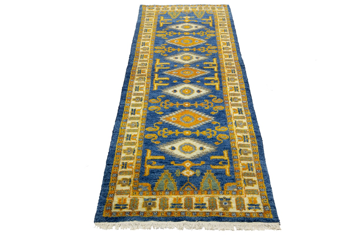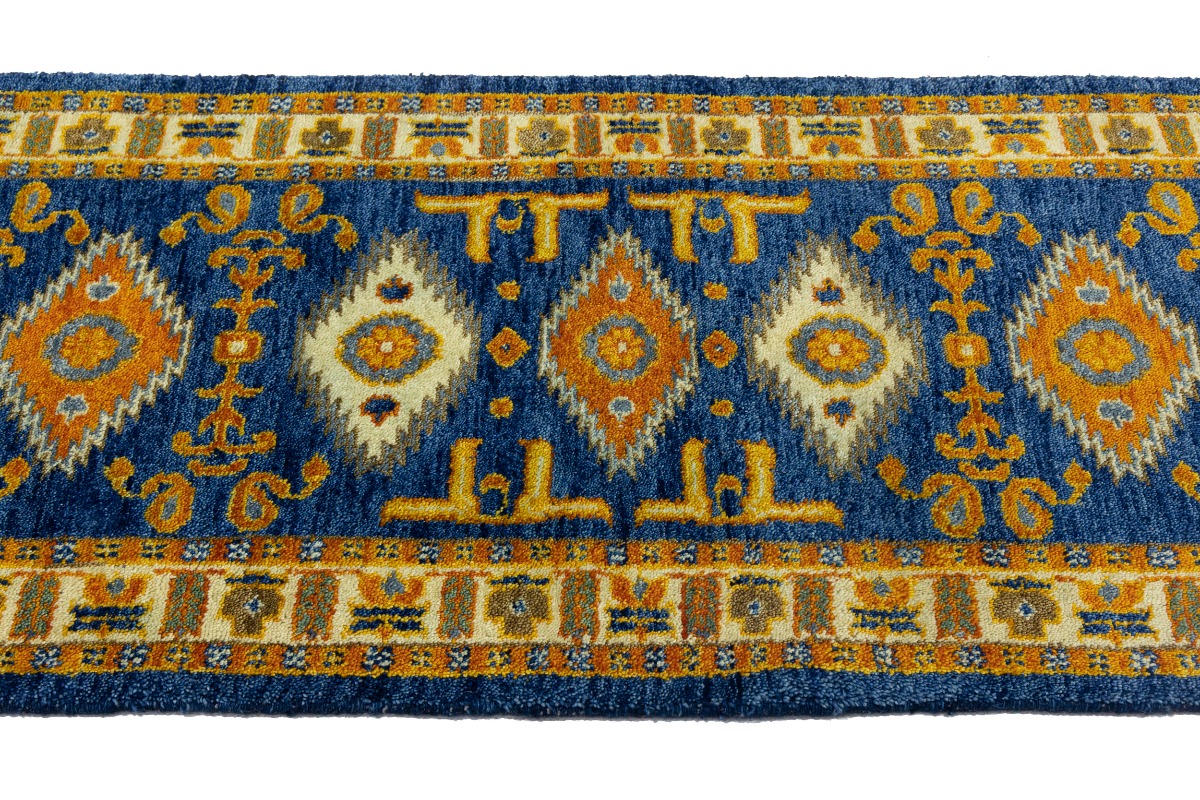 Handmade 3X8 blue oriental oriental runner made with vegetable dyes (fine wool pile and cotton foundation), exceptional knot count, and alluring ancient designs. This Oriental runner never will go out of style and would be among your most valuable treasures.