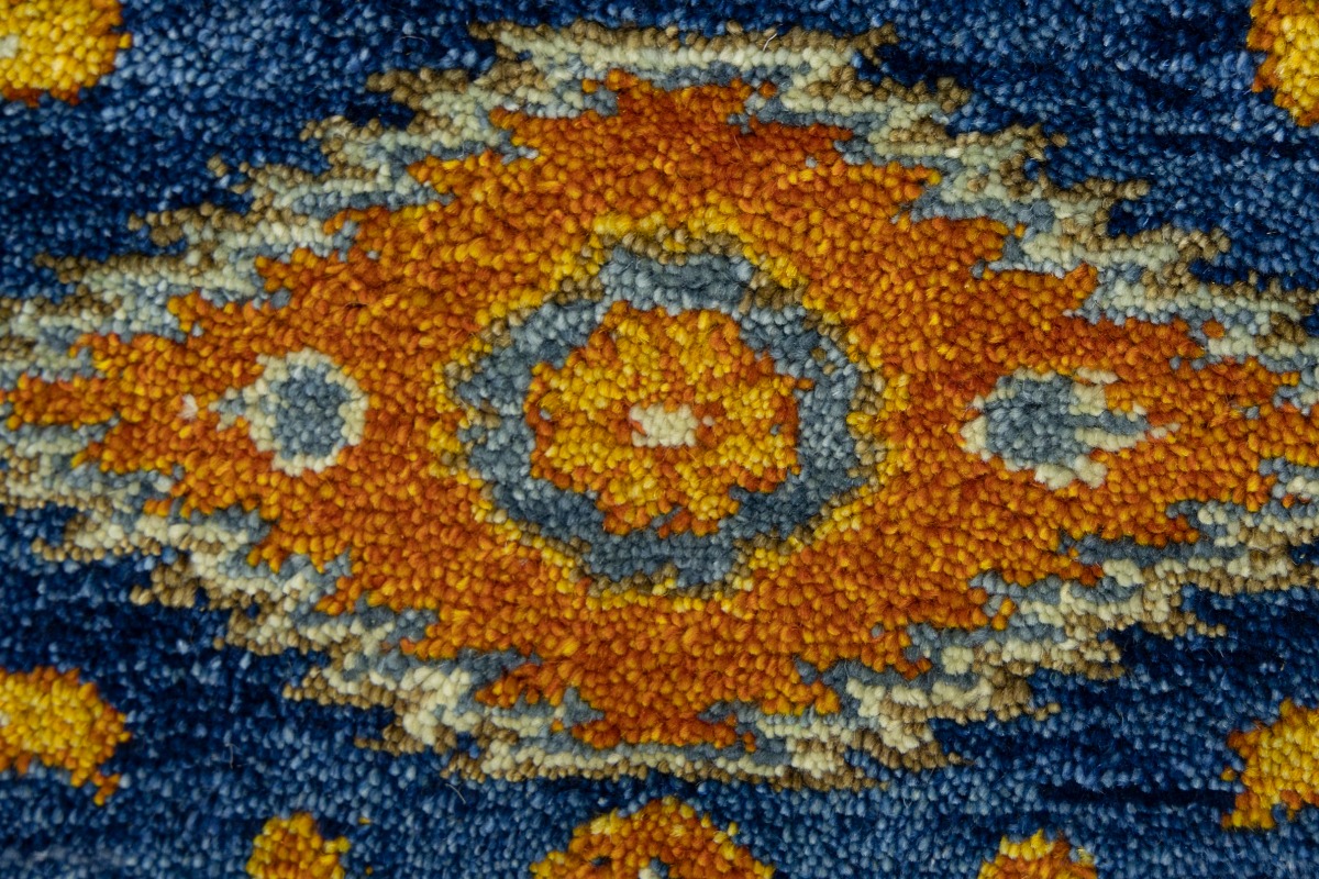 This genuine 3X8 blue new Oriental runner was made by the hands of gifted weavers inspired by a variety of spectacular artistic designs, to recreate the aged look of the original piece with a richness of color and ornately patterned background field. What set this vintage style Oriental area runner from the others are the material and dye used (wool pile and cotton foundation), knot count, ancient designs, fantastic grades, and its regional historical connection: it has deep roots, from the story of the people who produced it to the meaning of the symbols and colors displayed across its canvas that have been praised for centuries. This Indian home décor carpet will be completely cozy and inviting that never will go out of style! Also, this Oriental rug would be among your most valuable treasures, it is a great investment that accrues value over time, and it will last for generations because was woven with high-quality, all-natural wool. Environmentally friendly, opulent yet affordable; this runner will give you a thorough amount of character to help define your living space with elegance and warmth that will capture the eyes and attention of your audience (homeowners, designers, decorators, family and friends). OT-8001