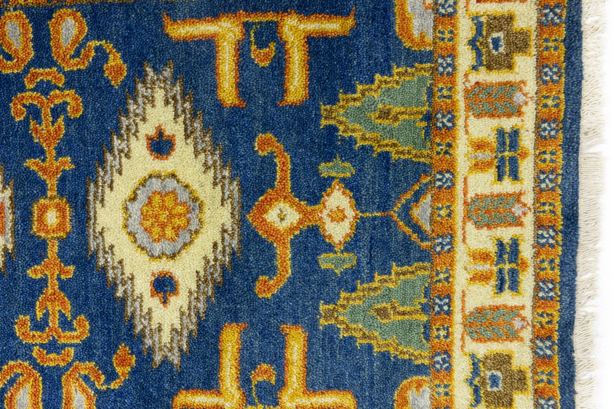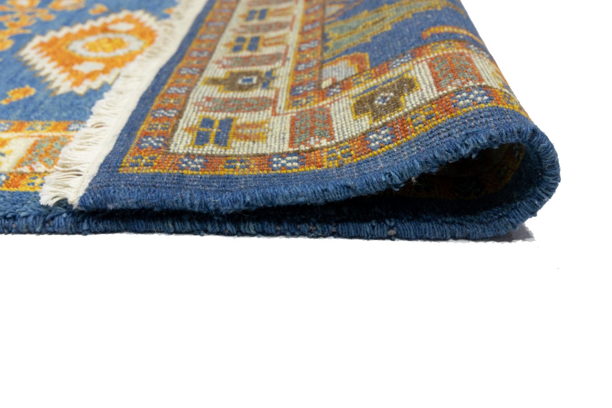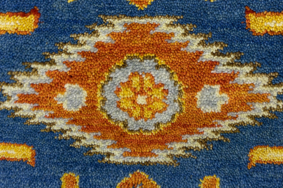 This genuine 3X8 blue new Oriental runner was made by the hands of gifted weavers inspired by a variety of spectacular artistic designs, to recreate the aged look of the original piece with a richness of color and ornately patterned background field. What set this vintage style Oriental area runner from the others are the material and dye used (wool pile and cotton foundation), knot count, ancient designs, fantastic grades, and its regional historical connection: it has deep roots, from the story of the people who produced it to the meaning of the symbols and colors displayed across its canvas that have been praised for centuries. This Indian home décor carpet will be completely cozy and inviting that never will go out of style! Also, this Oriental rug would be among your most valuable treasures, it is a great investment that accrues value over time, and it will last for generations because was woven with high-quality, all-natural wool. Environmentally friendly, opulent yet affordable; this runner will give you a thorough amount of character to help define your living space with elegance and warmth that will capture the eyes and attention of your audience (homeowners, designers, decorators, family and friends). OT-8003