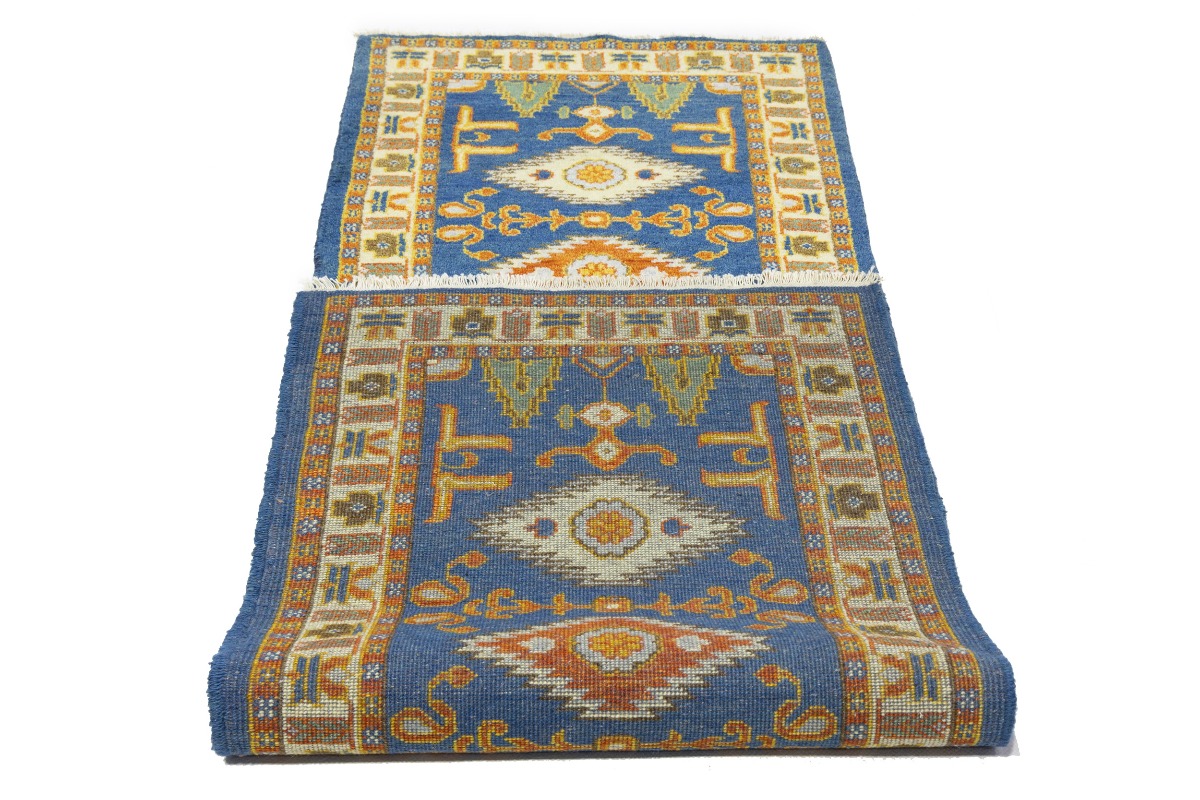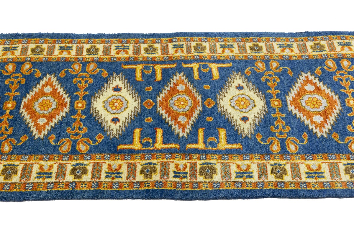 Handmade 3X8 blue oriental runner made with vegetable dyes (fine wool pile and cotton foundation), superior knot count, and alluring ancient designs. This Oriental runner never will go out of style and would be among your most valuable treasures.