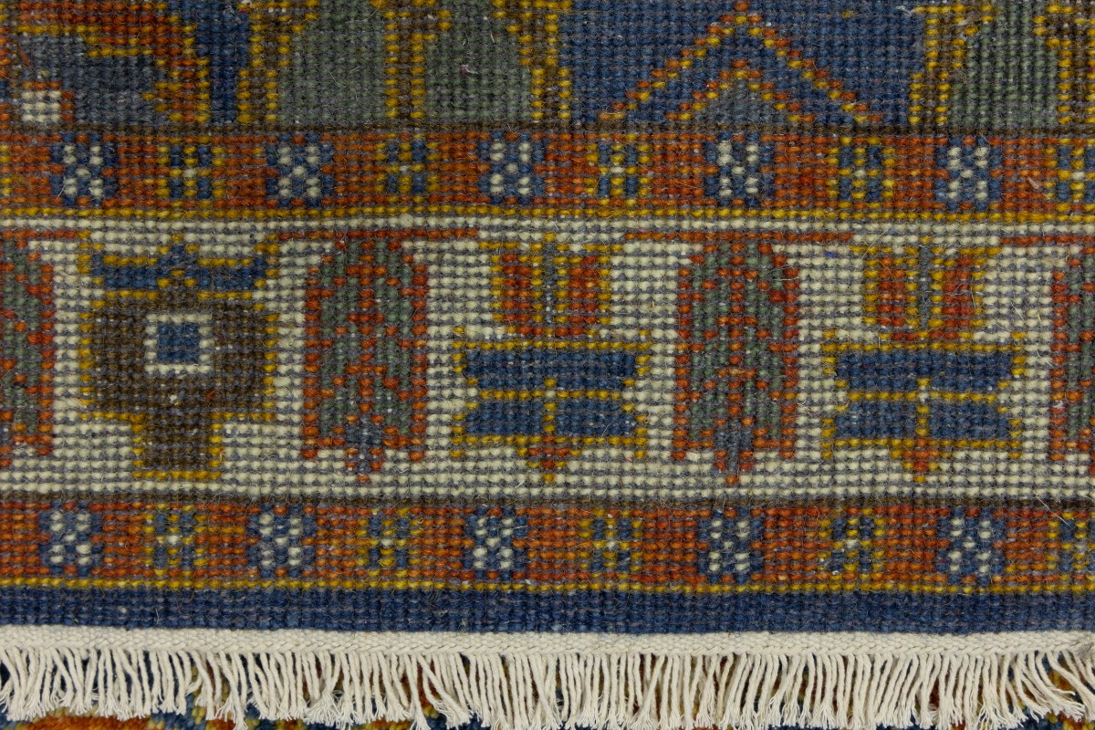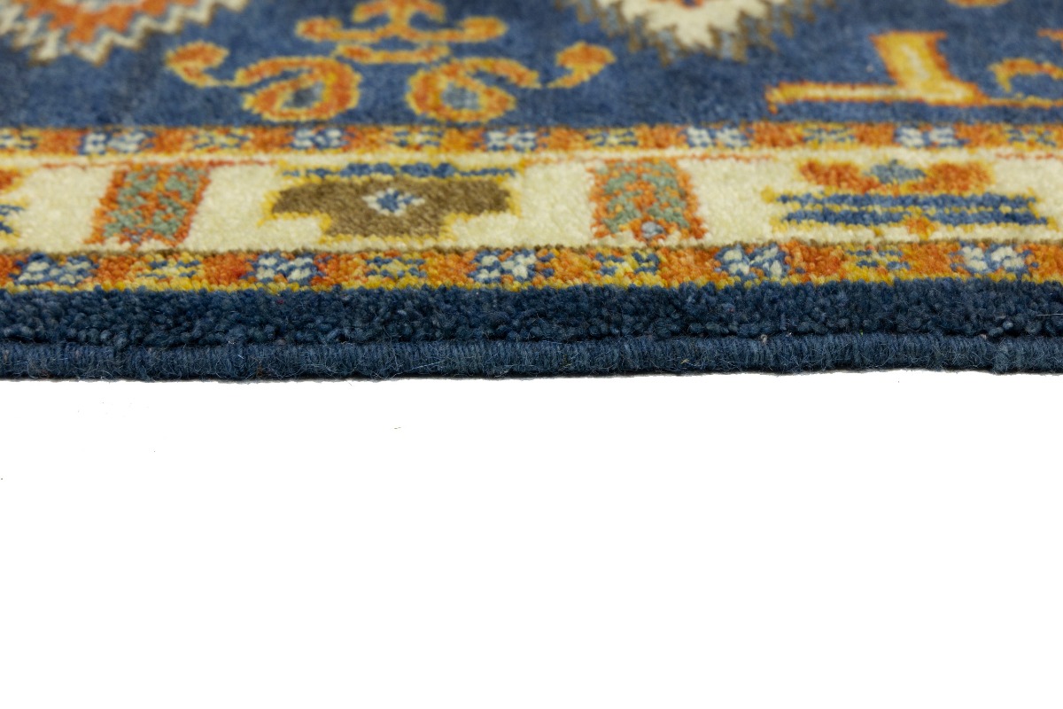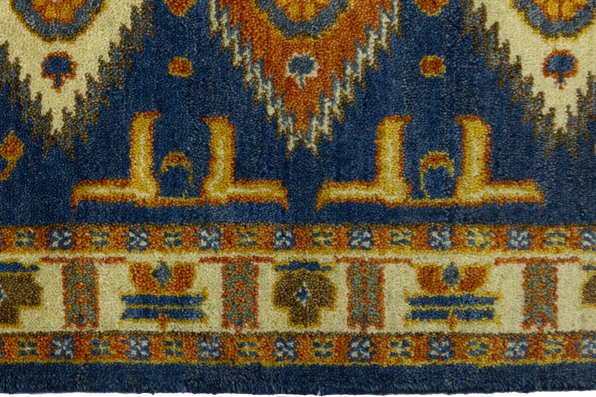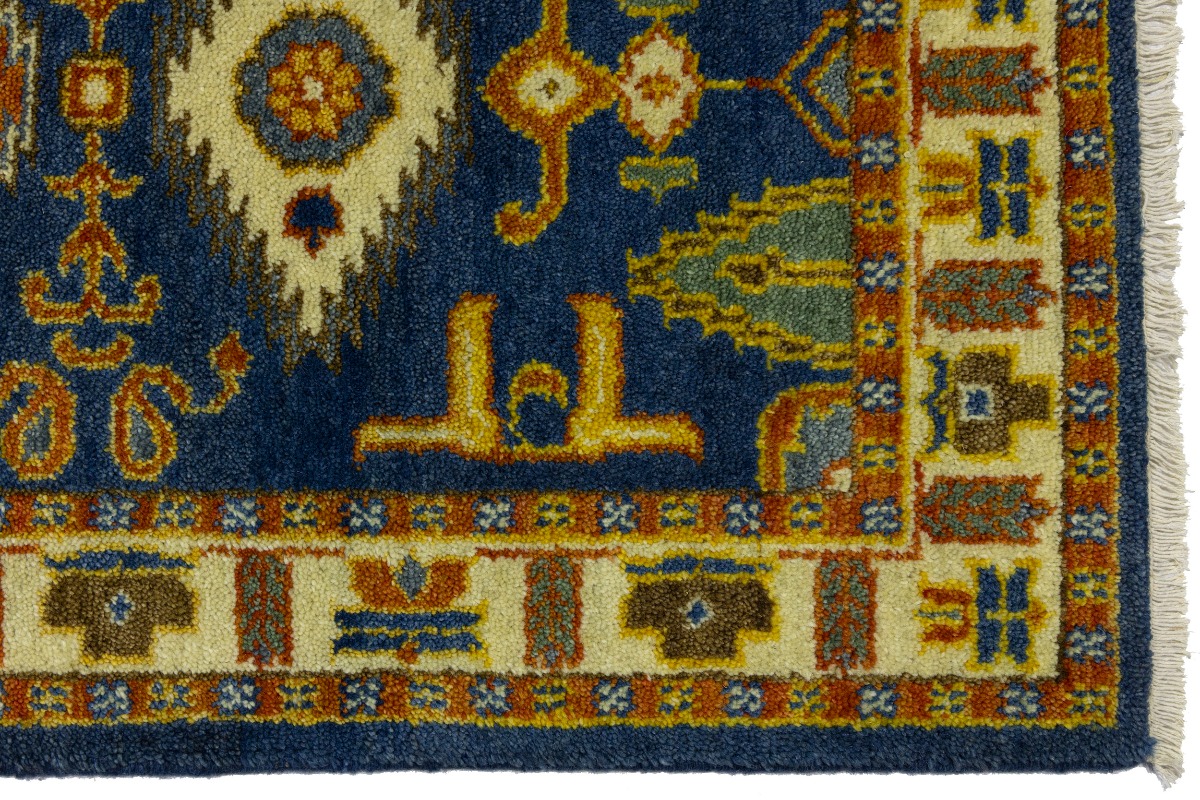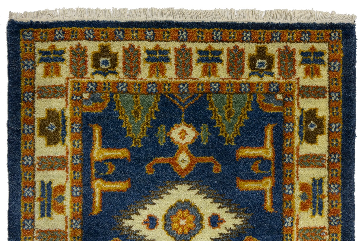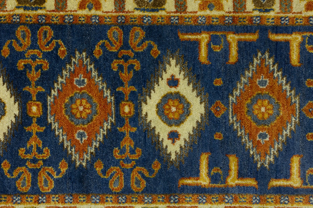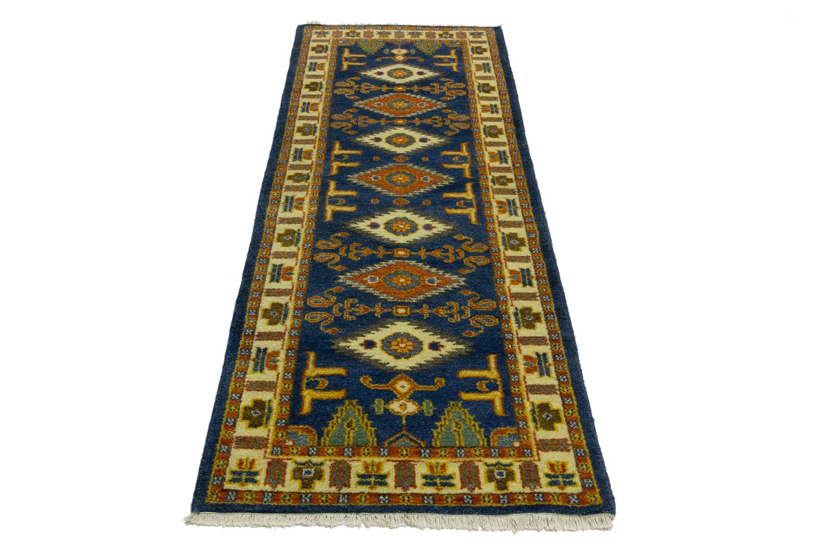 Blue Geometric 3X8 Kazak Oriental Runner Rug