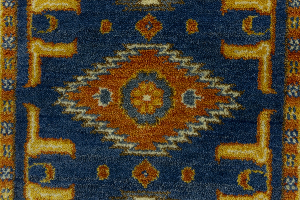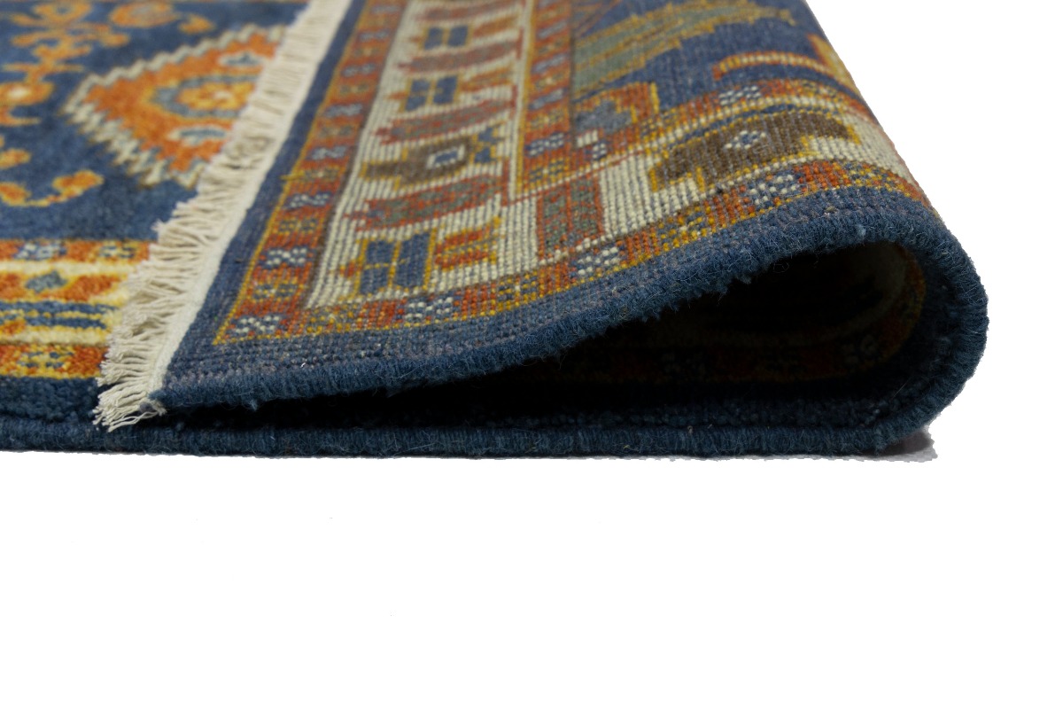 This authentic 3X8 blue new Oriental runner was crafted by the hands of skilled weavers enthused by a variety of lovely artistic designs, to recreate the aged look of the unique piece with a richness of color and beautifully elaborated background field. What set this vintage style Oriental area runner from the others are the material and dye used (wool pile and cotton foundation), knot count, ancient designs, fantastic grades, and its regional historical connection: it has deep roots, from the story of the people who produced it to the meaning of the symbols and colors displayed across its canvas that have been praised for centuries. This Indian home décor carpet will be completely cozy and inviting that never will go out of style! Also, this Oriental rug would be among your most valuable treasures, it is a great investment that increase in value over time, and it will last for generations because was woven with high-quality, all-natural wool. Environmentally friendly, opulent yet affordable; this runner will give you a thorough amount of character to help define your living space with sophistication and warmth that will capture the eyes and attention of your audience (homeowners, designers, decorators, family and friends). OT-8010