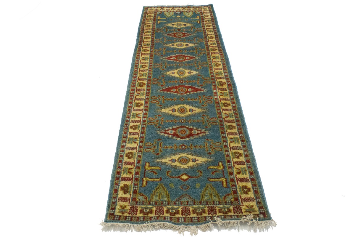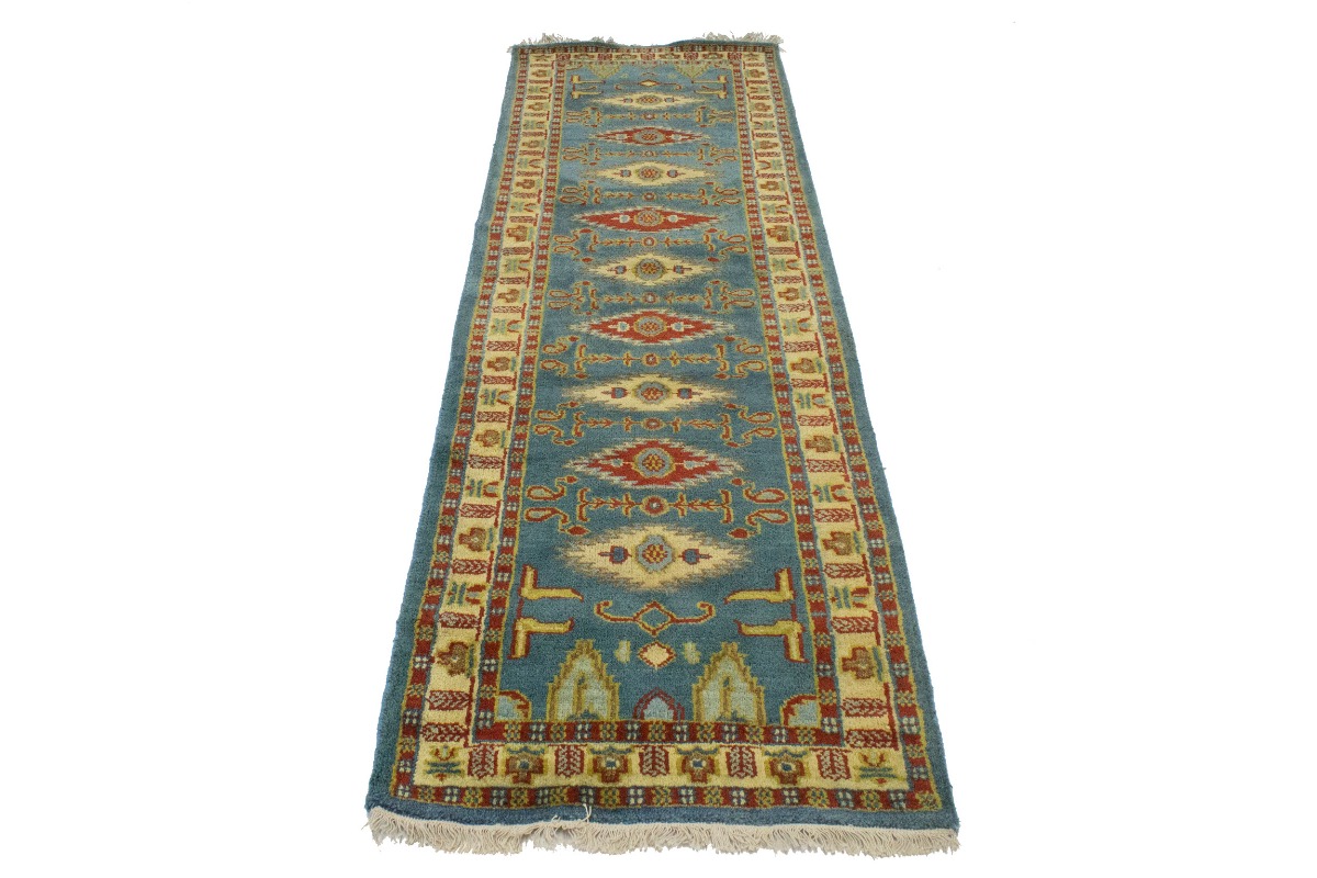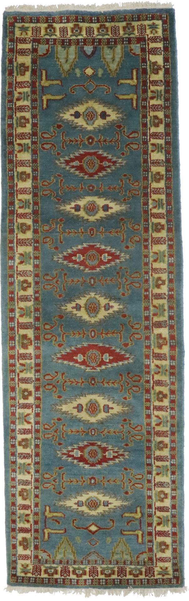 Blue Geometric 3X9 Kazak Oriental Runner Rug