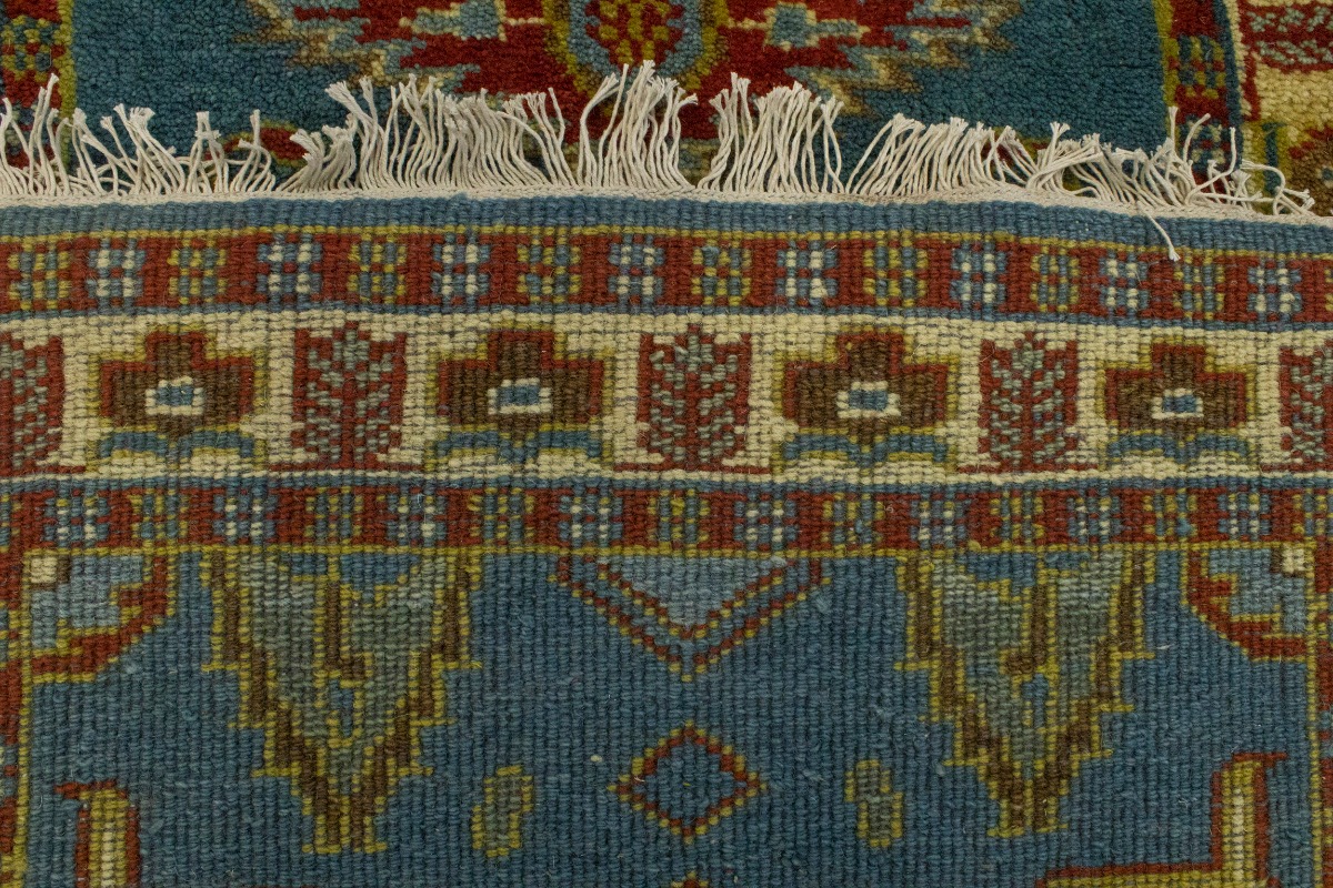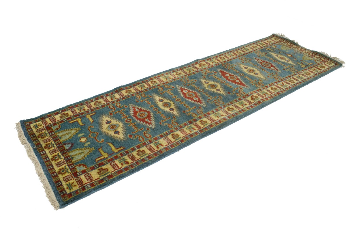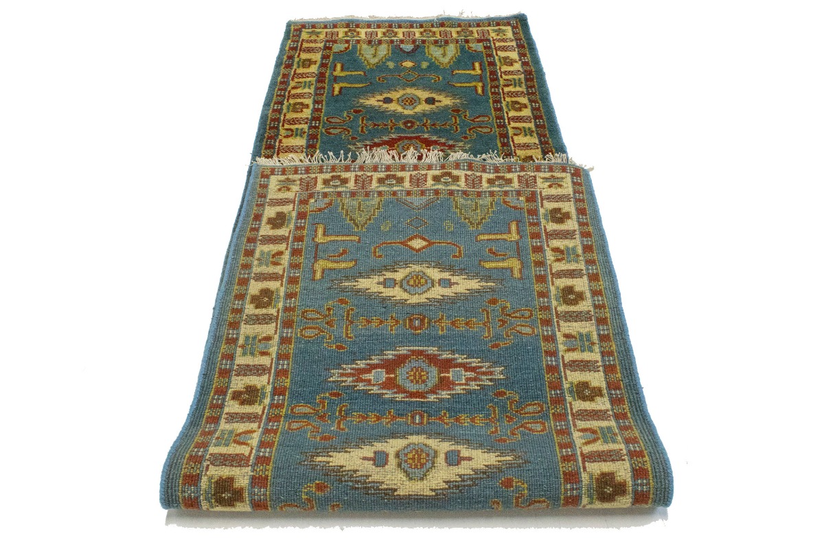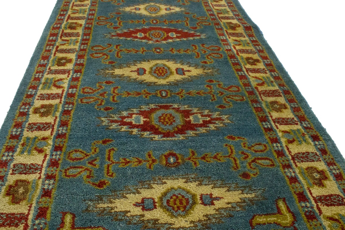 Blue Geometric 3X9 Kazak Oriental Runner Rug