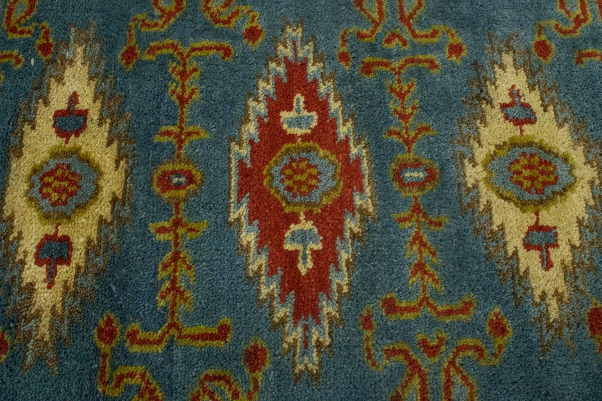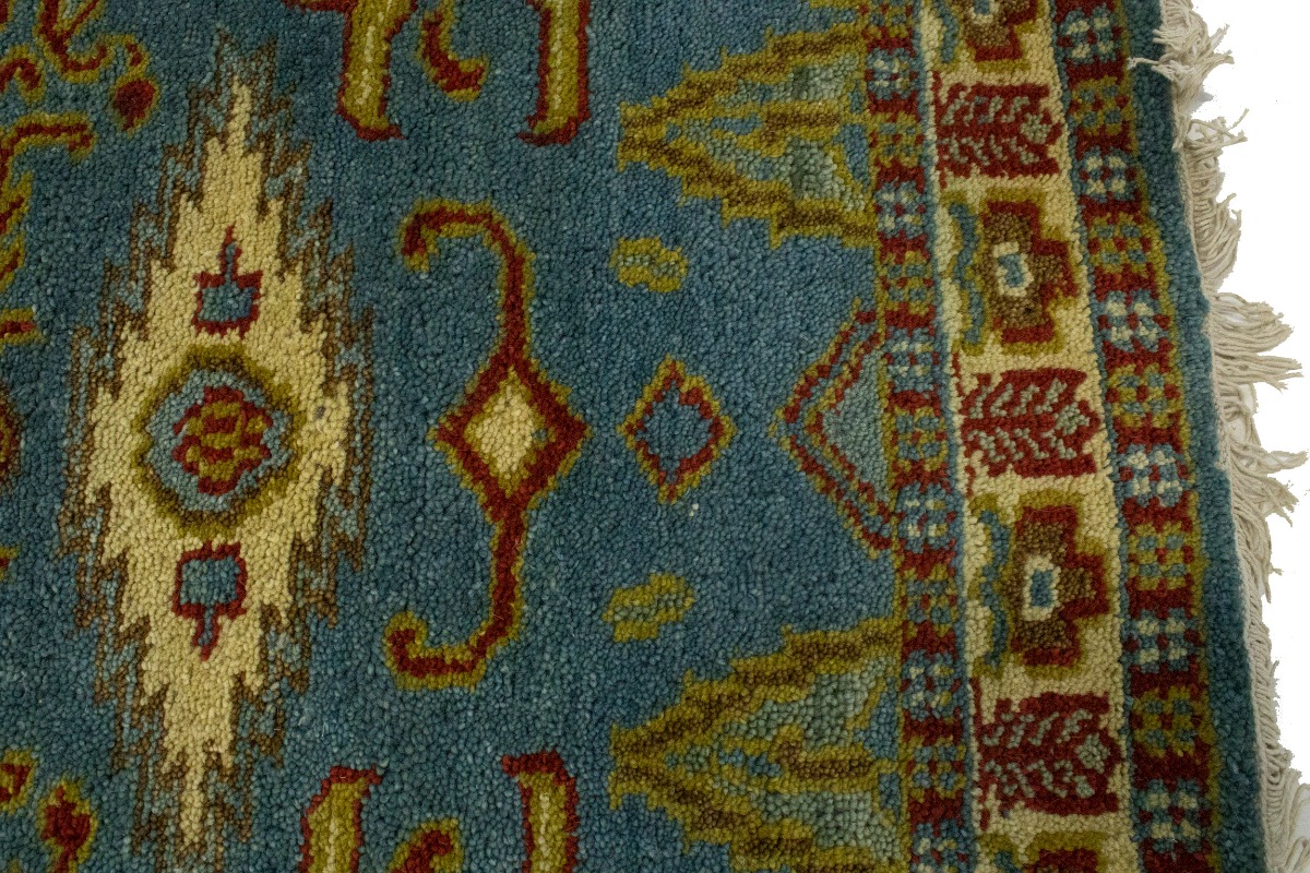 This original 3X9 blue new Oriental runner was finely knotted by the hands of weavers influenced by a variety of amazing artistic designs, to recreate the aged look of the exceptional piece with a richness of color and embellished background field. What set this vintage style Oriental area runner from the others are the material and dye used (wool pile and cotton foundation), knot count, antique designs, fantastic grades, and its regional historical connection: it has deep roots, from the story of the people who produced it to the meaning of the symbols and colors displayed across its canvas that have been praised for centuries. This Indian home décor carpet will be completely cozy and inviting that never will go out of style! Also, this Oriental rug would be among your most valuable treasures, it is a great investment that increase in value over time, and it will last a lifetime because was woven with high-quality, all-natural wool. Eco-friendly, opulent yet affordable; this runner will give you an extra pop of character to help define your home environment with luxury and warmth that will capture the eyes and attention of your audience (homeowners, designers, decorators, family and friends). OT-6521
