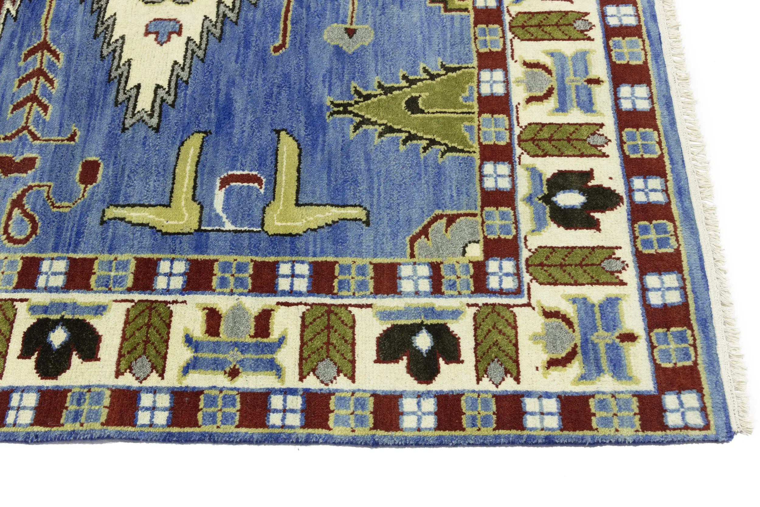 Blue Geometric 6X9 Kazak Oriental Rug