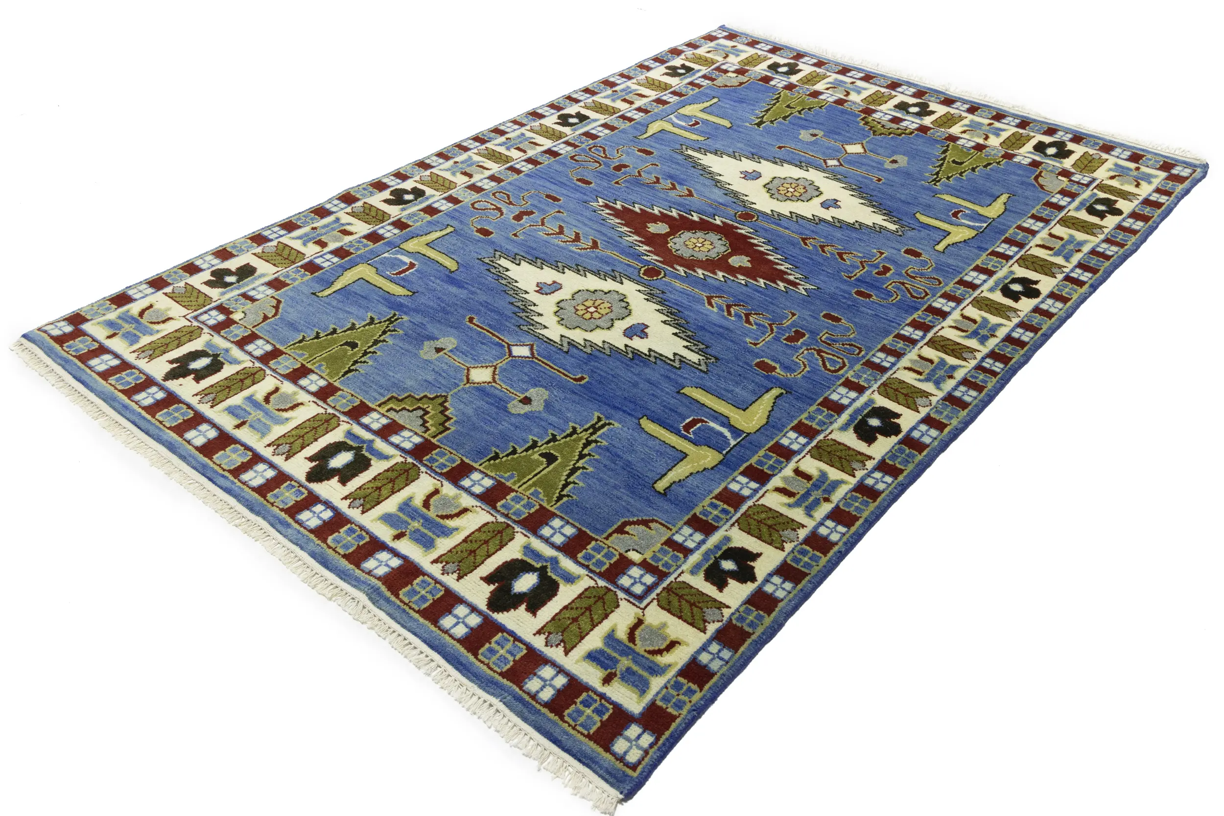 Handmade 6X9 blue oriental rug made with vegetable dyes (fine wool pile and cotton foundation), superior knot count, and appealing ancient designs. This Oriental rug never will go out of style and would be among your most valuable treasures.