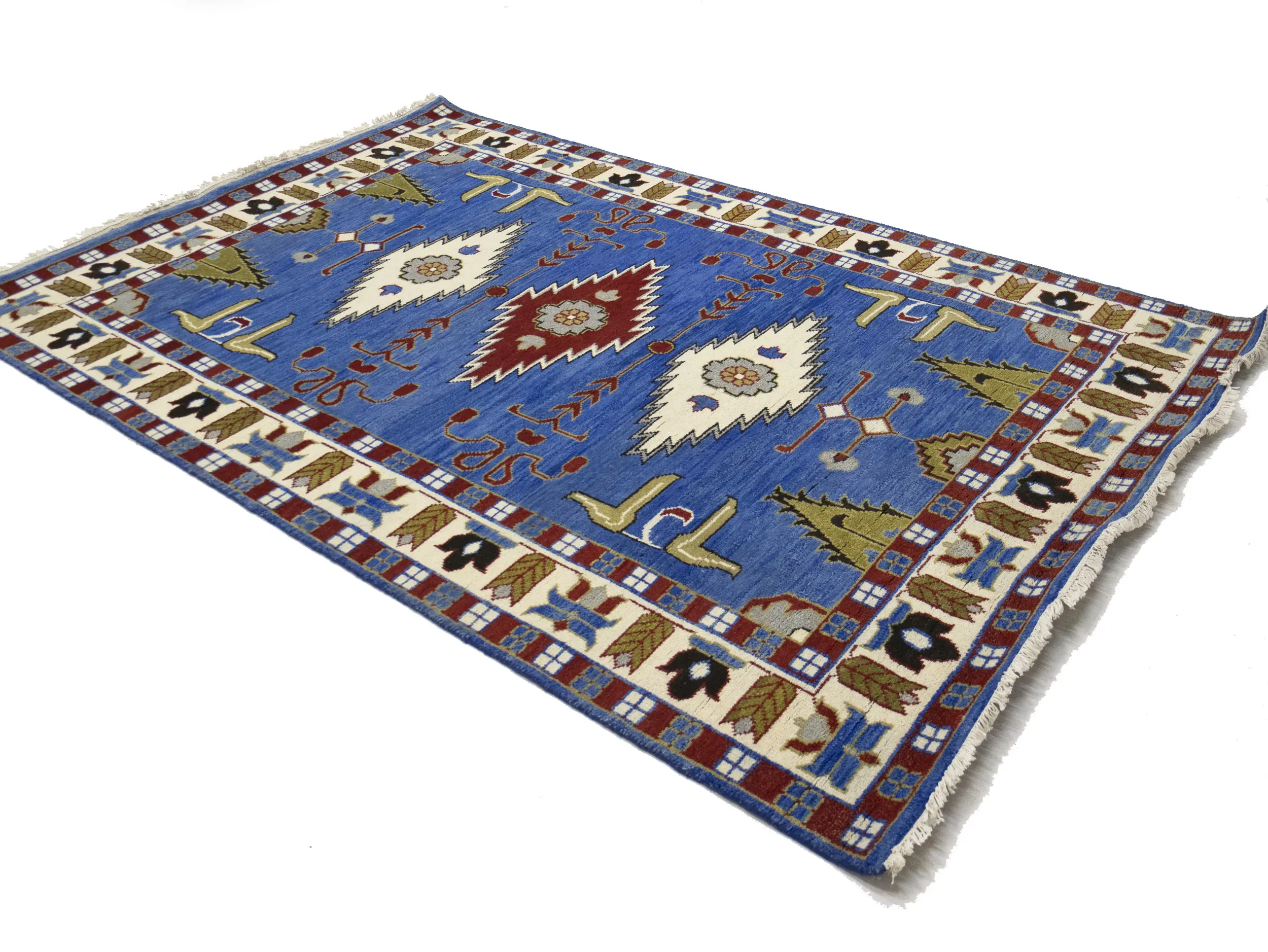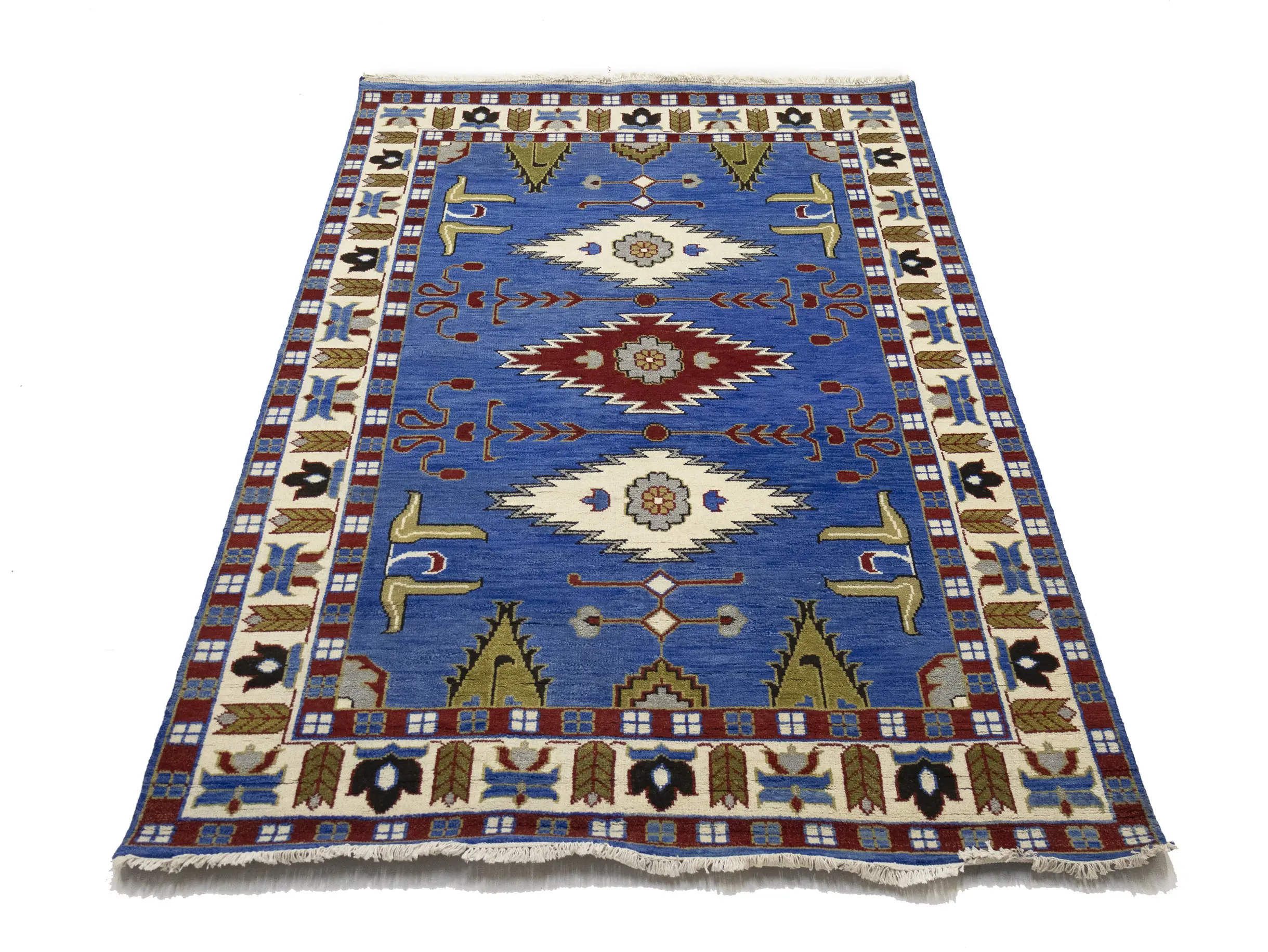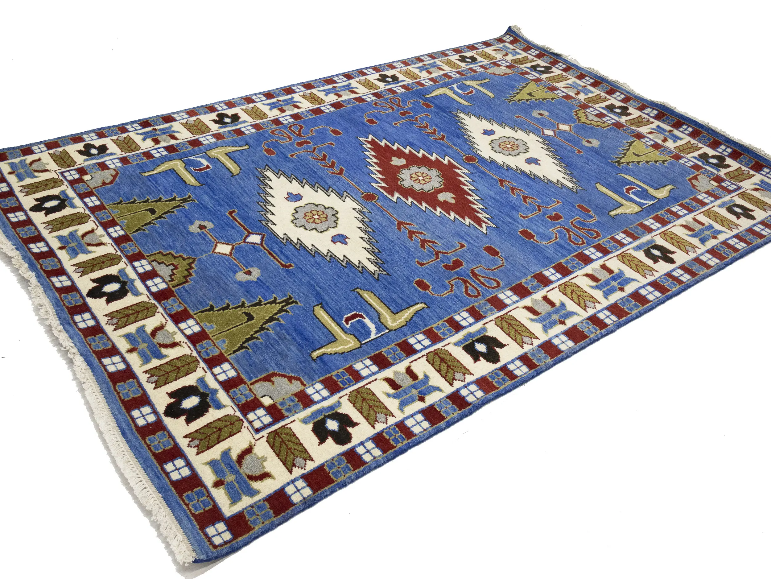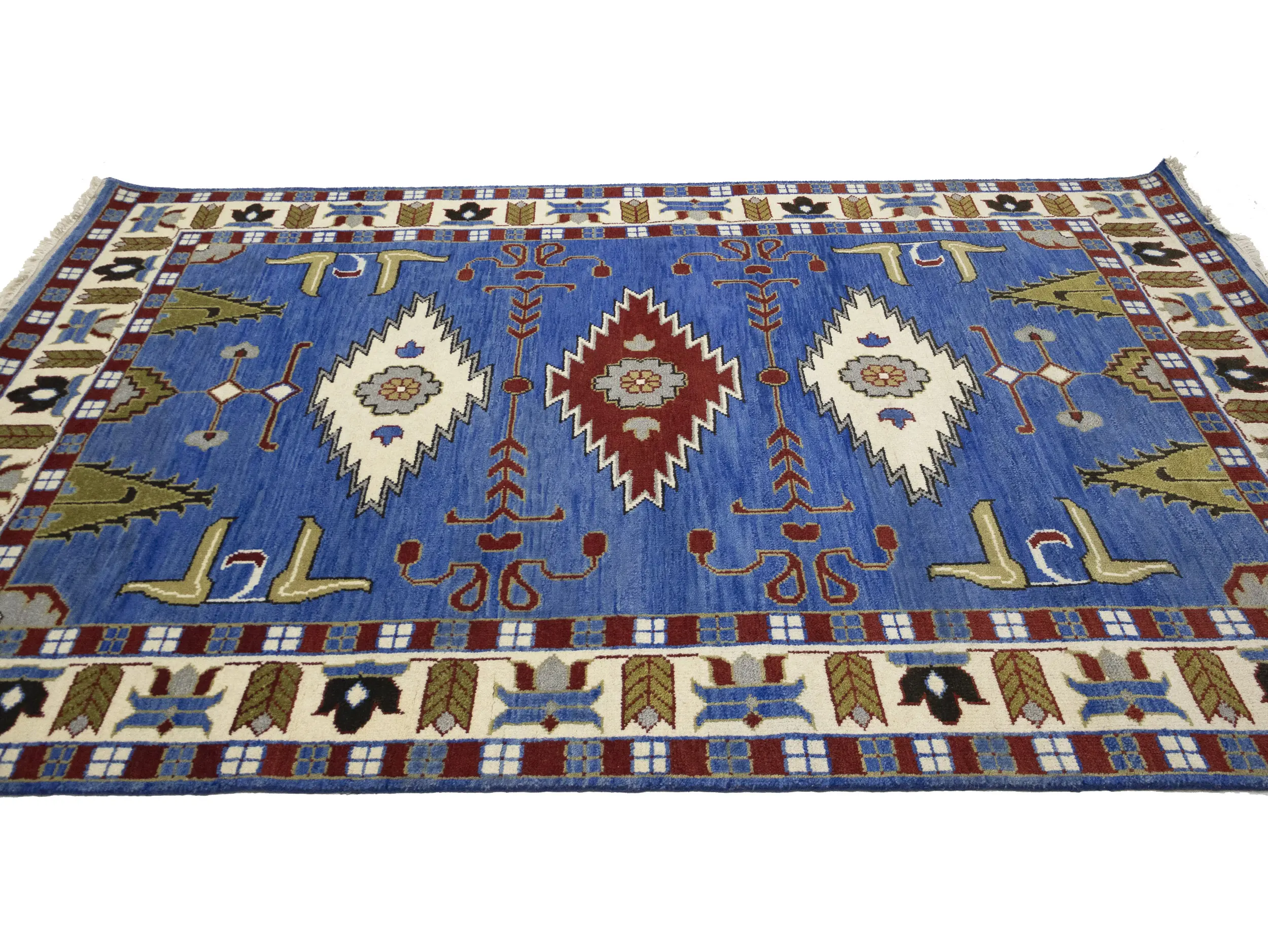 Handmade 6X9 Blue oriental rug made with vegetable dyes (fine wool pile and cotton foundation), superior knot count, and appealing ancient designs. This Oriental rug never will go out of style and would be among your most valuable treasures.