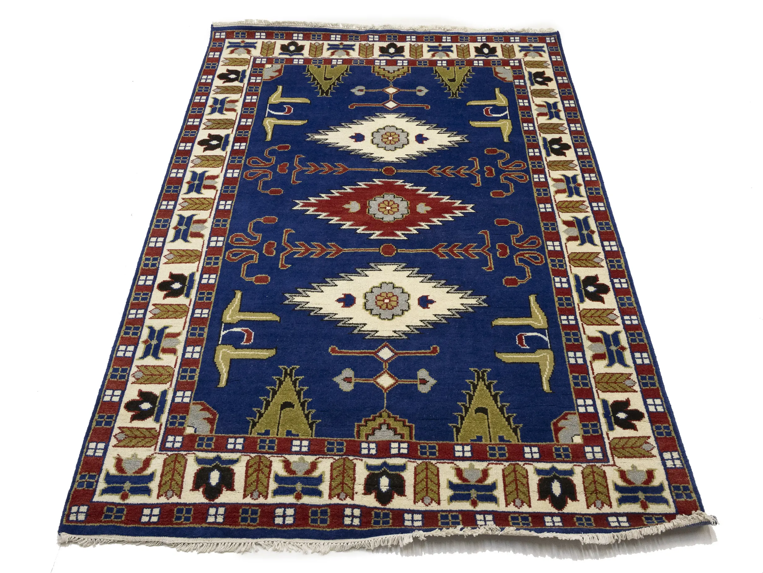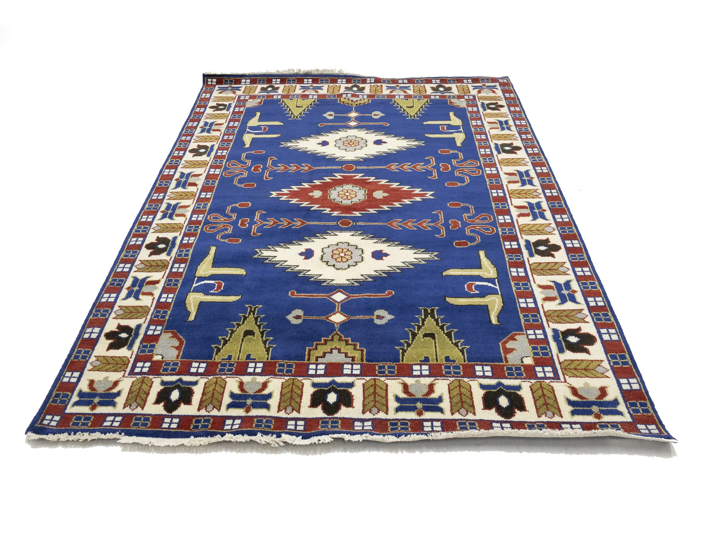 Handmade 6X9 Blue oriental rug made with vegetable dyes (fine wool pile and cotton foundation), superior knot count, and appealing ancient designs. This Oriental rug never will go out of style and would be among your most valuable treasures.