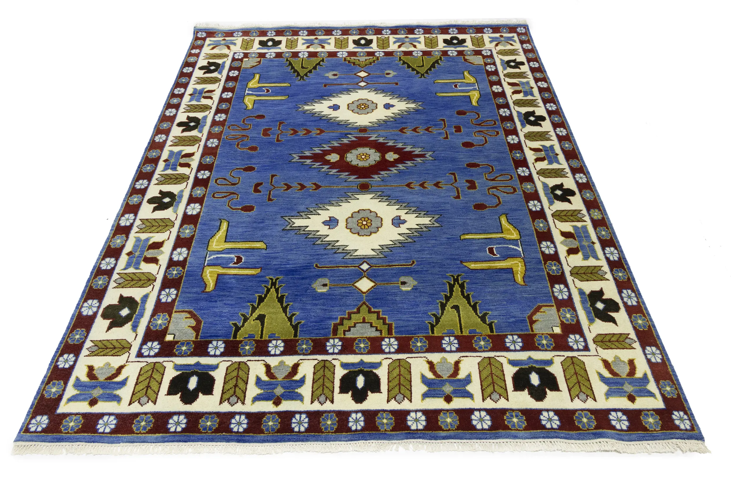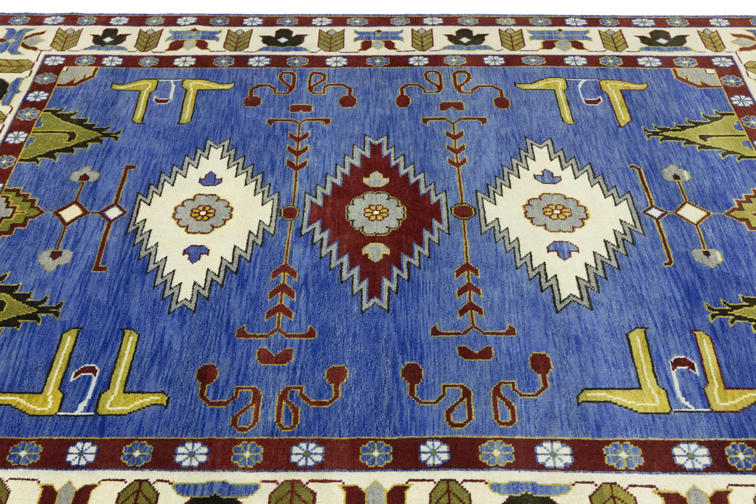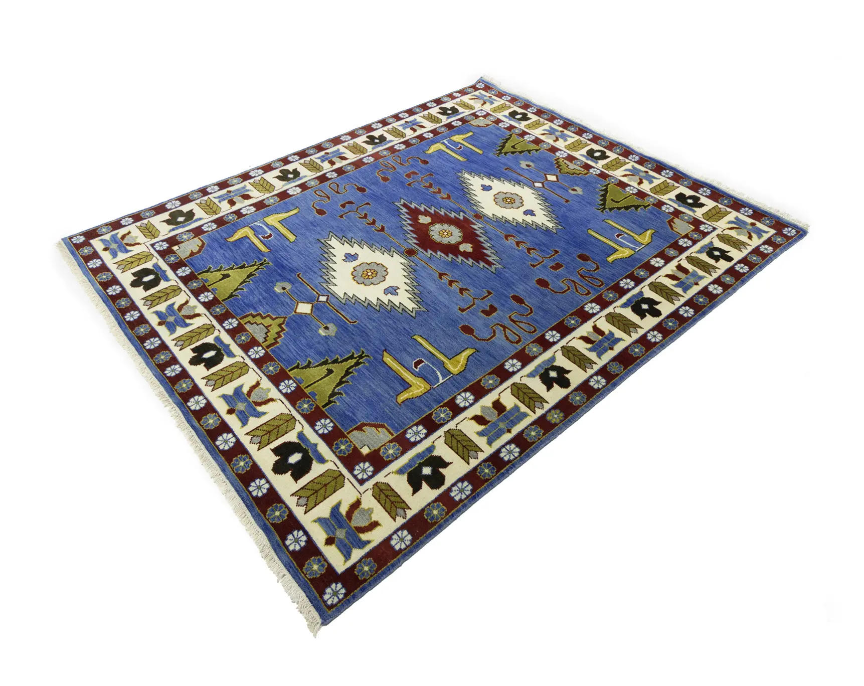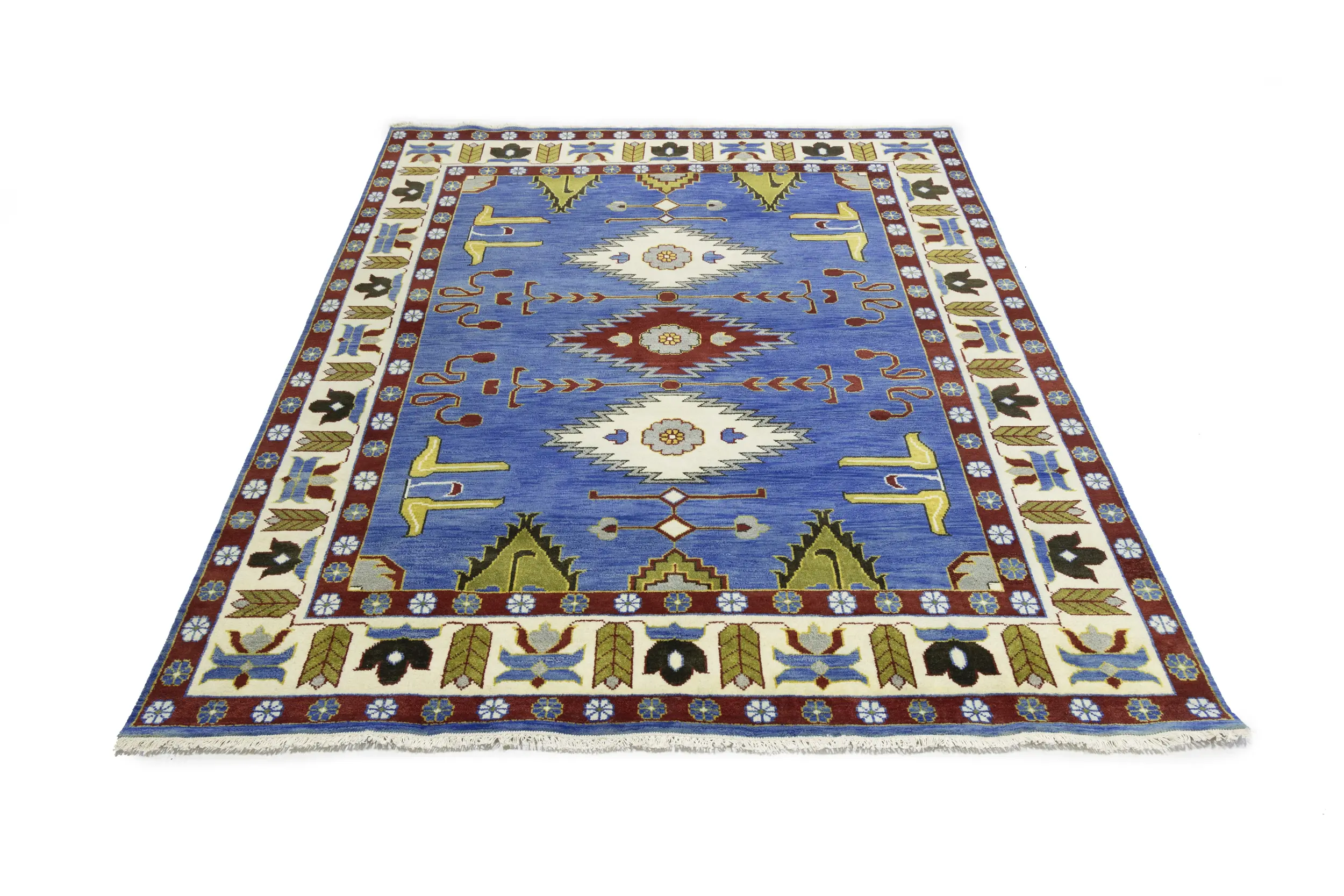 Handmade 8X10 blue oriental rug made with vegetable dyes (fine wool pile and cotton foundation), superior knot count, and appealing ancient designs. This Oriental rug never will go out of style and would be among your most valuable treasures.
