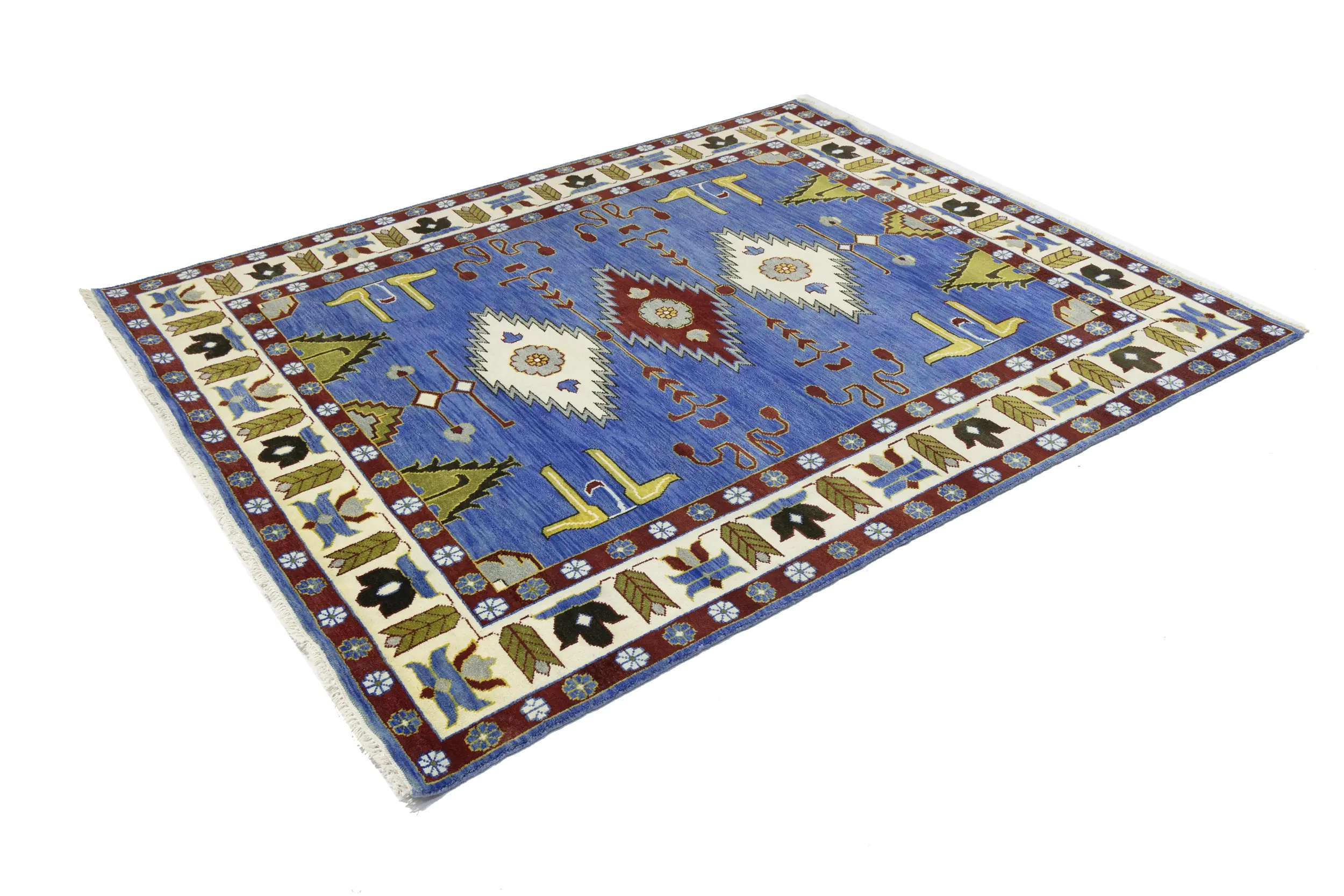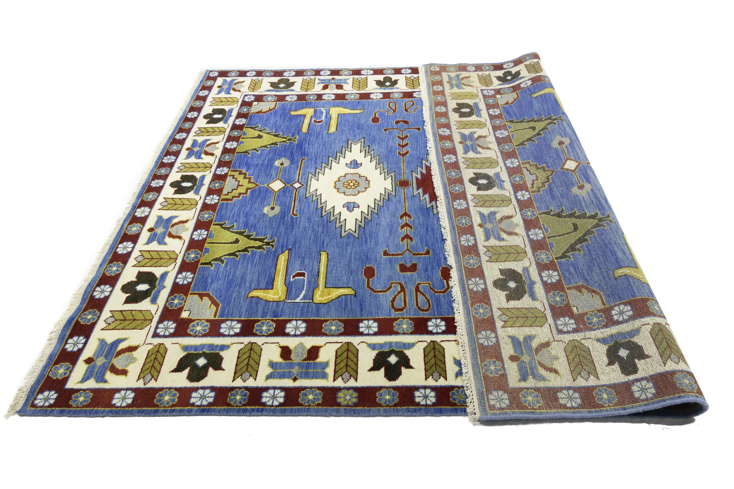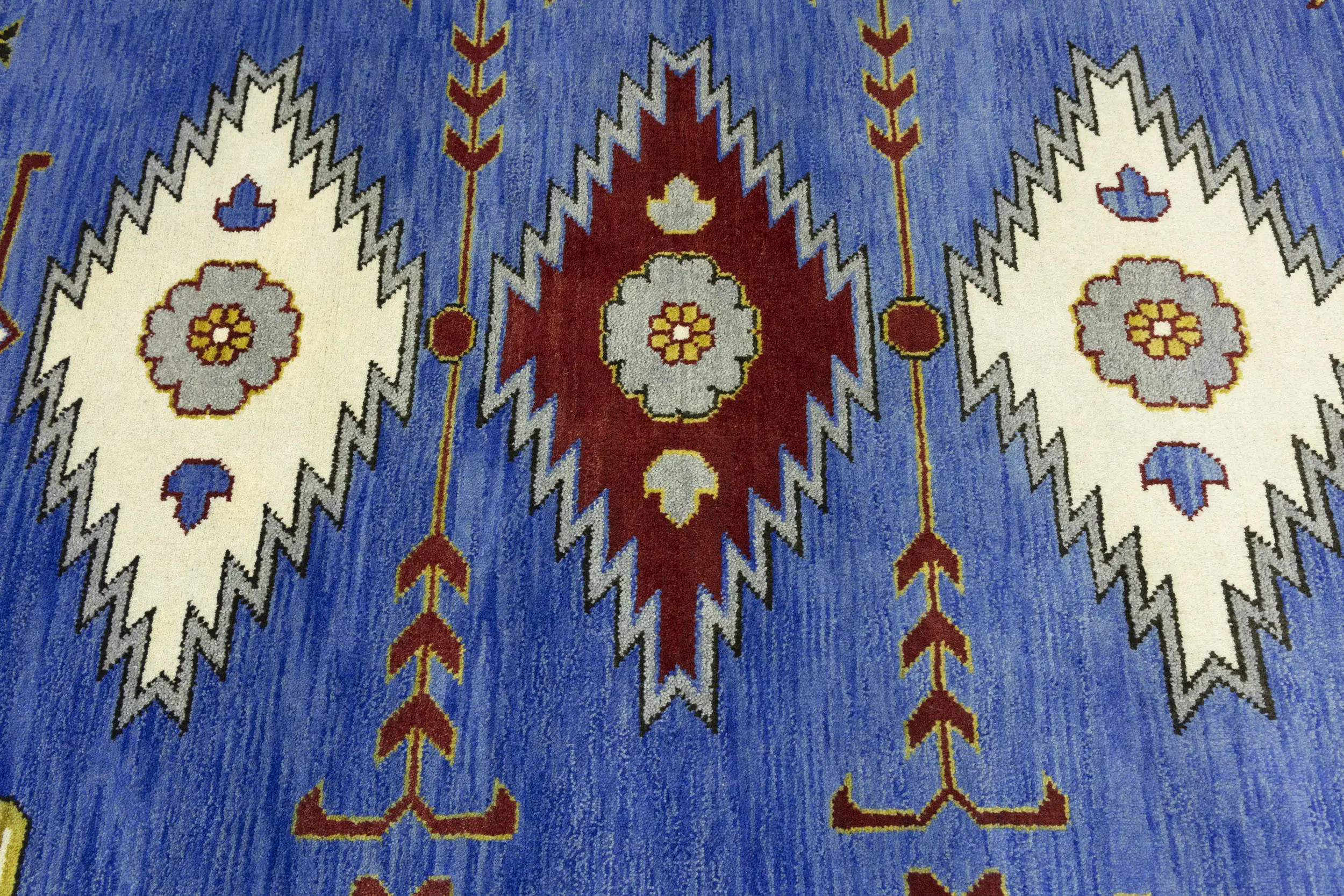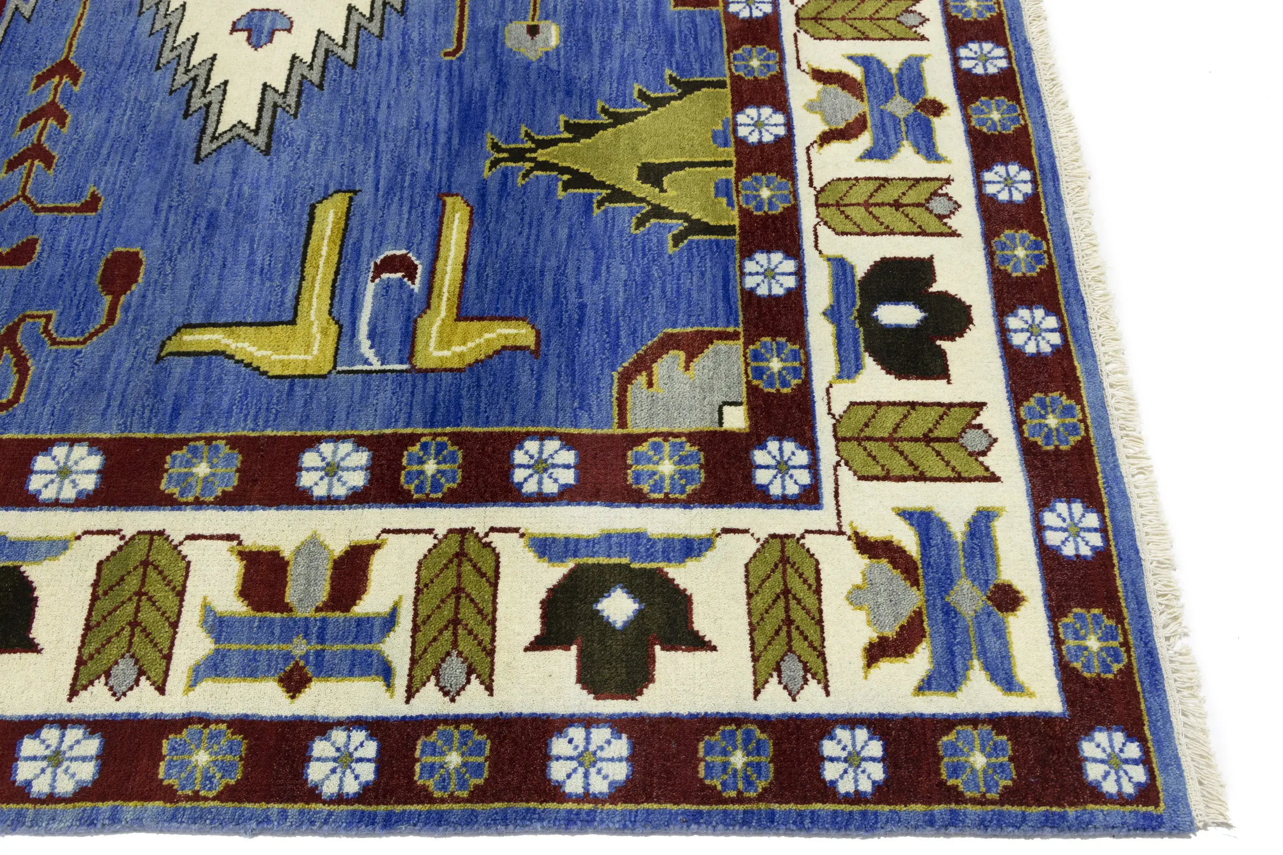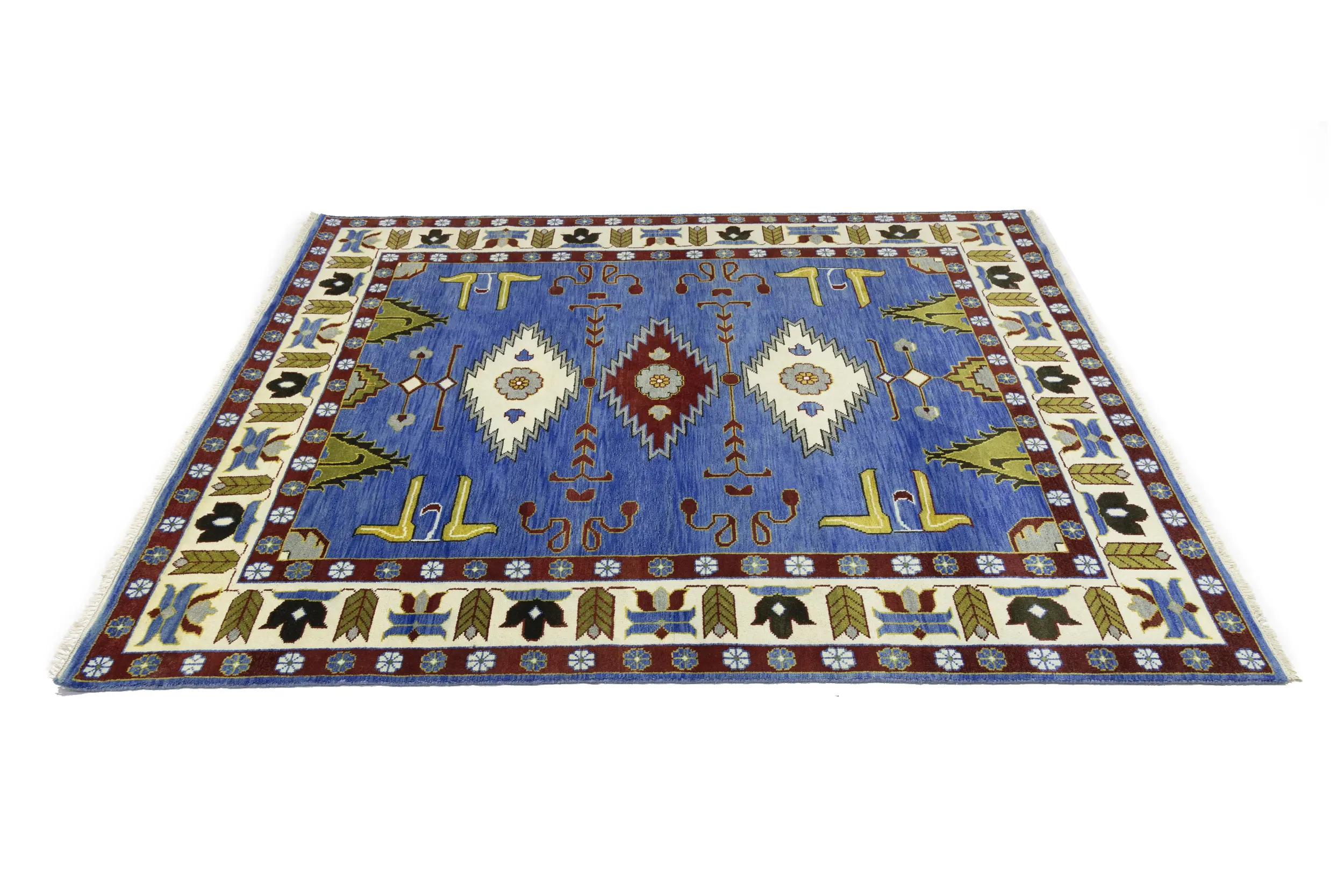 Handmade 8X10 blue oriental rug made with vegetable dyes (fine wool pile and cotton foundation), superior knot count, and appealing ancient designs. This Oriental rug never will go out of style and would be among your most valuable treasures.