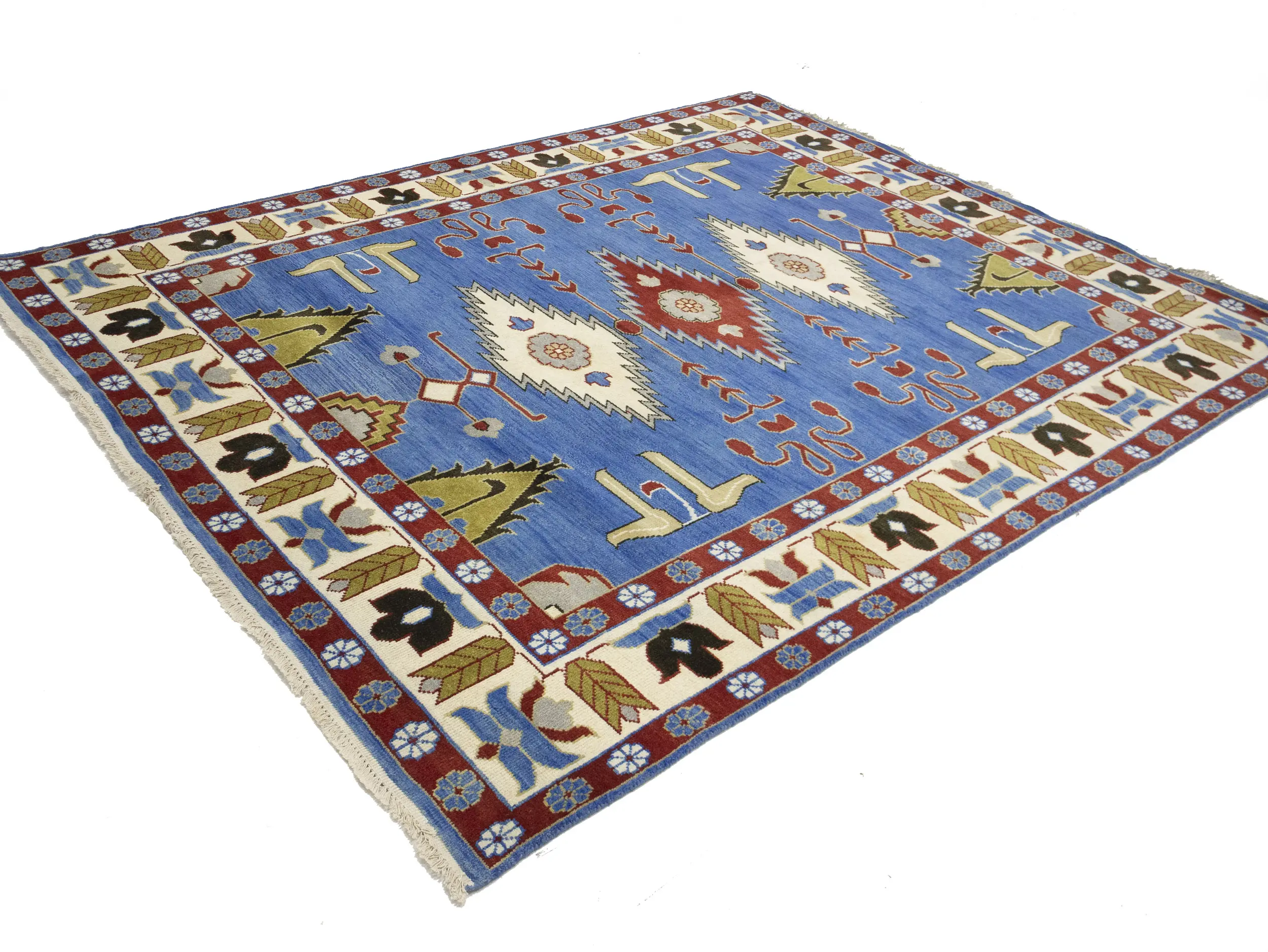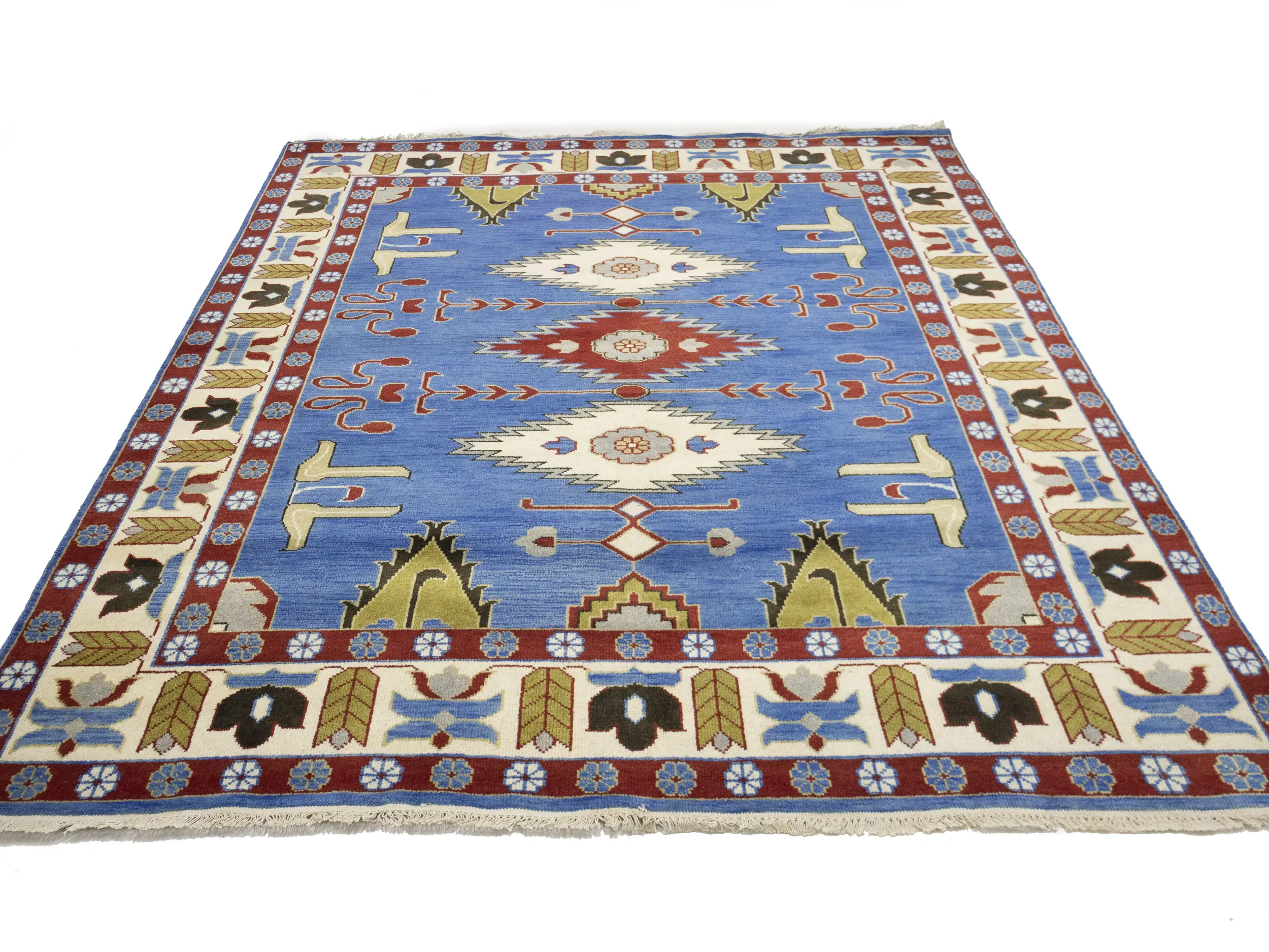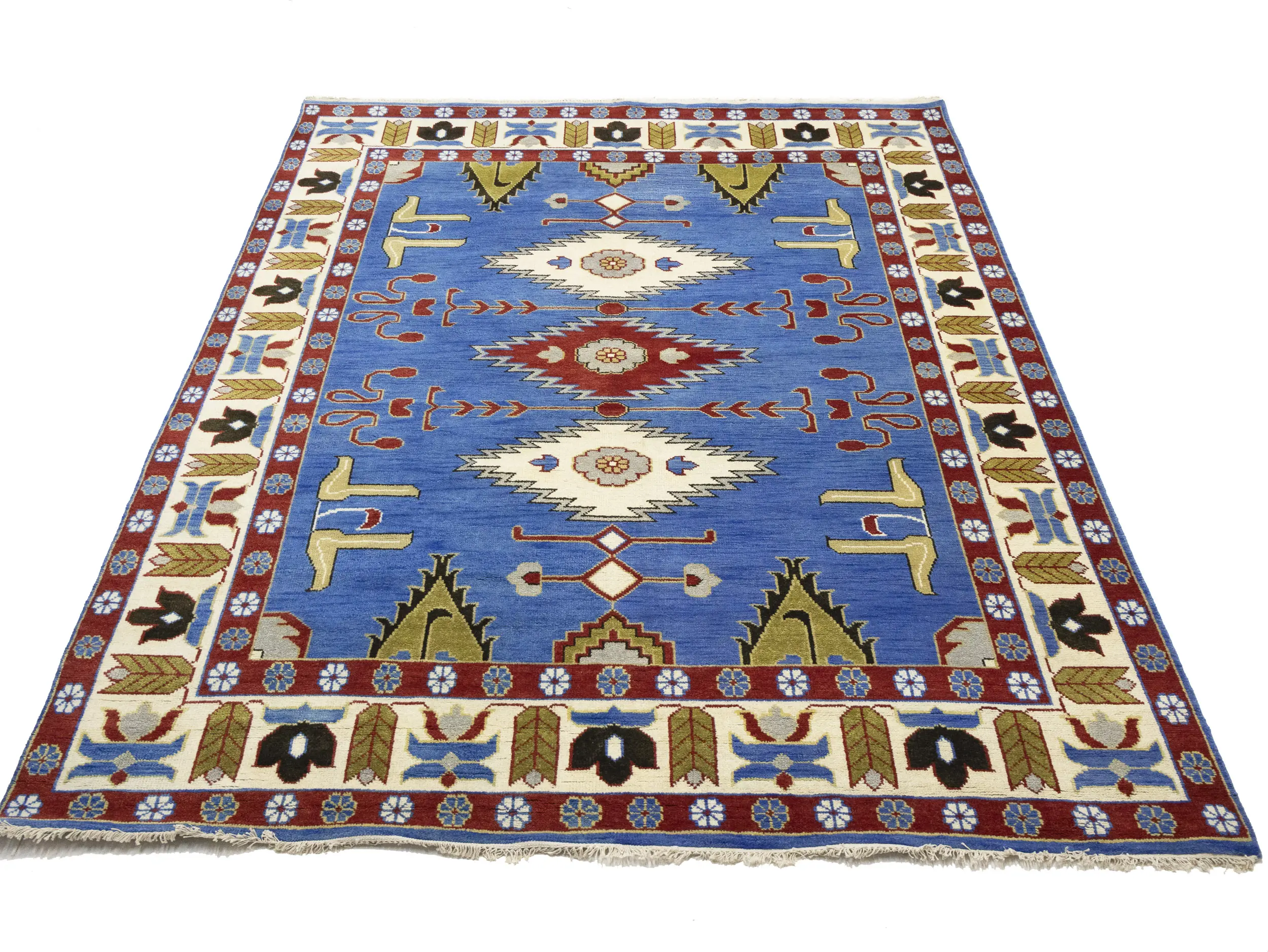 Handmade 8X10 Blue oriental rug made with vegetable dyes (fine wool pile and cotton foundation), superior knot count, and appealing ancient designs. This Oriental rug never will go out of style and would be among your most valuable treasures.