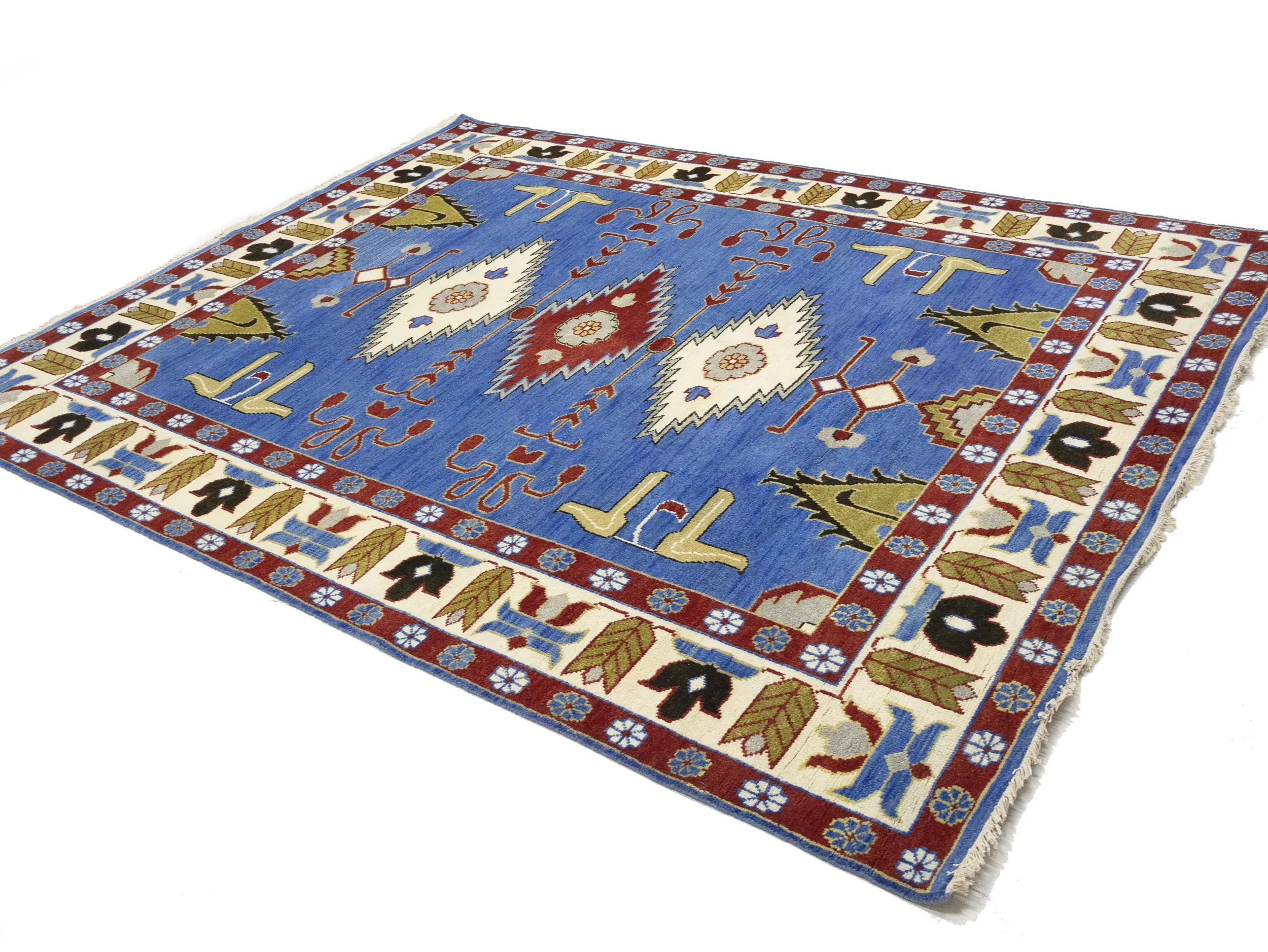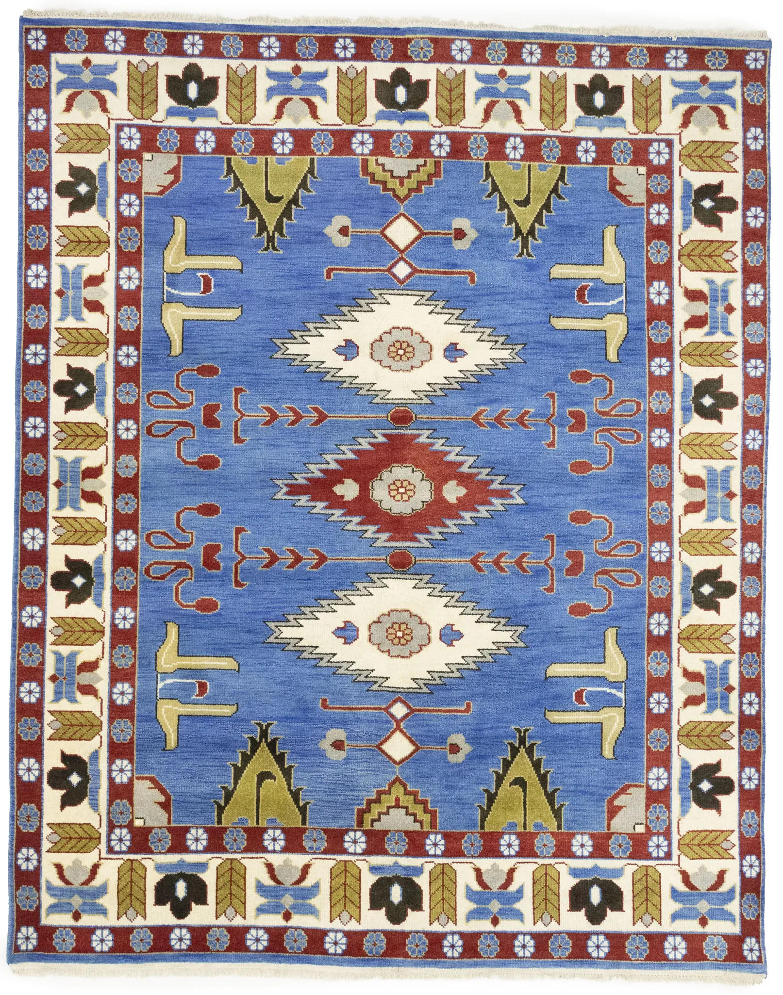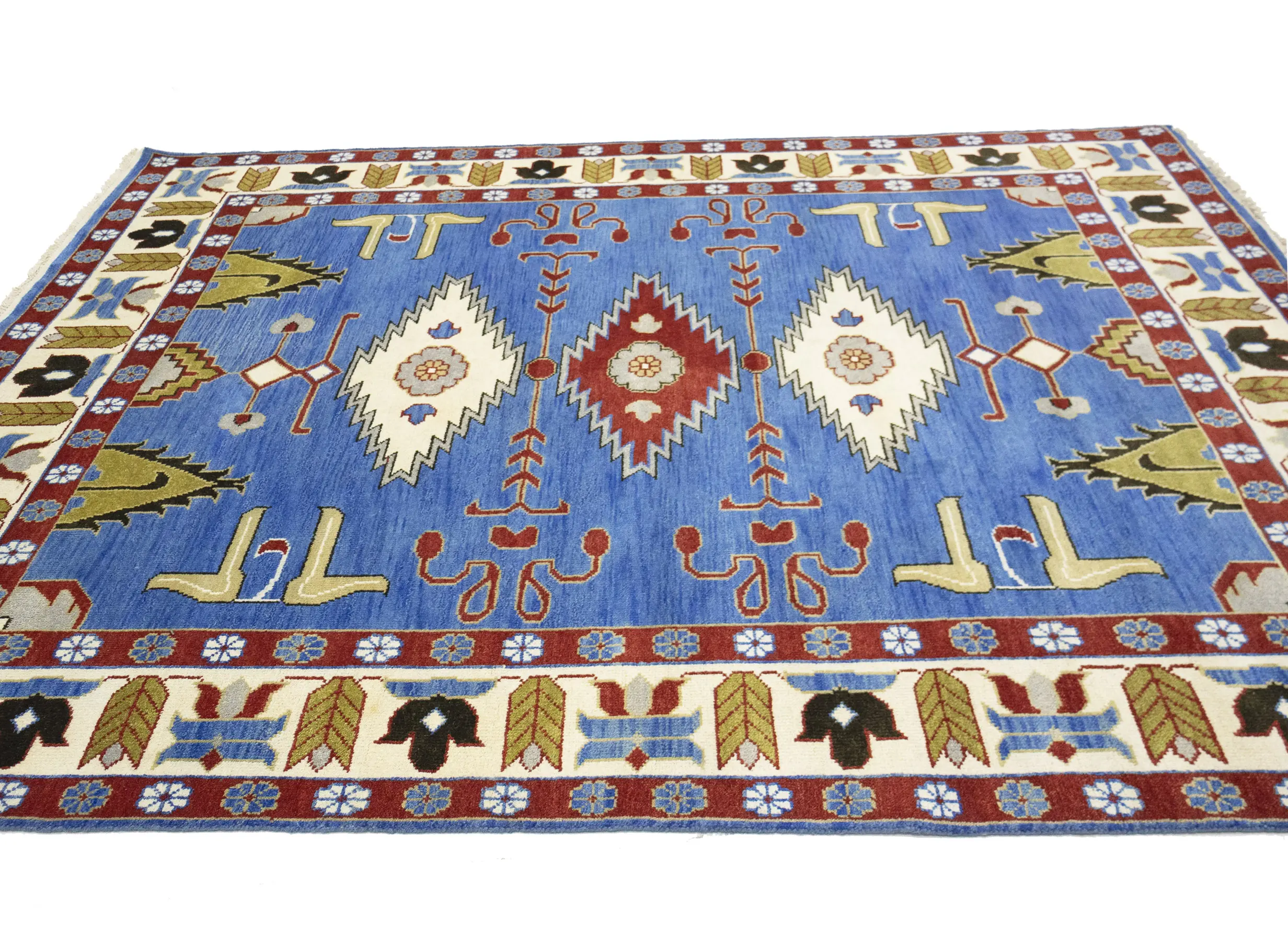 Handmade 8X10 Blue oriental rug made with vegetable dyes (fine wool pile and cotton foundation), superior knot count, and appealing ancient designs. This Oriental rug never will go out of style and would be among your most valuable treasures.