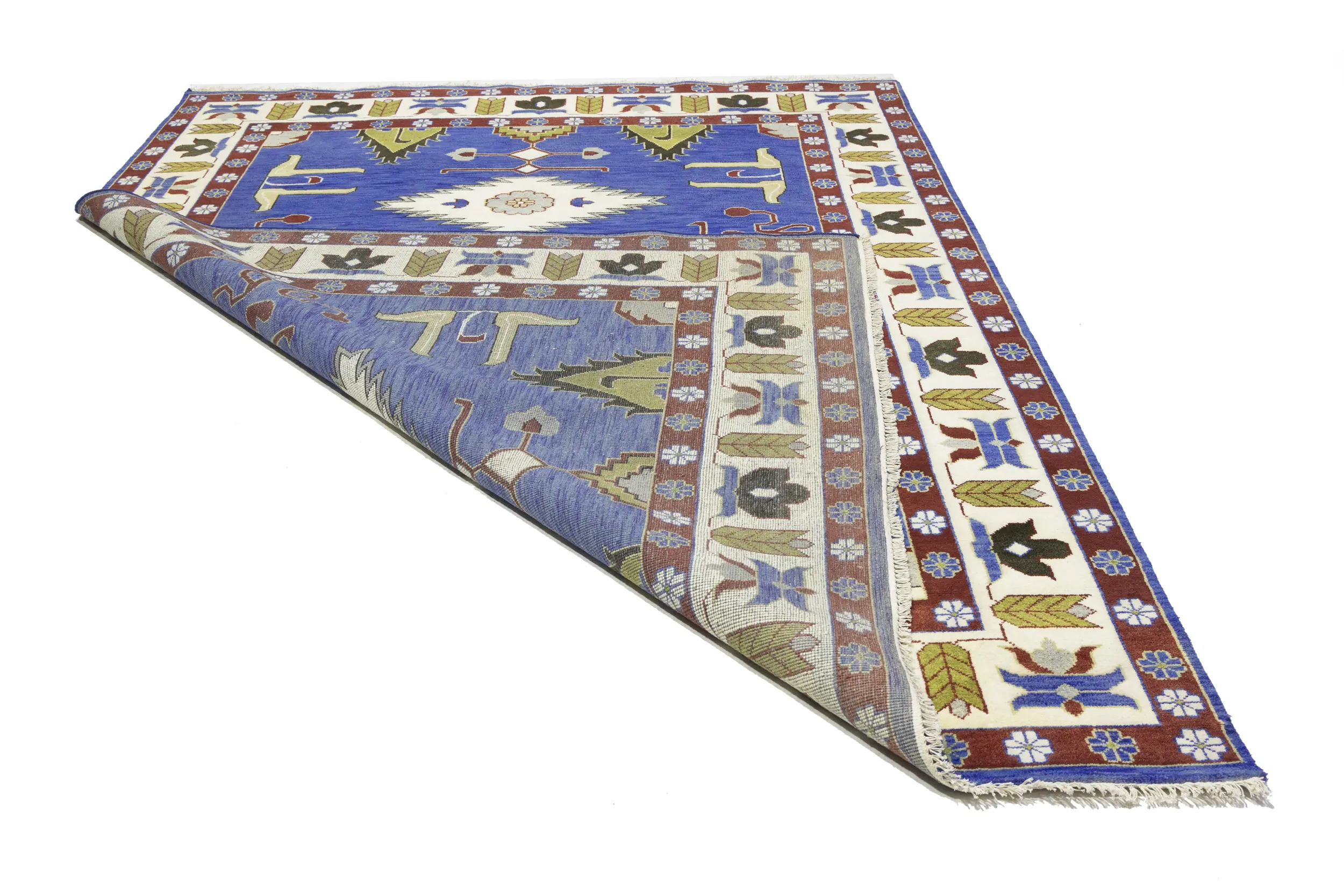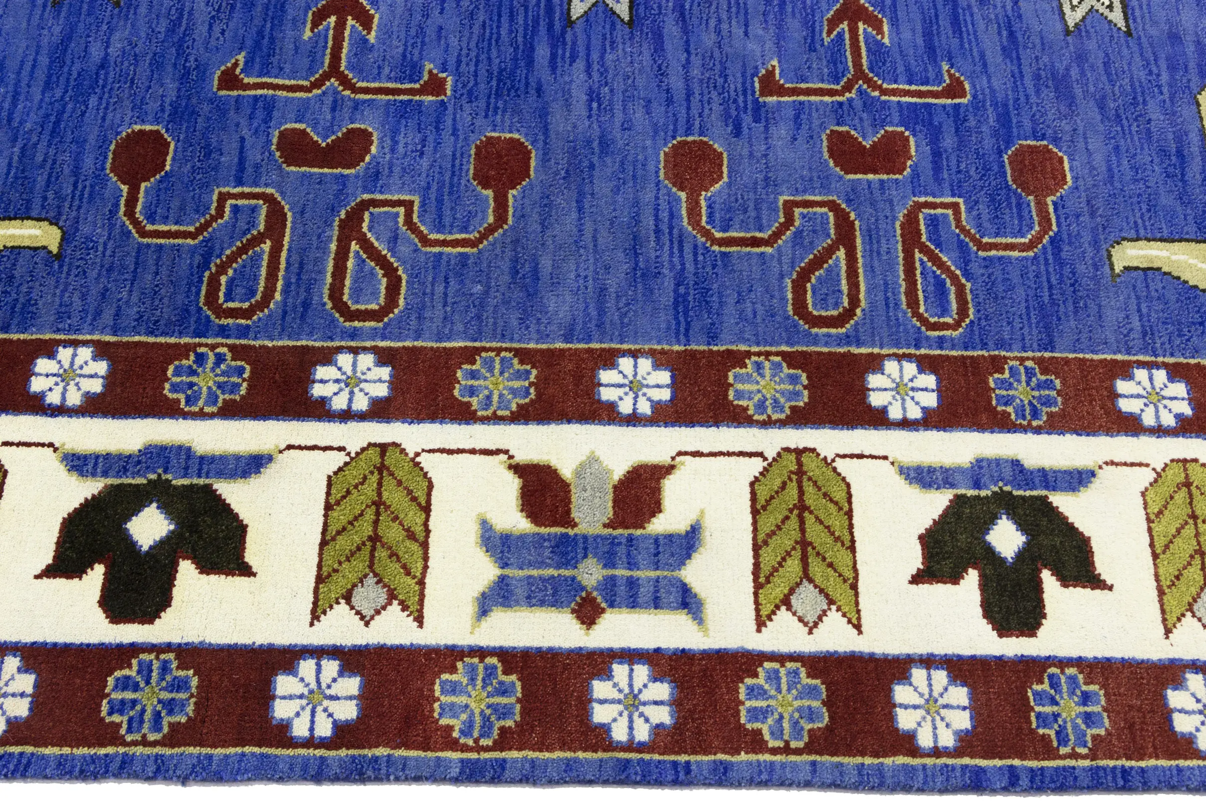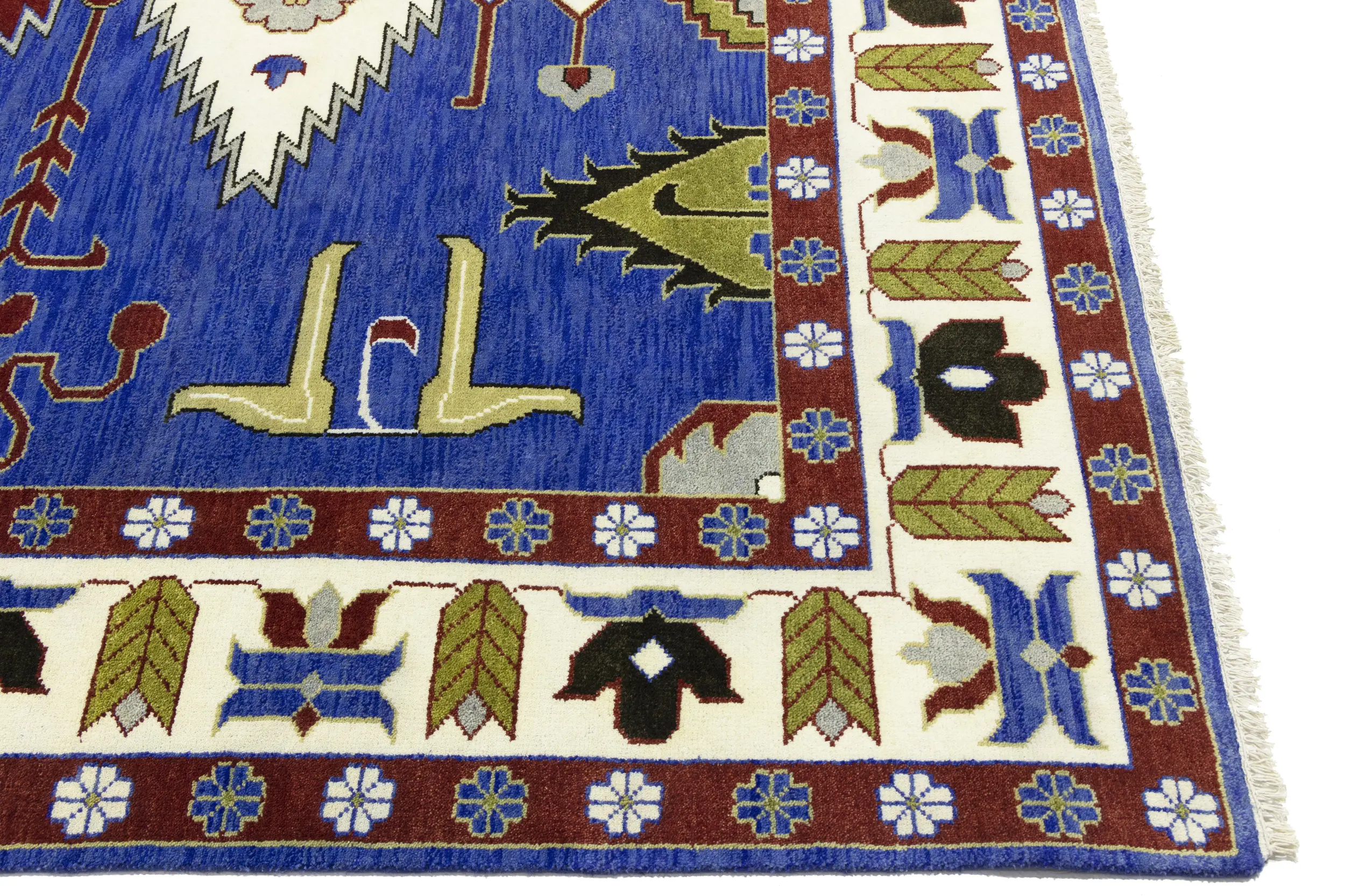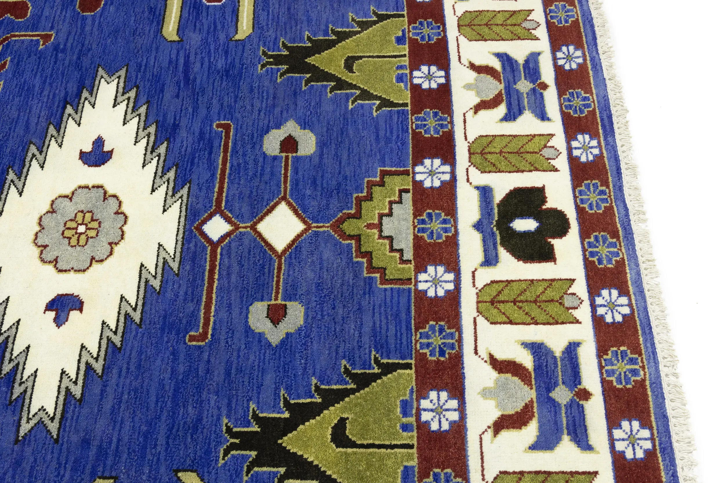 Handmade 9X12 blue oriental rug made with vegetable dyes (fine wool pile and cotton foundation), superior knot count, and appealing ancient designs. This Oriental rug never will go out of style and would be among your most valuable treasures.