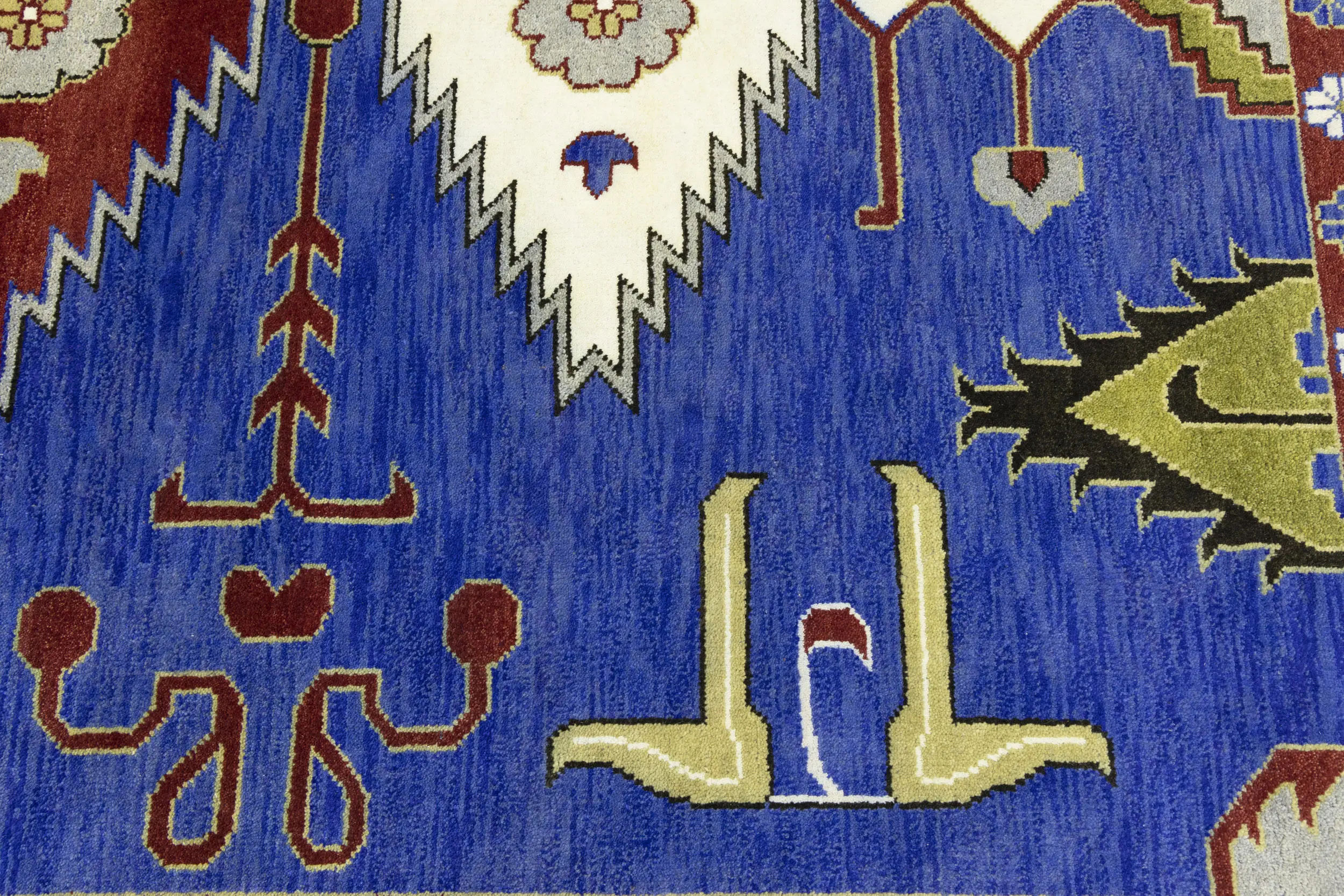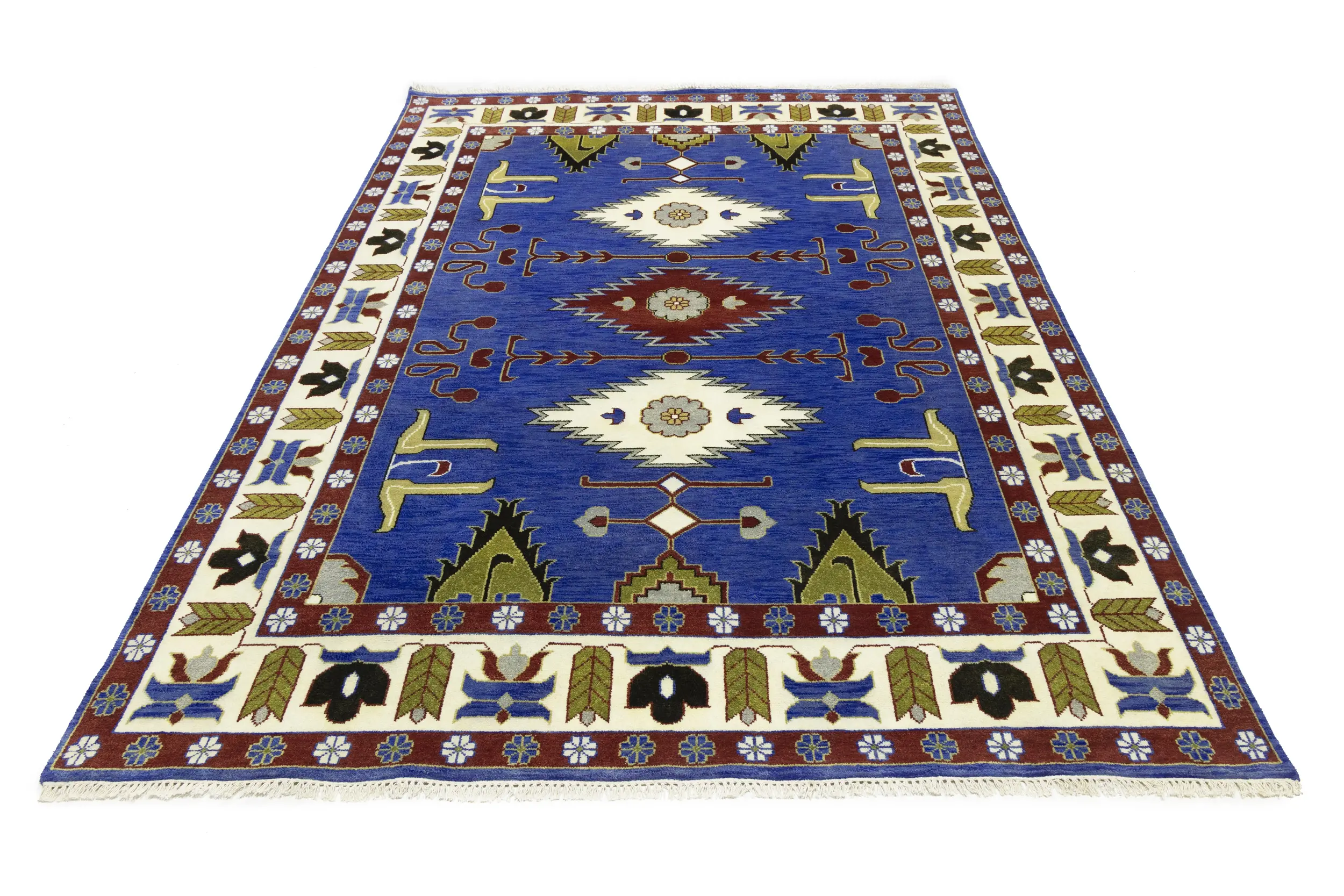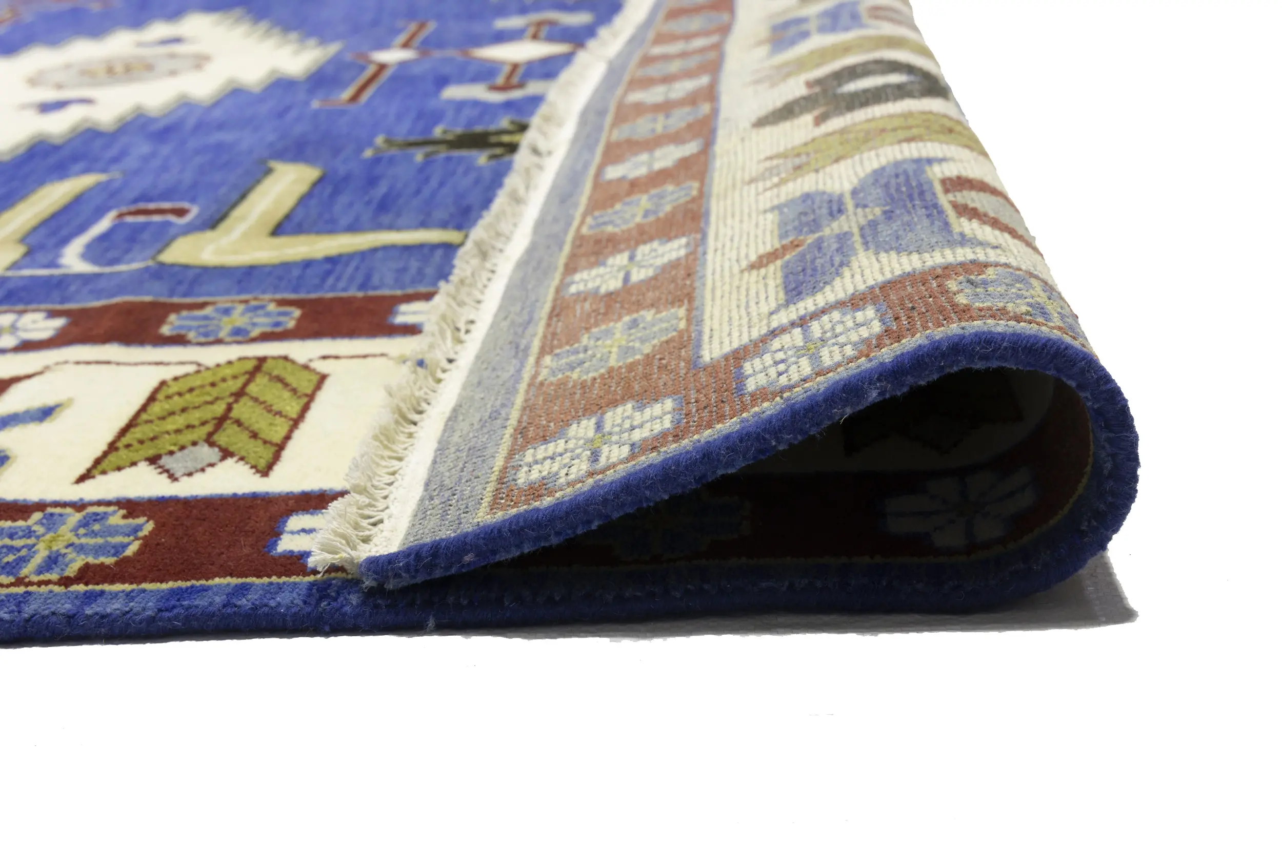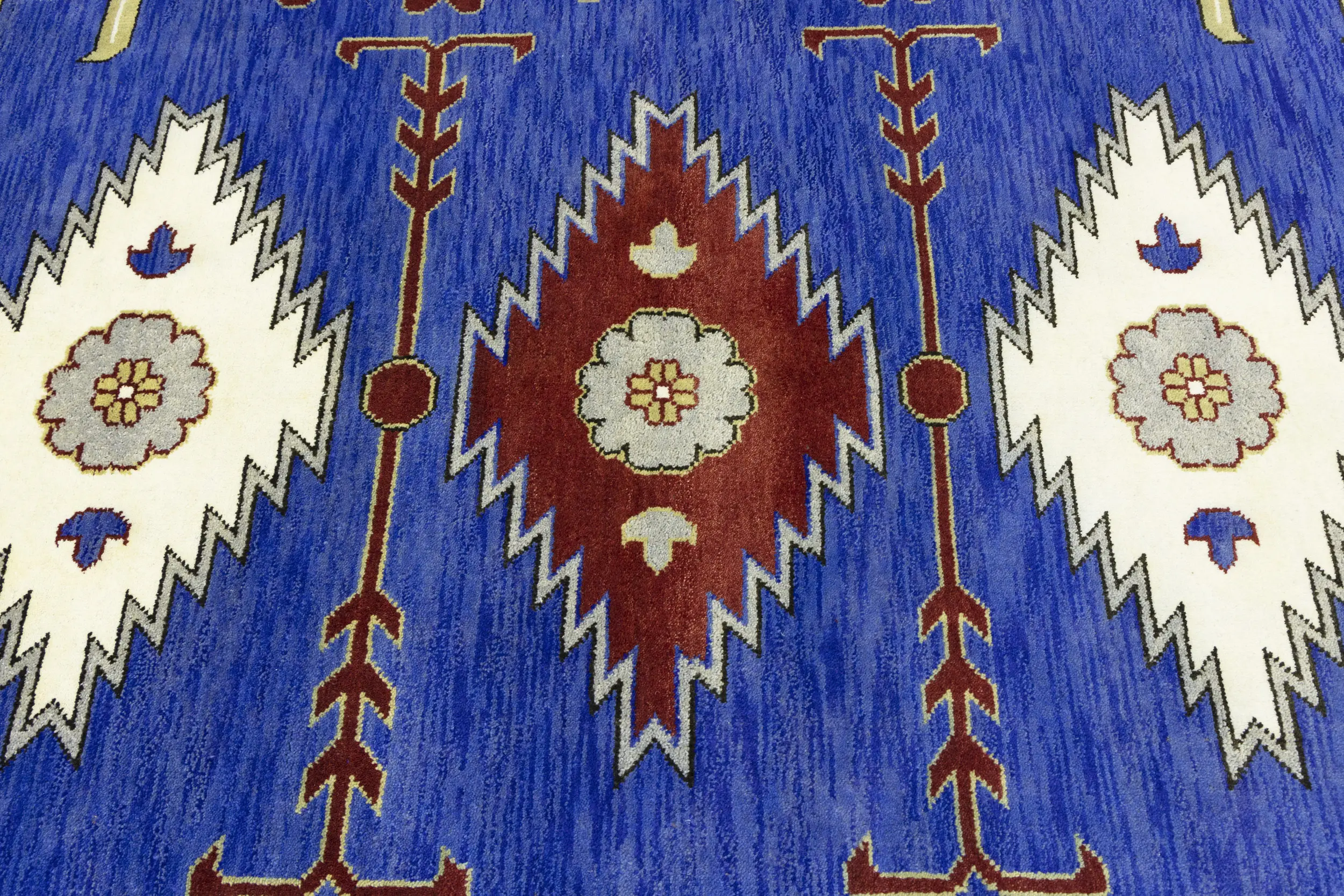 Handmade 9X12 blue oriental rug made with vegetable dyes (fine wool pile and cotton foundation), superior knot count, and appealing ancient designs. This Oriental rug never will go out of style and would be among your most valuable treasures.