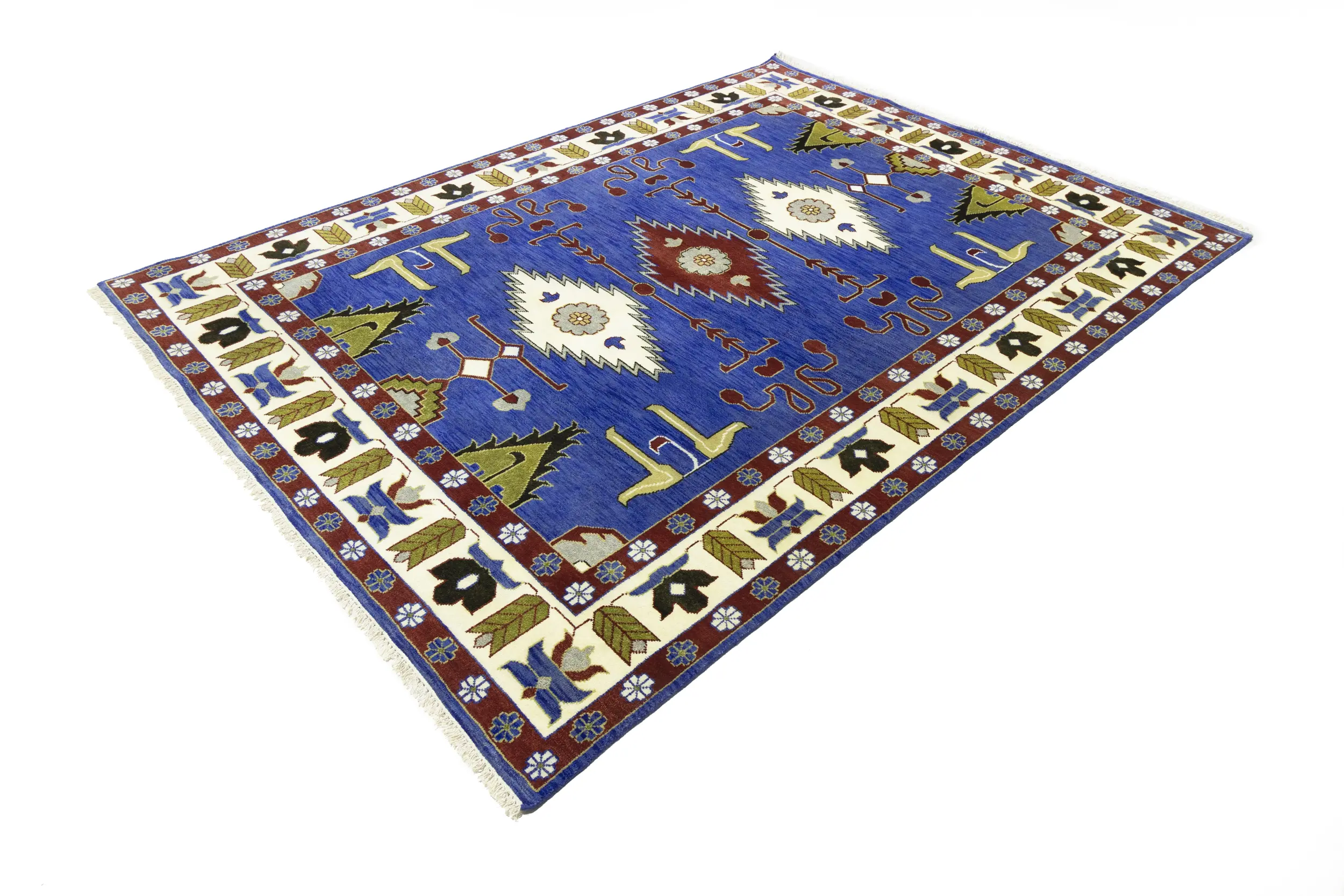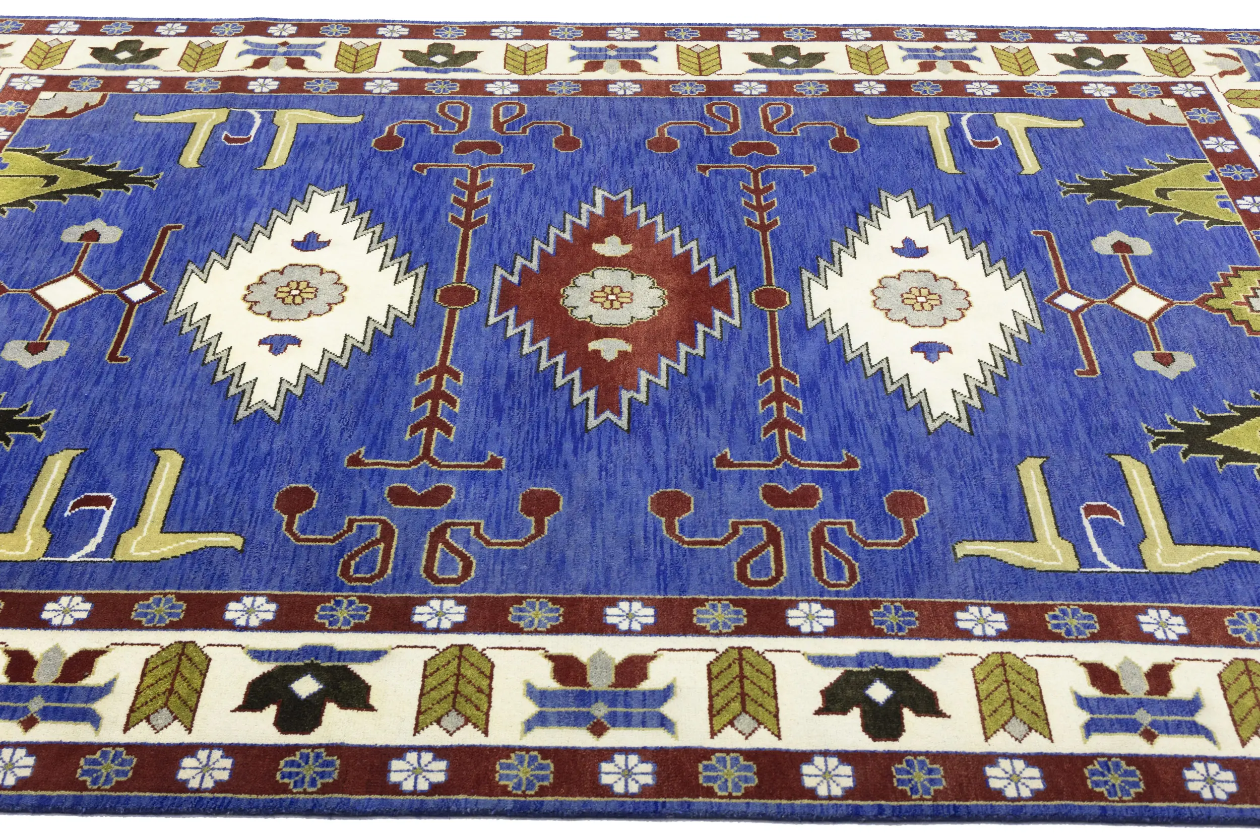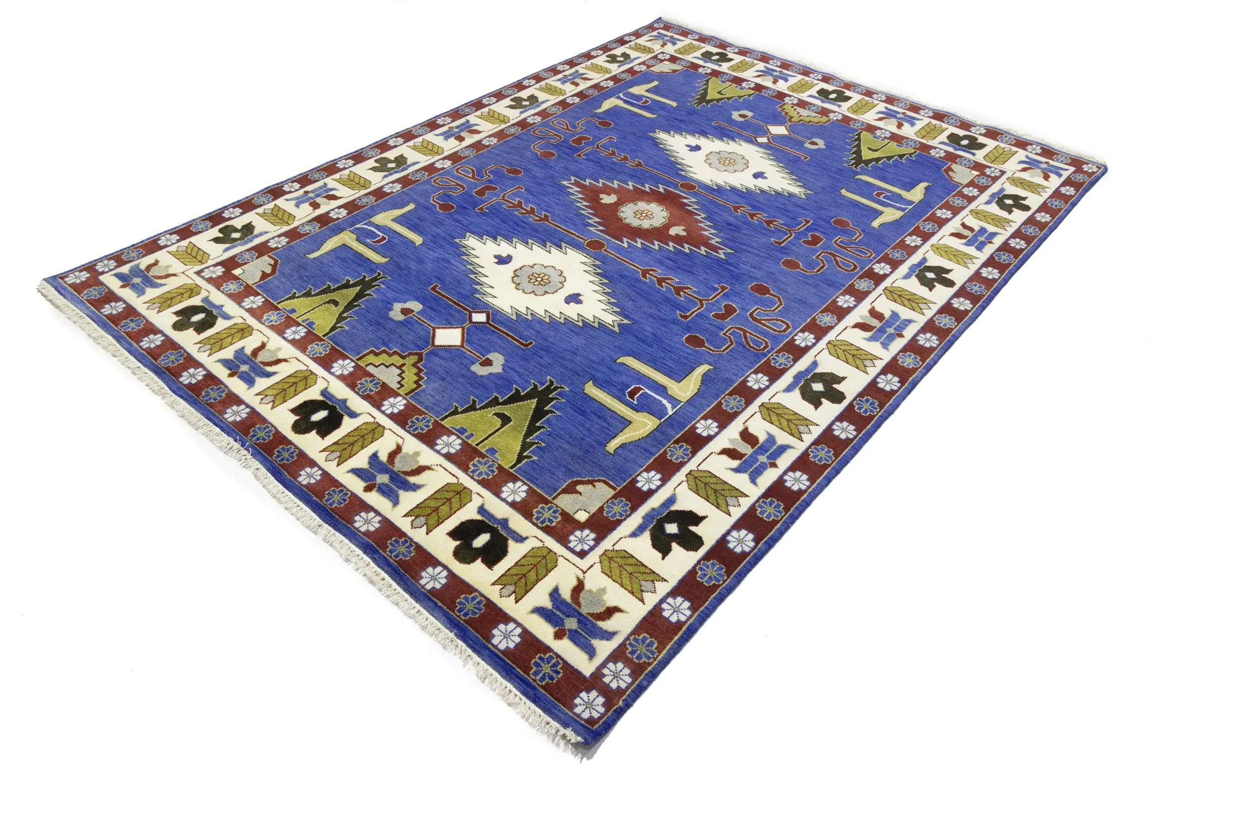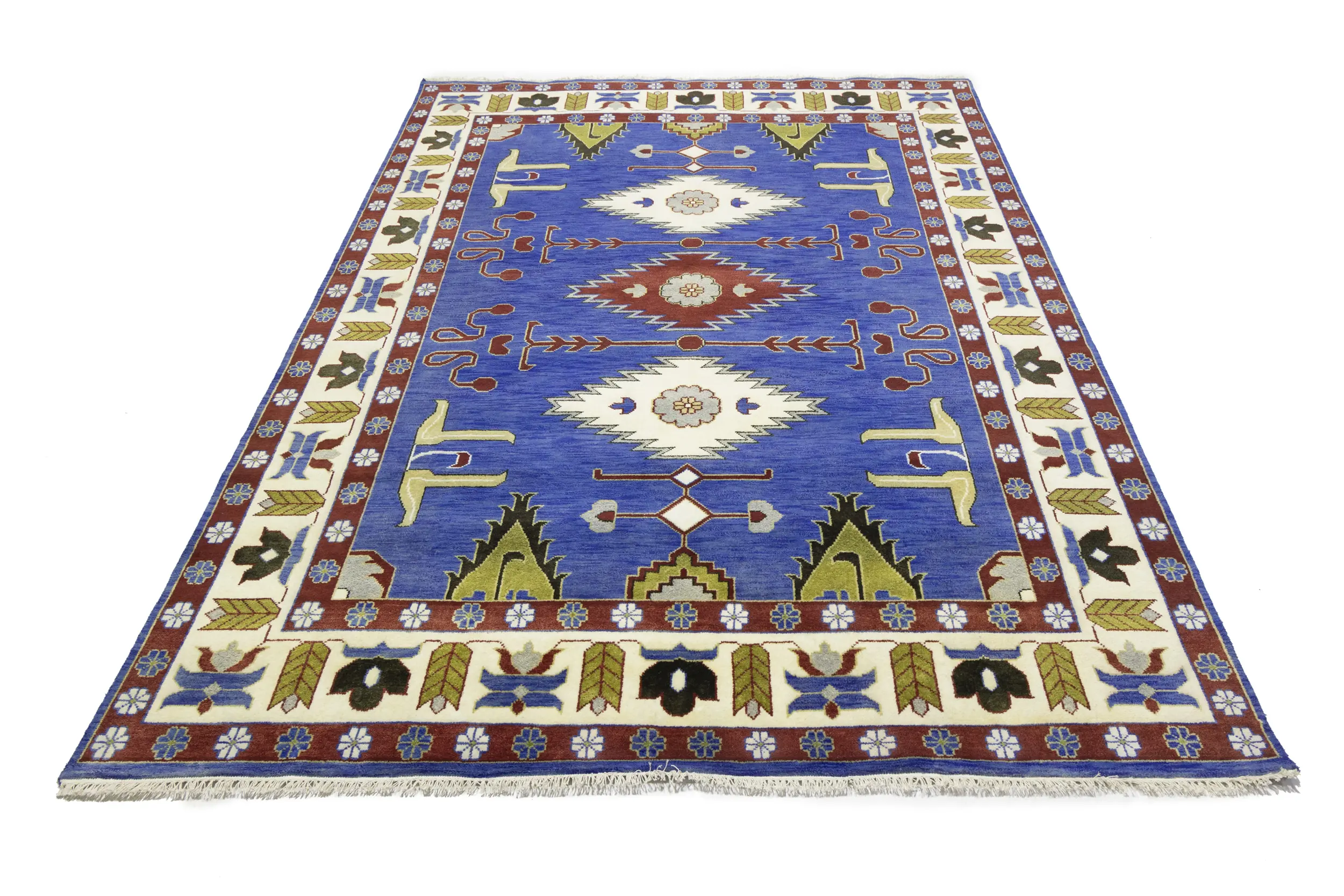 Handmade 9X12 blue oriental rug made with vegetable dyes (fine wool pile and cotton foundation), superior knot count, and appealing ancient designs. This Oriental rug never will go out of style and would be among your most valuable treasures.