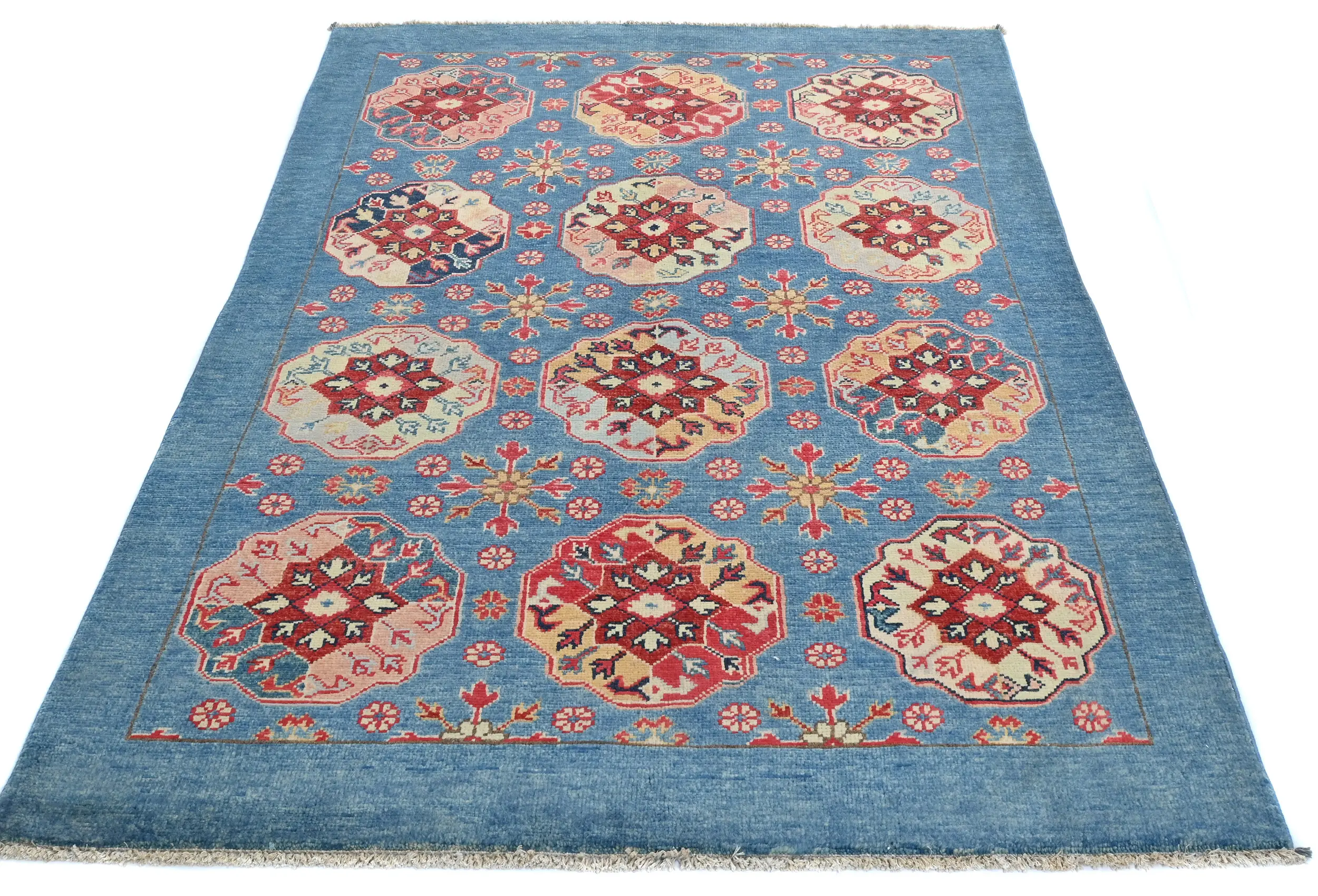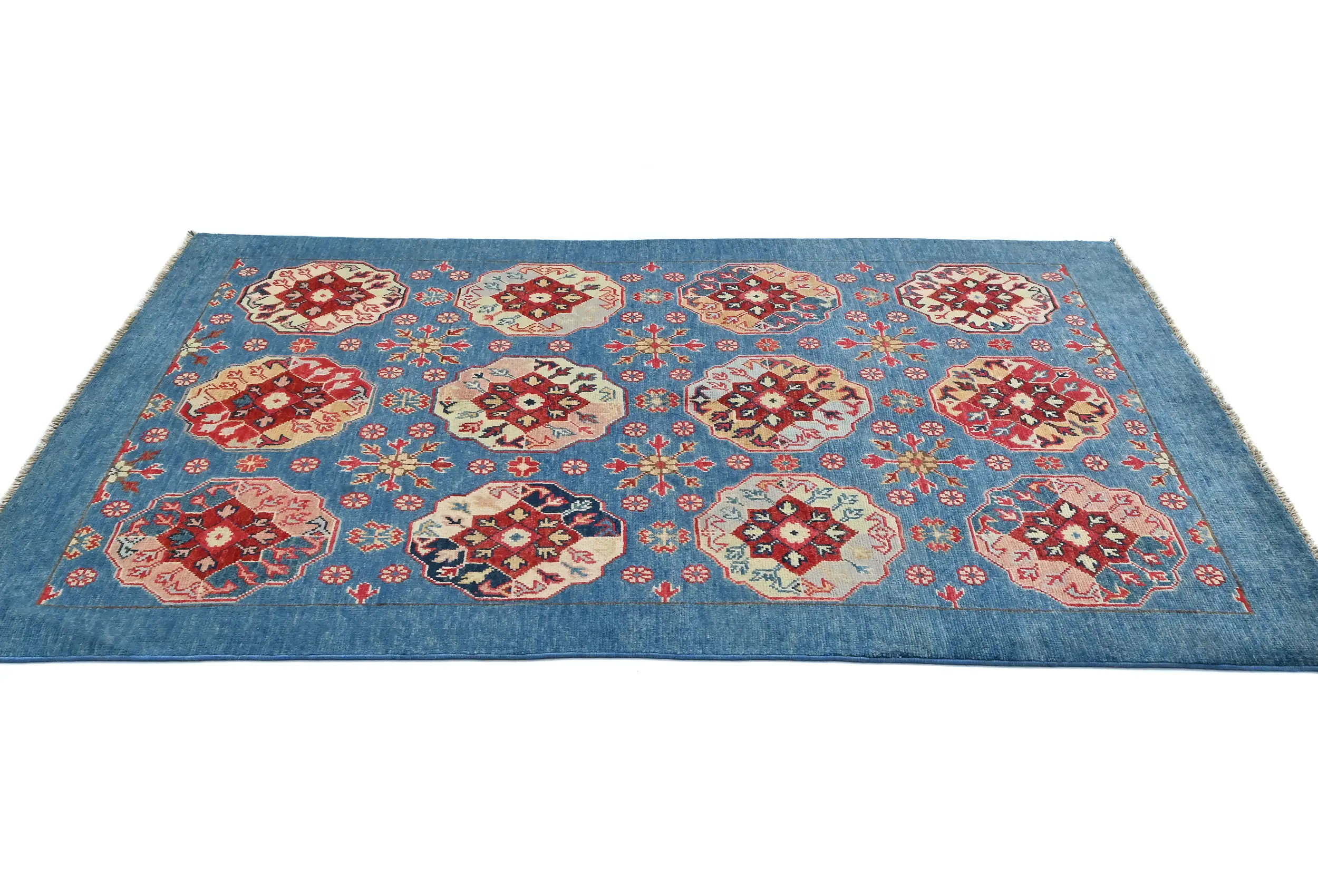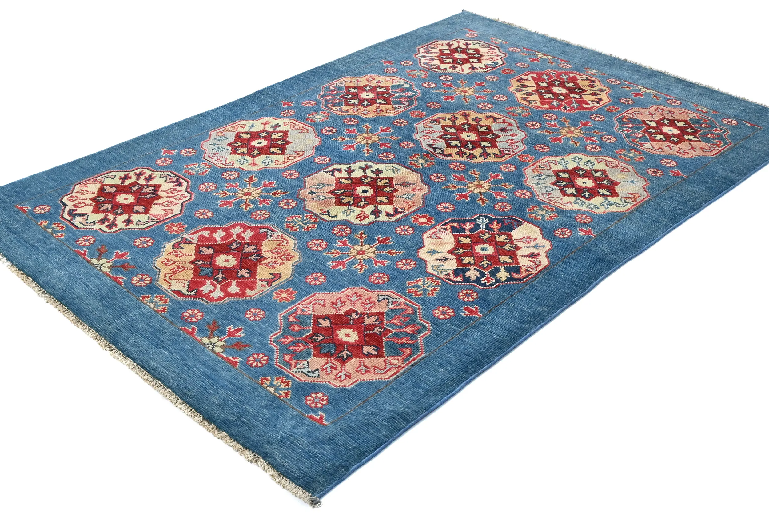 Blue Geometric Modern 4X6 Kazak Pakistan Rug