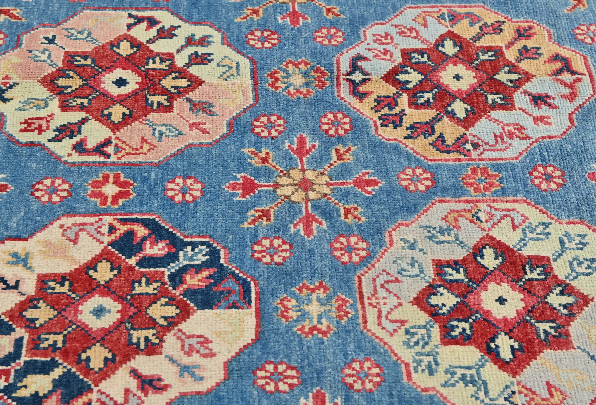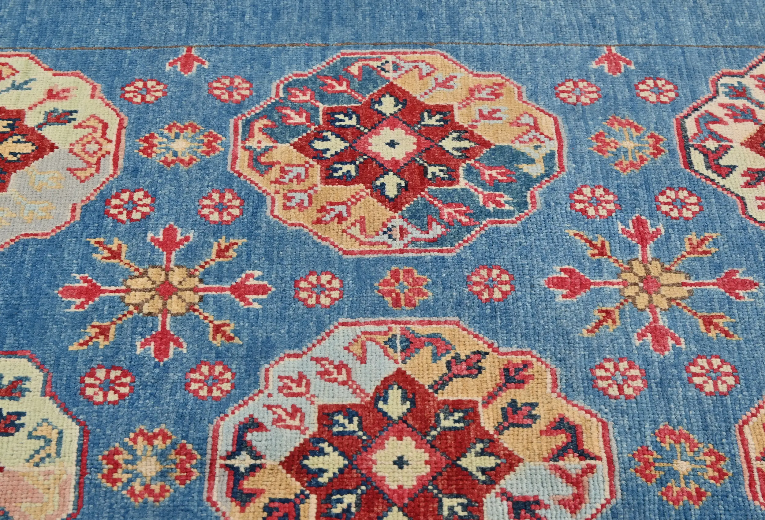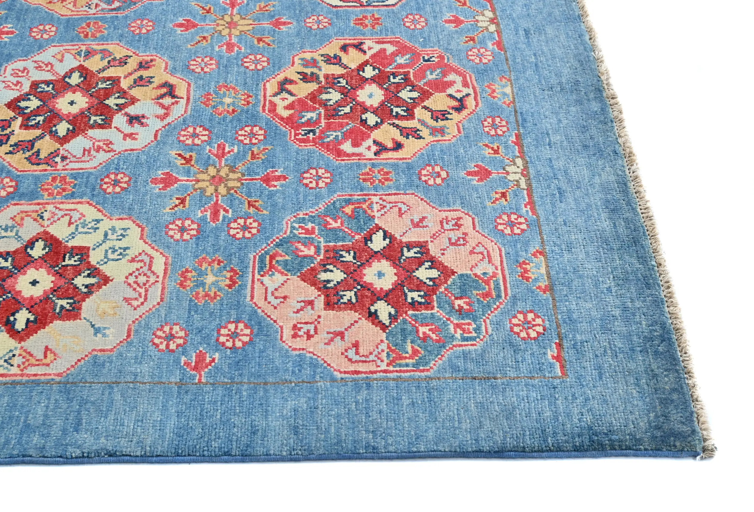 Blue Geometric Modern 4X6 Kazak Pakistan Rug