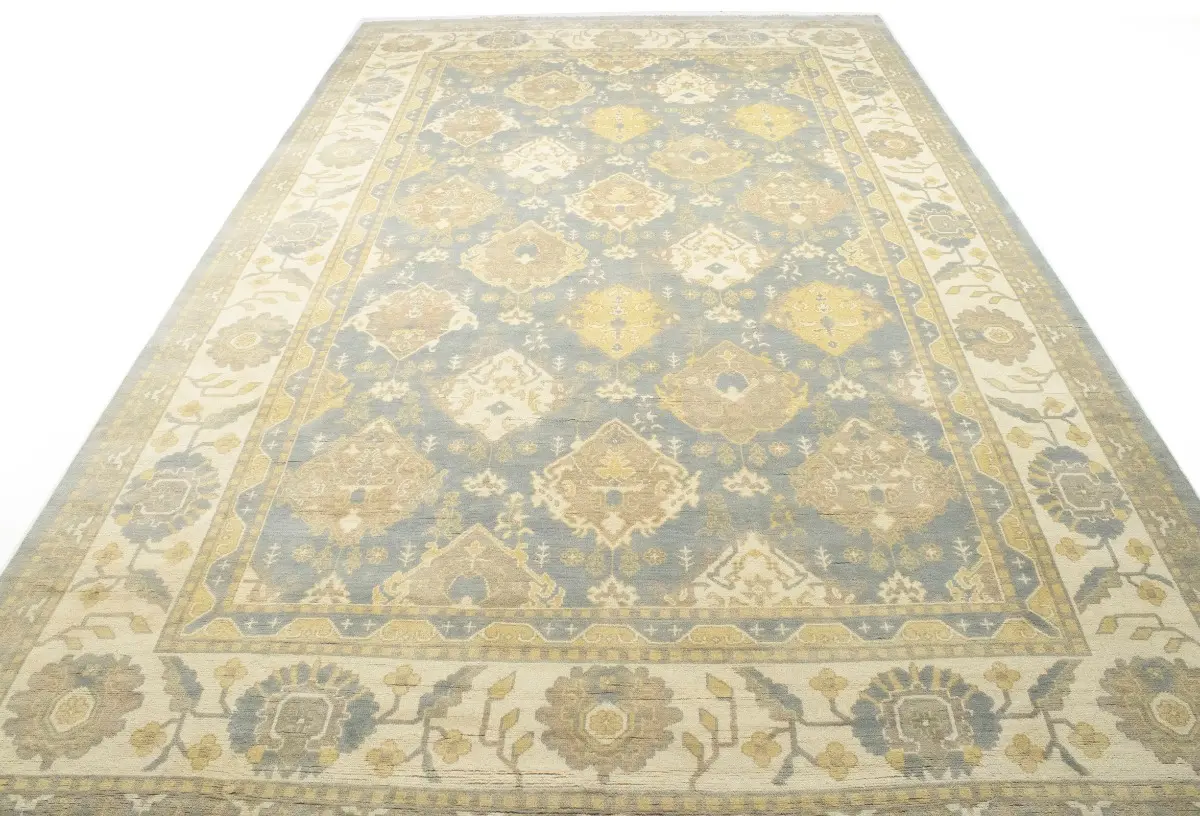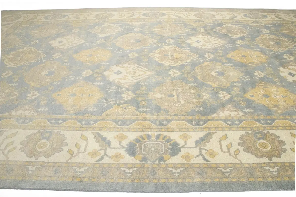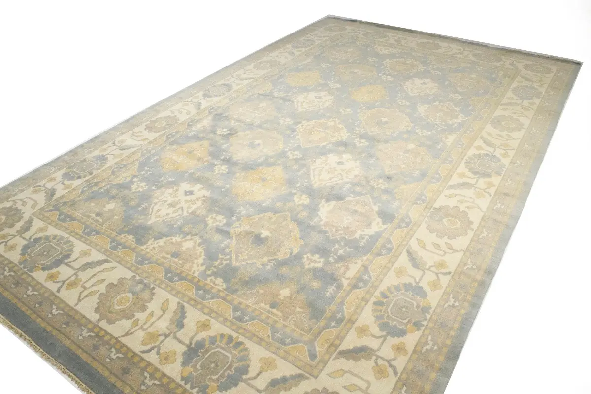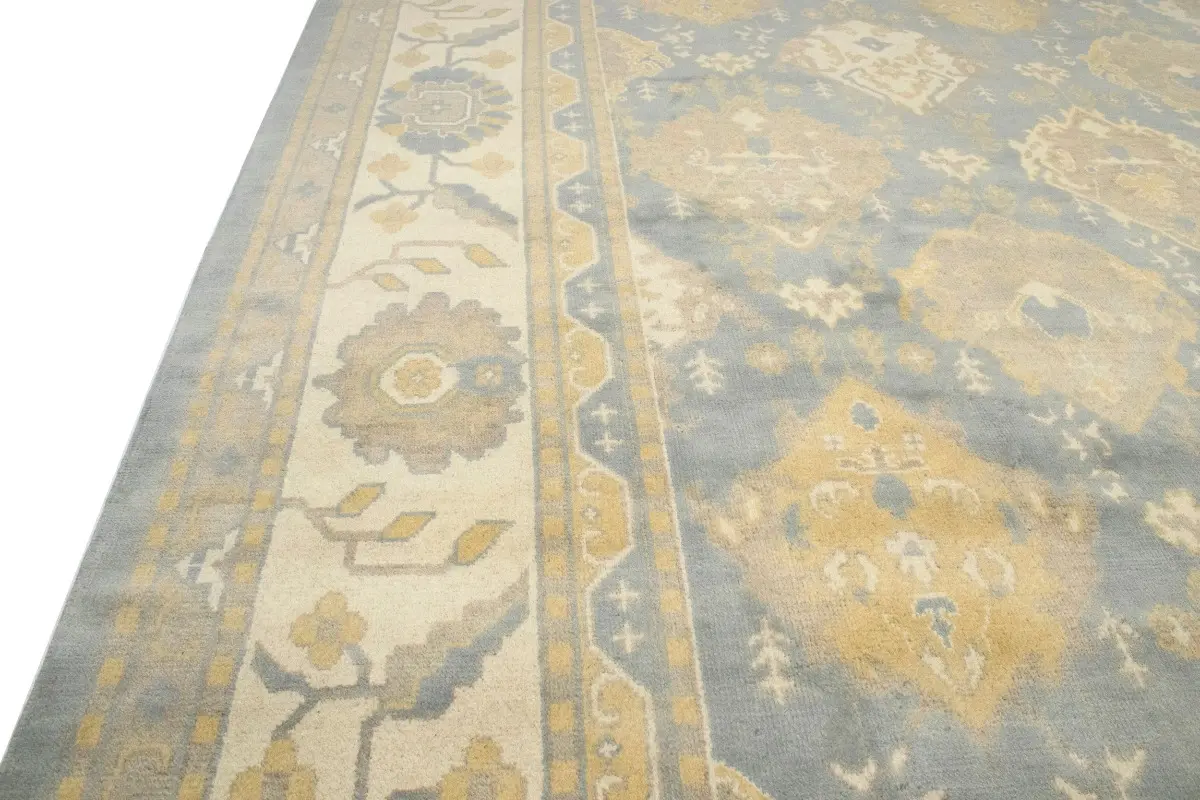 Blue-gray Floral 12X20 Oushak Chobi Oriental Rug