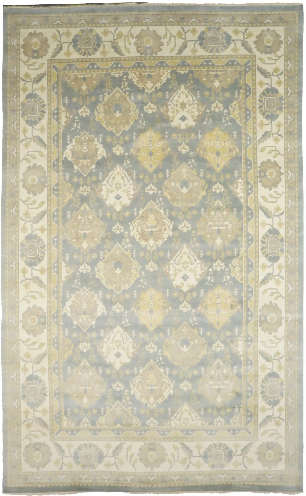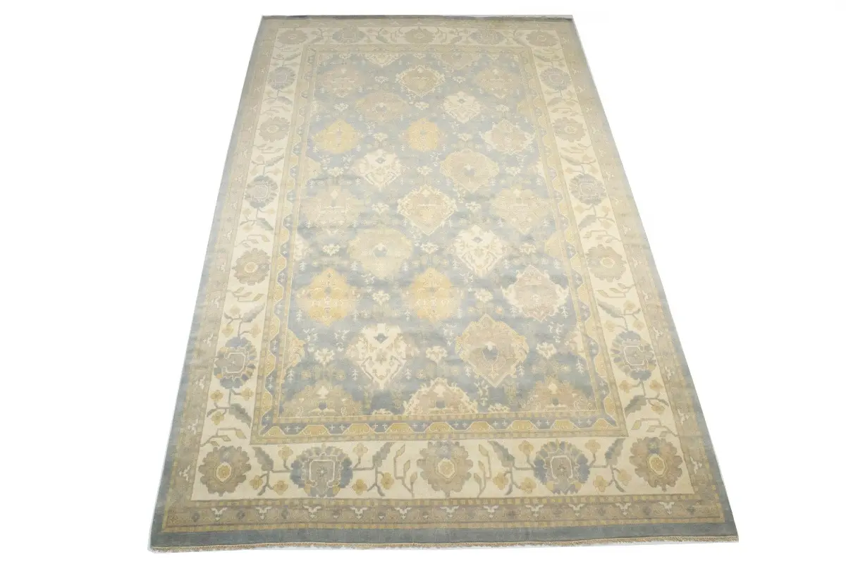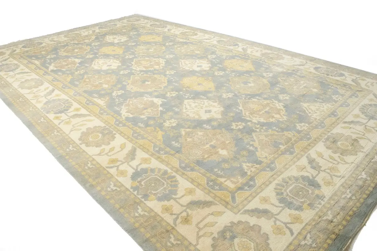 Blue-gray Floral 12X20 Oushak Chobi Oriental Rug