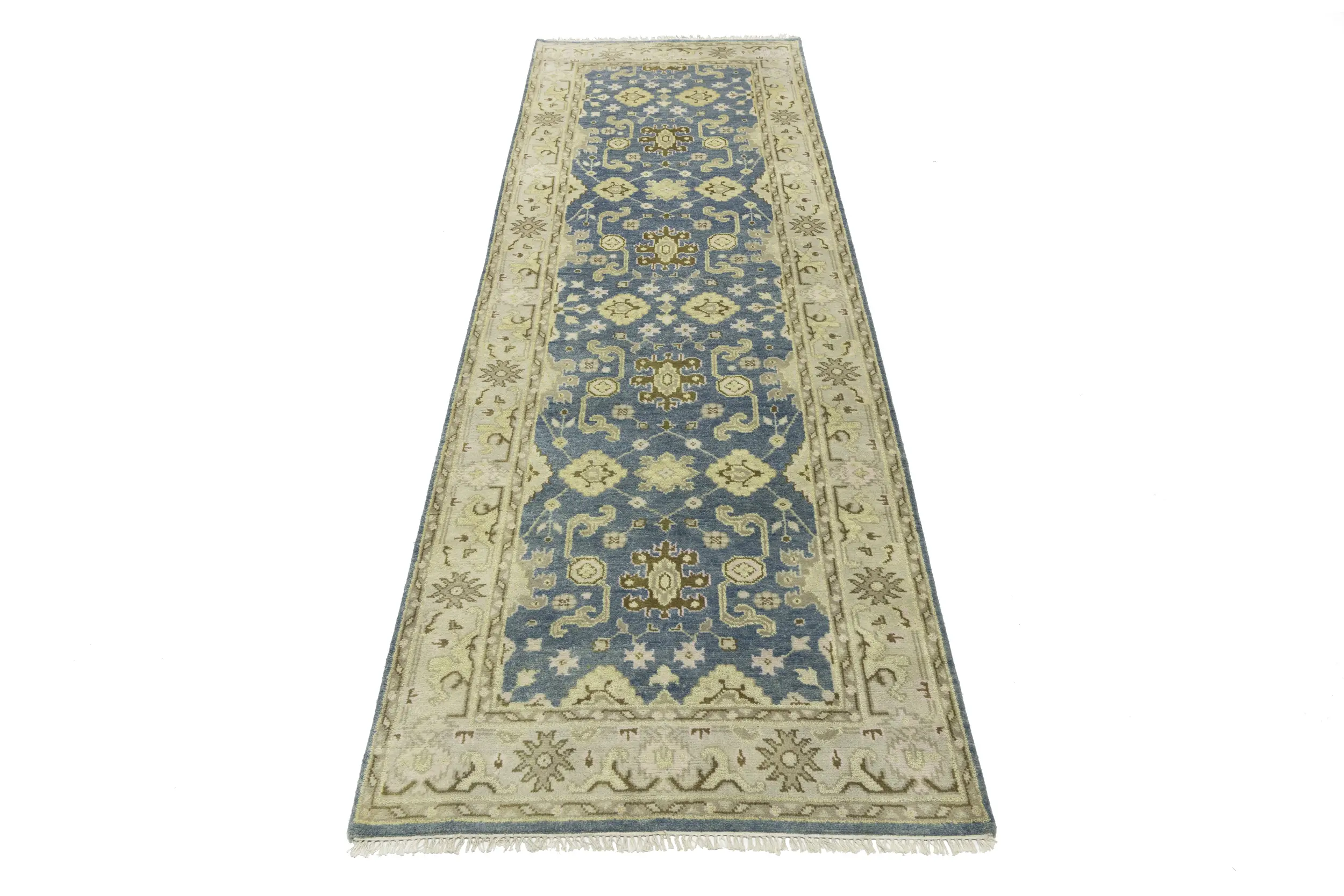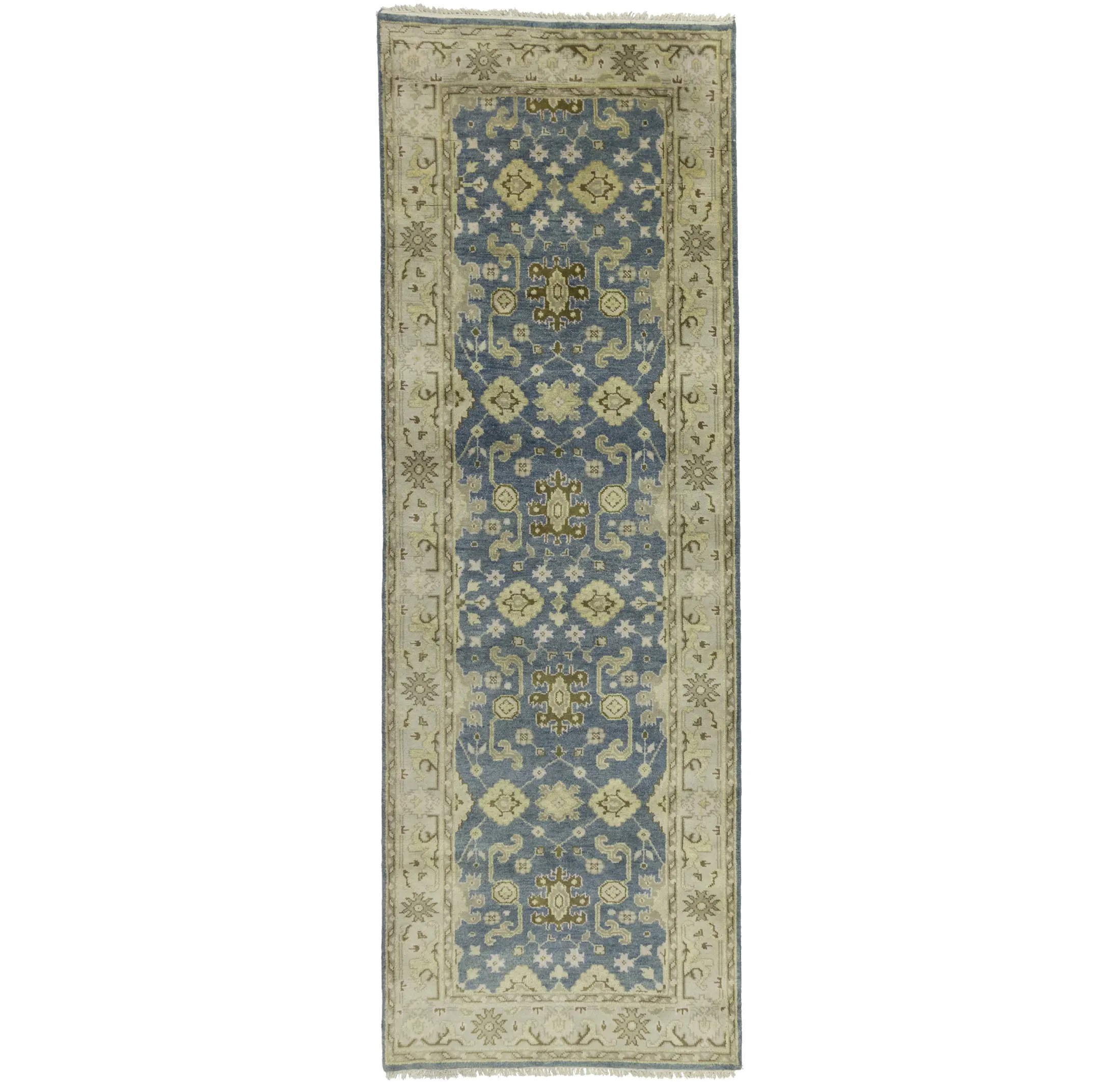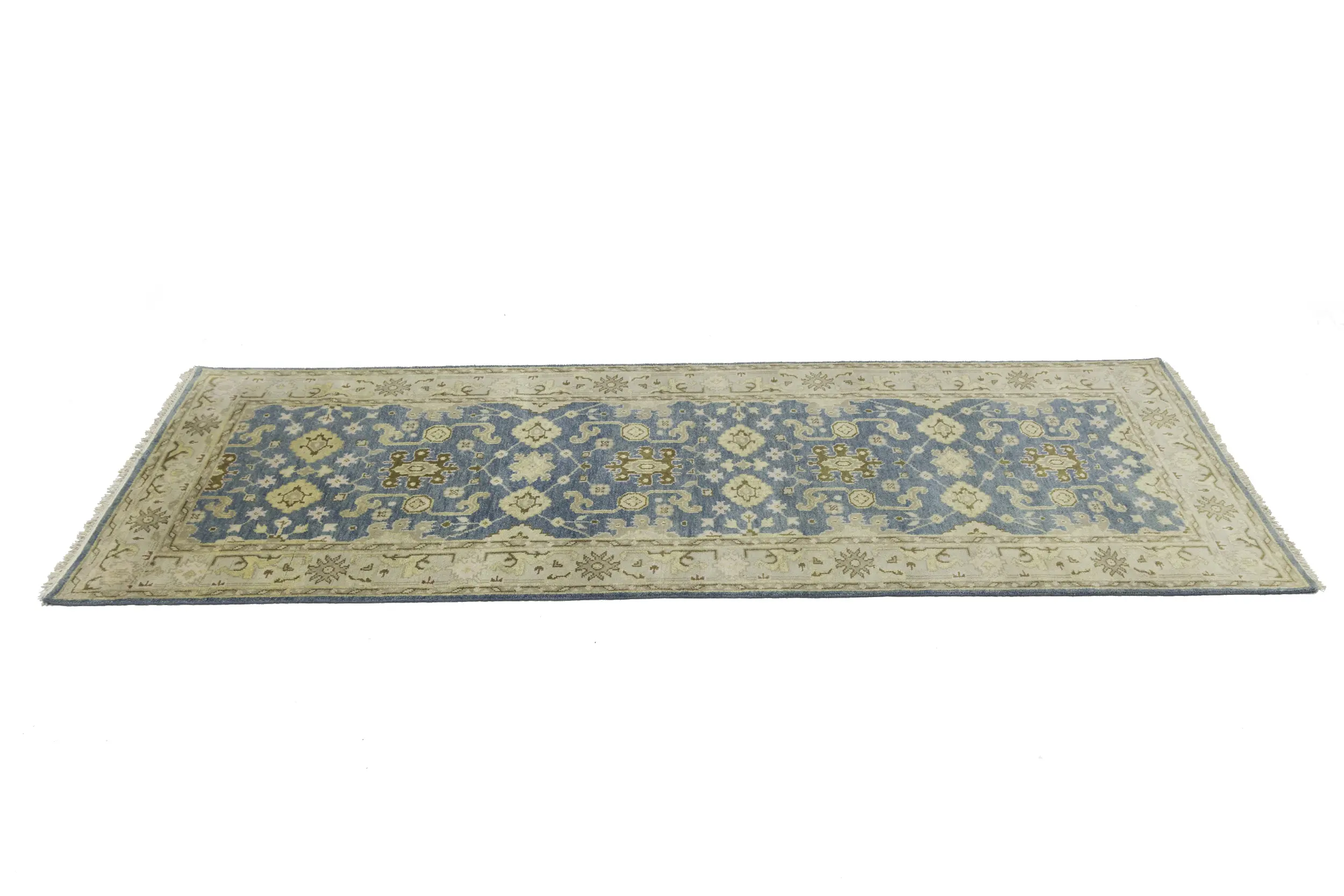 This original 4X12 blue-gray new Oriental runner was finely knotted by the hands of weavers influenced by a variety of amazing artistic designs, to recreate the aged look of the exceptional piece with a richness of color and embellished background field. What set this vintage style Oriental area runner from the others are the material and dye used (wool pile and cotton foundation), knot count, antique designs, fantastic grades, and its regional historical connection: it has deep roots, from the story of the people who produced it to the meaning of the symbols and colors displayed across its canvas that have been praised for centuries. This Indian home décor carpet will be completely cozy and inviting that never will go out of style! Also, this Oriental runner would be among your most valuable treasures, it is a great investment that increase in value over time, and it will last a lifetime because was woven with high-quality, all-natural wool. Eco-friendly, opulent yet affordable; this rug will give you an extra pop of character to help define your home environment with luxury and warmth that will capture the eyes and attention of your audience (homeowners, designers, decorators, family and friends).