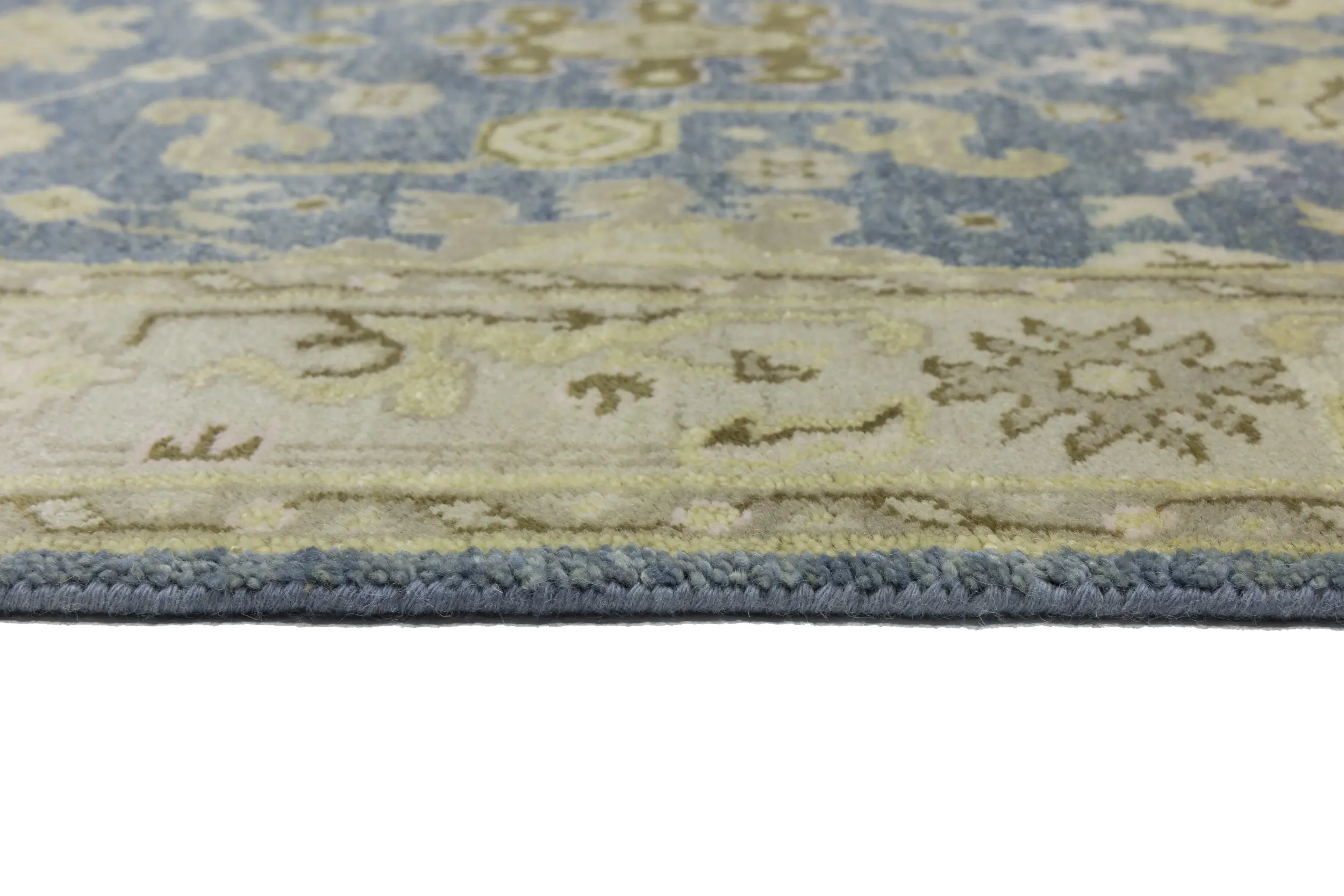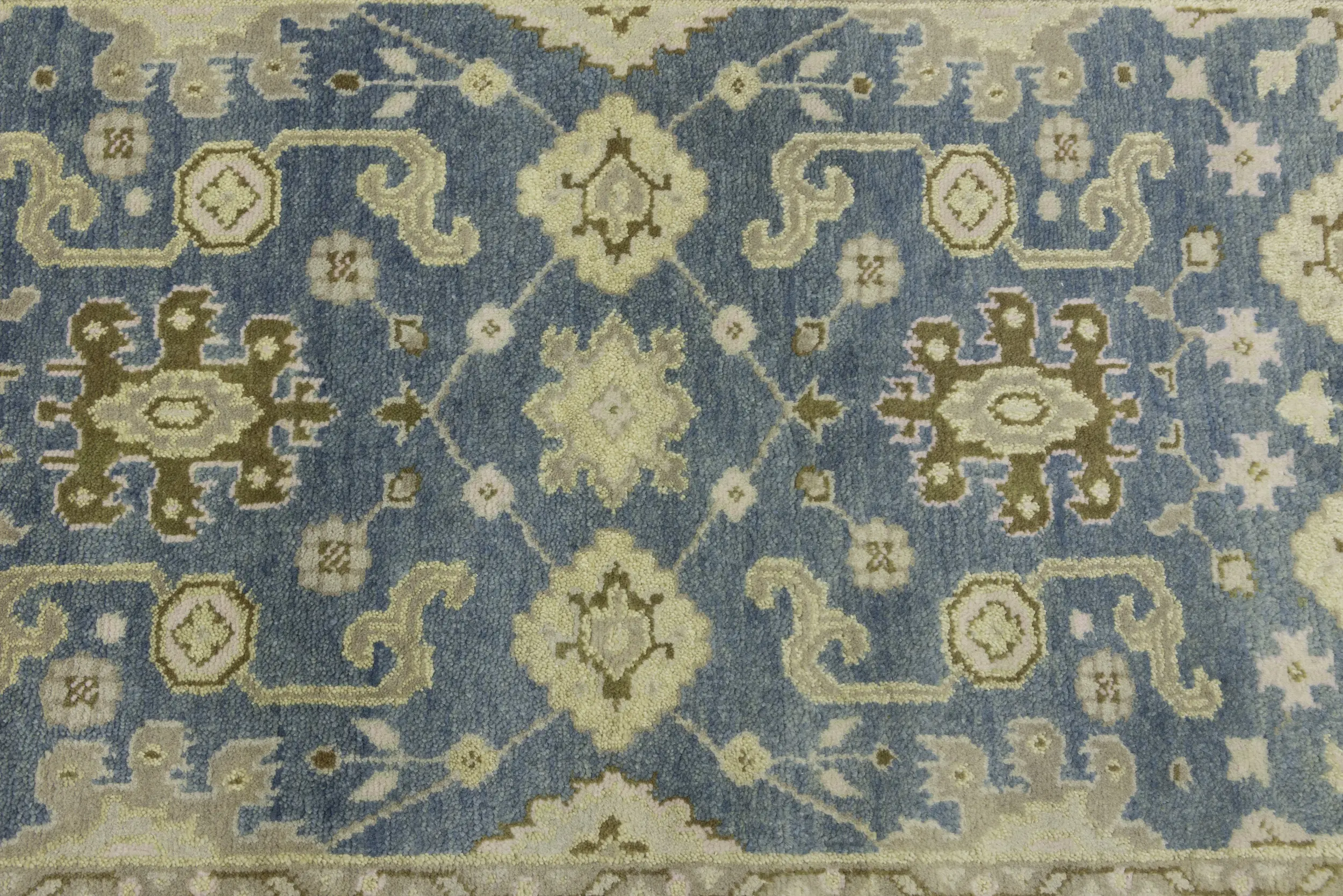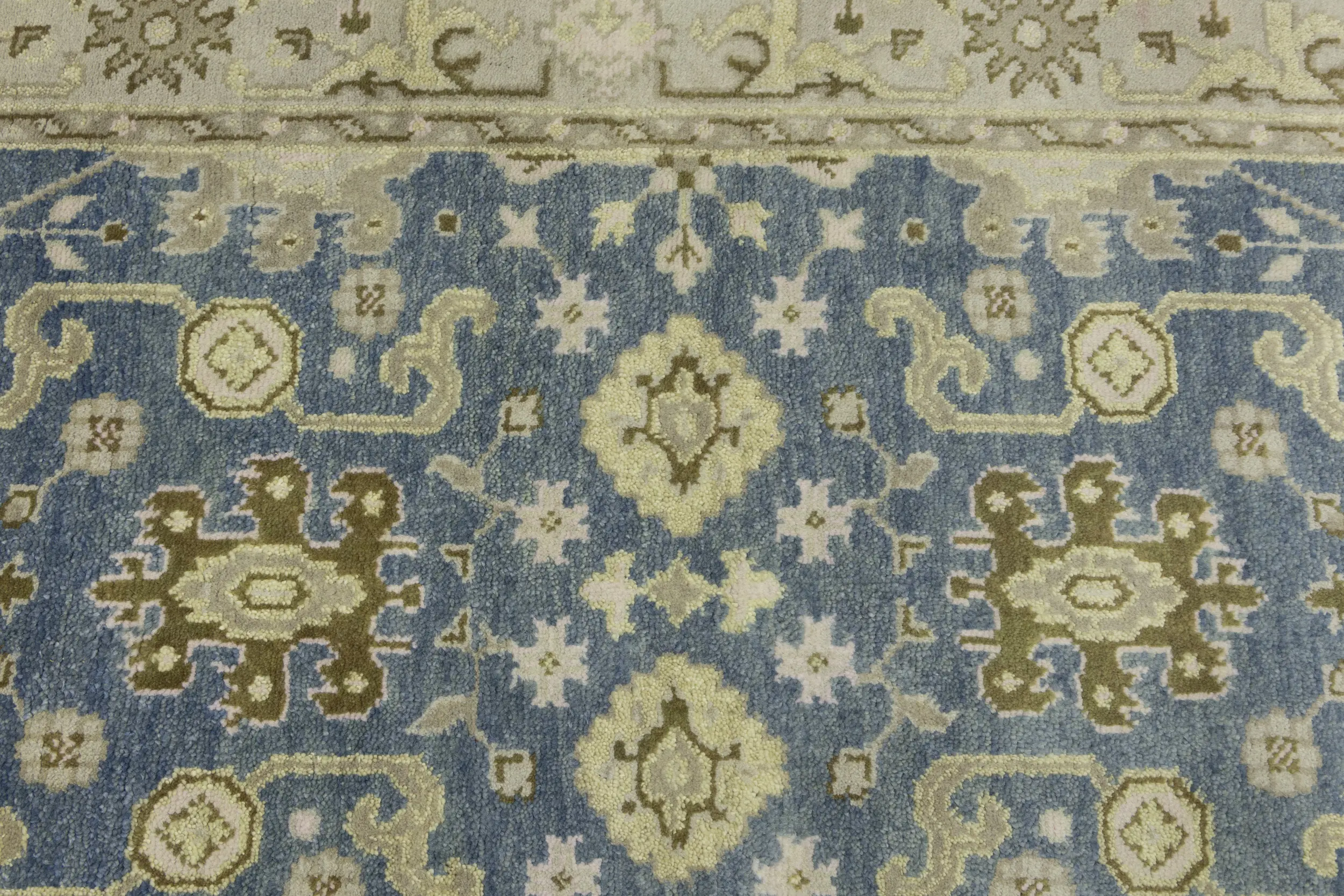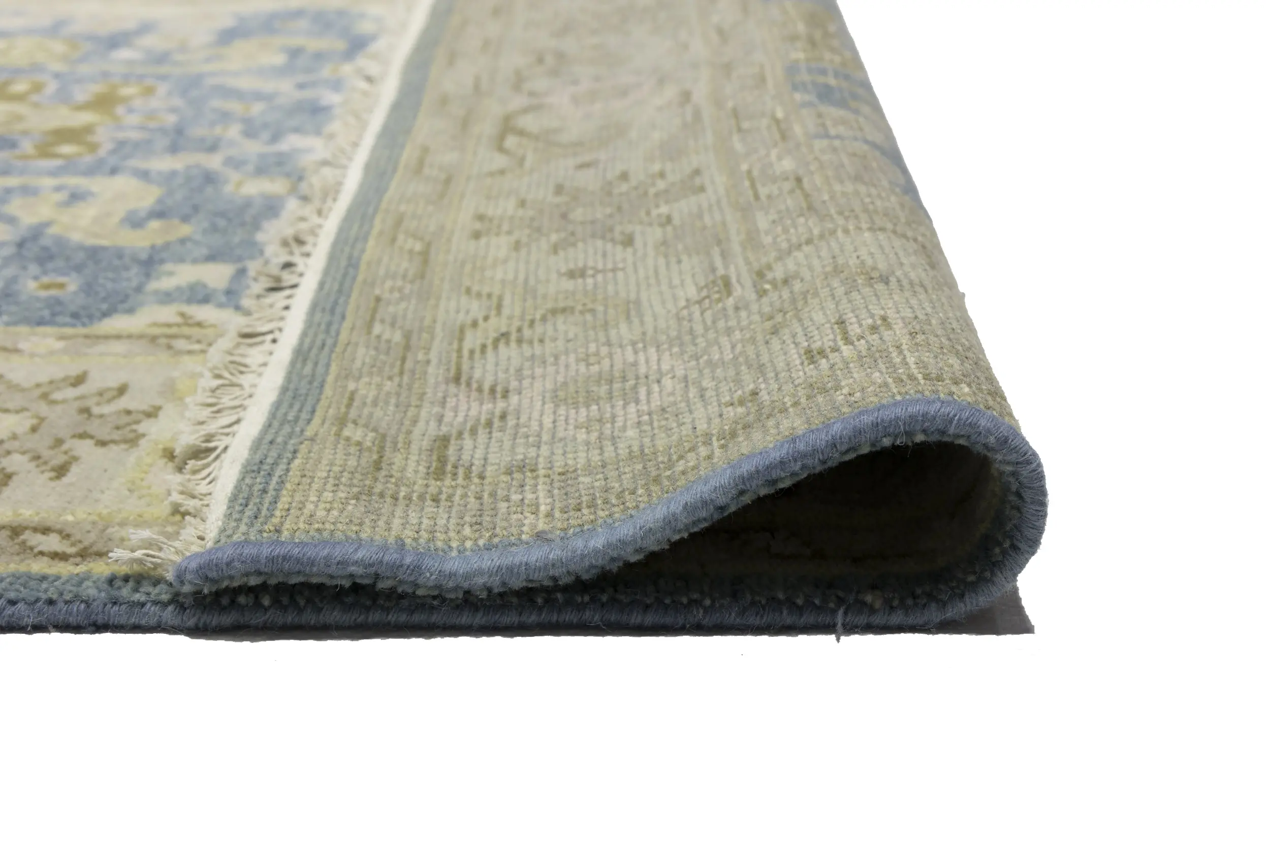 This original 4X12 blue-gray new Oriental runner was finely knotted by the hands of weavers influenced by a variety of amazing artistic designs, to recreate the aged look of the exceptional piece with a richness of color and embellished background field. What set this vintage style Oriental area runner from the others are the material and dye used (wool pile and cotton foundation), knot count, antique designs, fantastic grades, and its regional historical connection: it has deep roots, from the story of the people who produced it to the meaning of the symbols and colors displayed across its canvas that have been praised for centuries. This Indian home décor carpet will be completely cozy and inviting that never will go out of style! Also, this Oriental runner would be among your most valuable treasures, it is a great investment that increase in value over time, and it will last a lifetime because was woven with high-quality, all-natural wool. Eco-friendly, opulent yet affordable; this rug will give you an extra pop of character to help define your home environment with luxury and warmth that will capture the eyes and attention of your audience (homeowners, designers, decorators, family and friends).