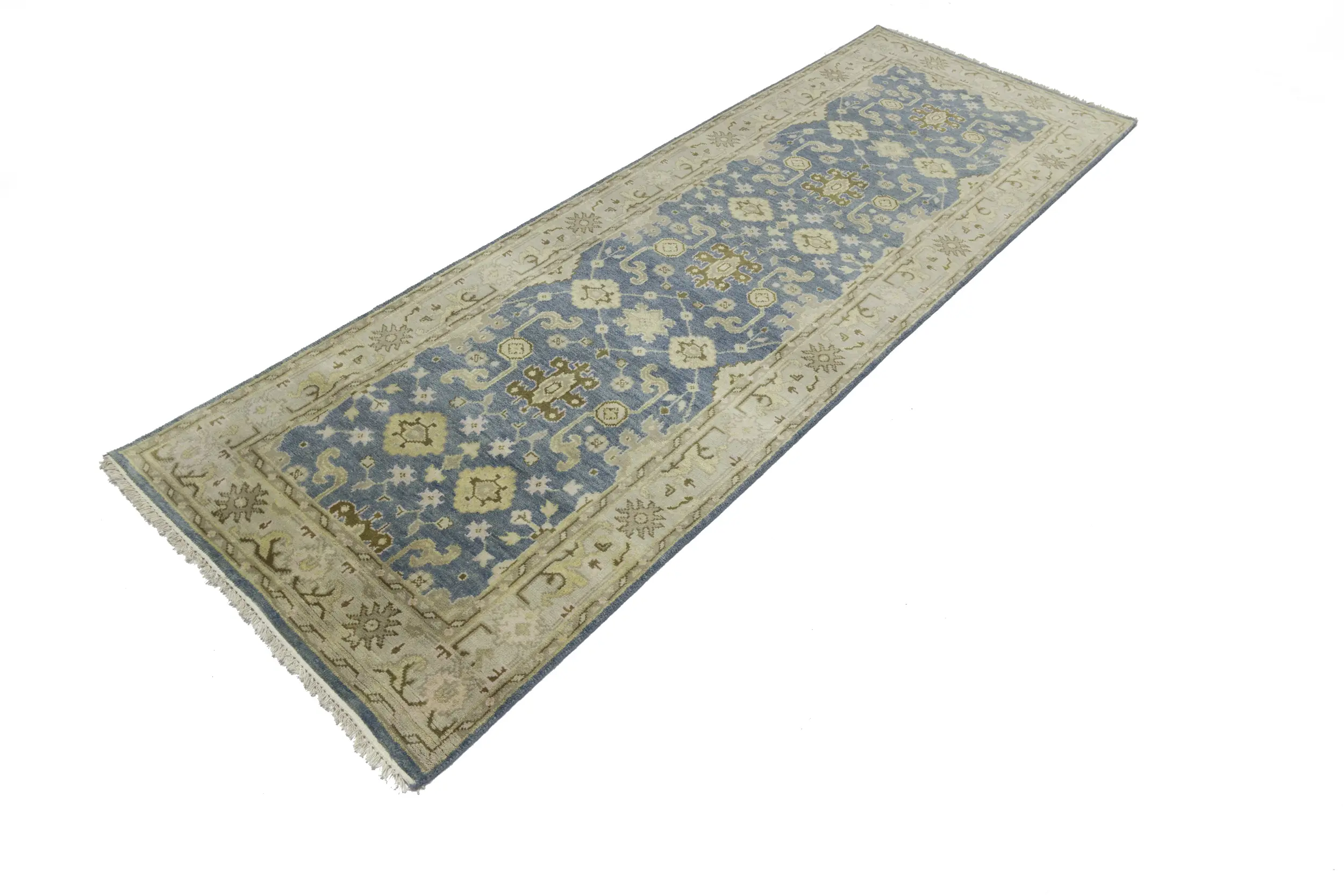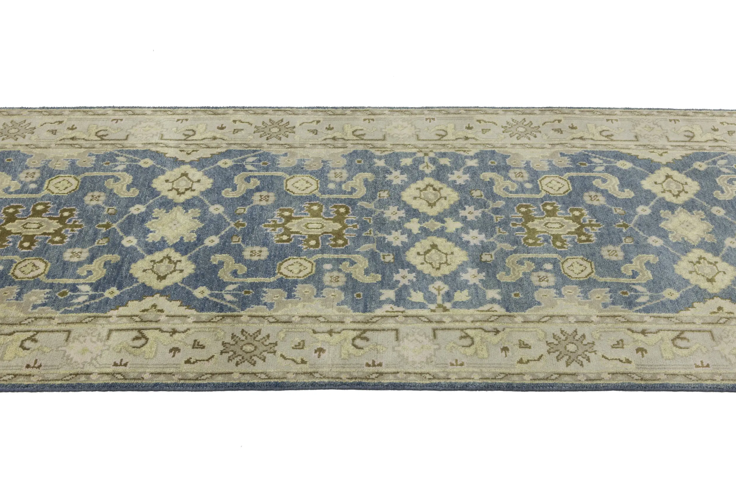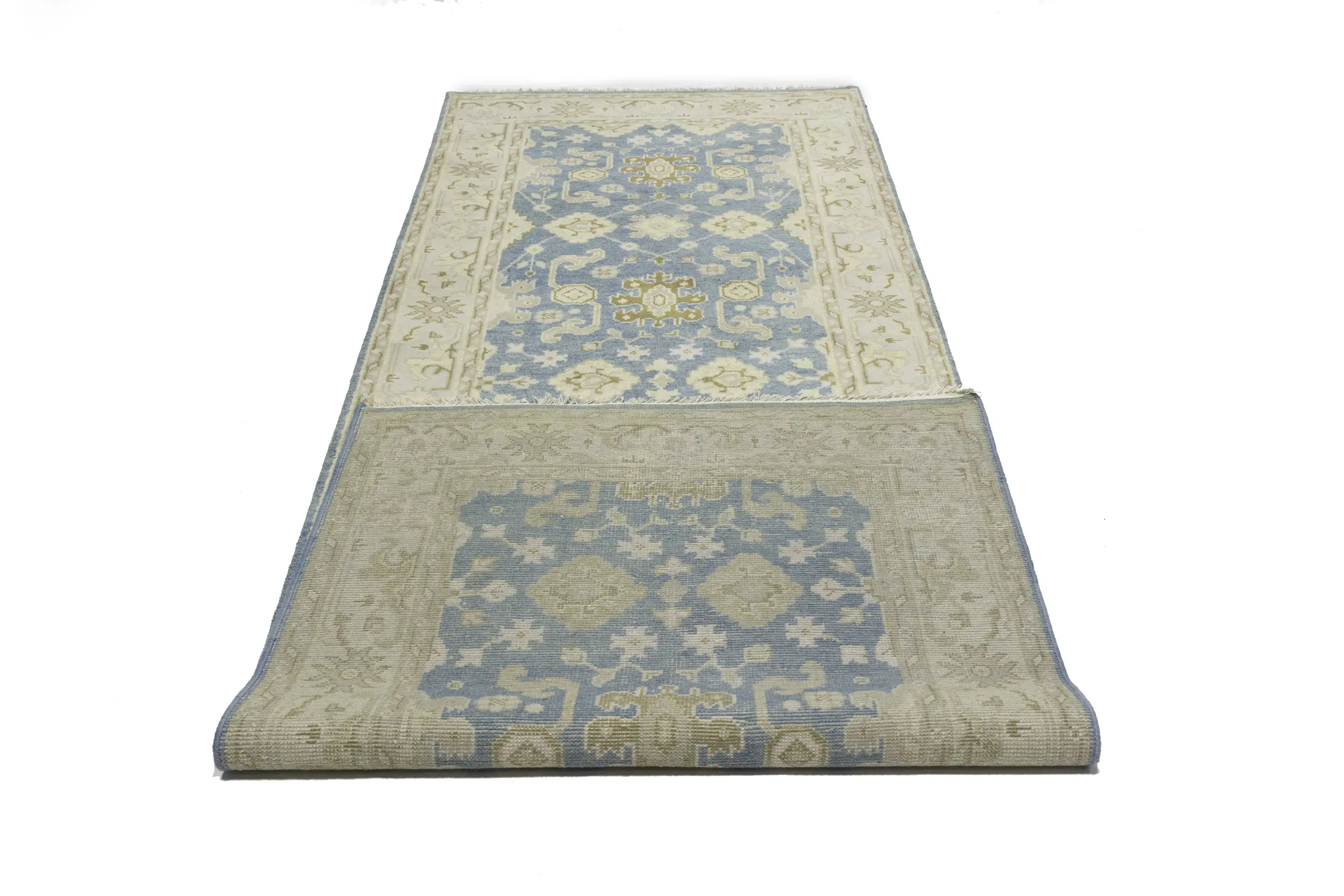 Blue-gray Floral 4X12 Oushak Chobi Oriental Runner Rug