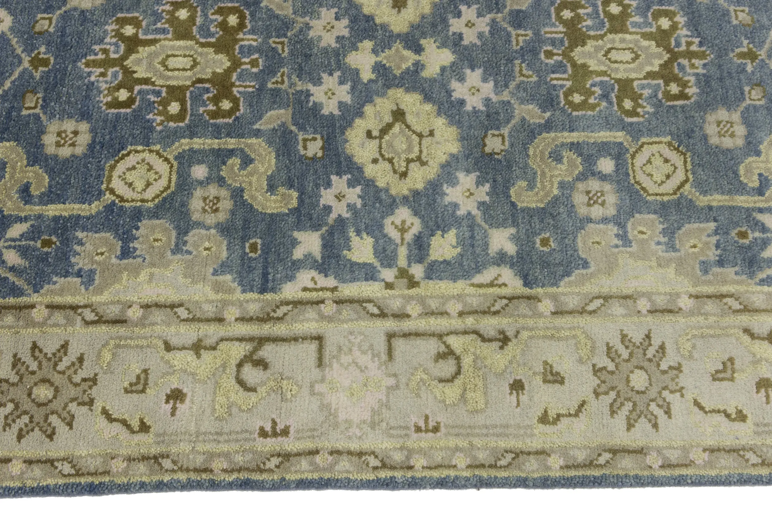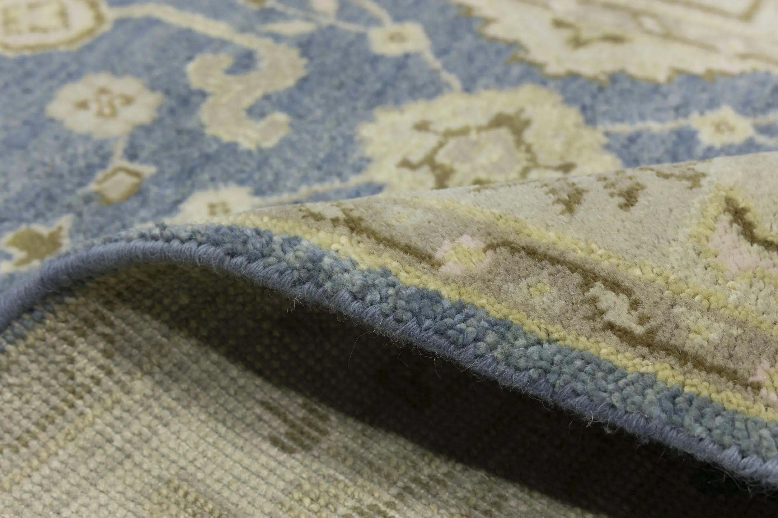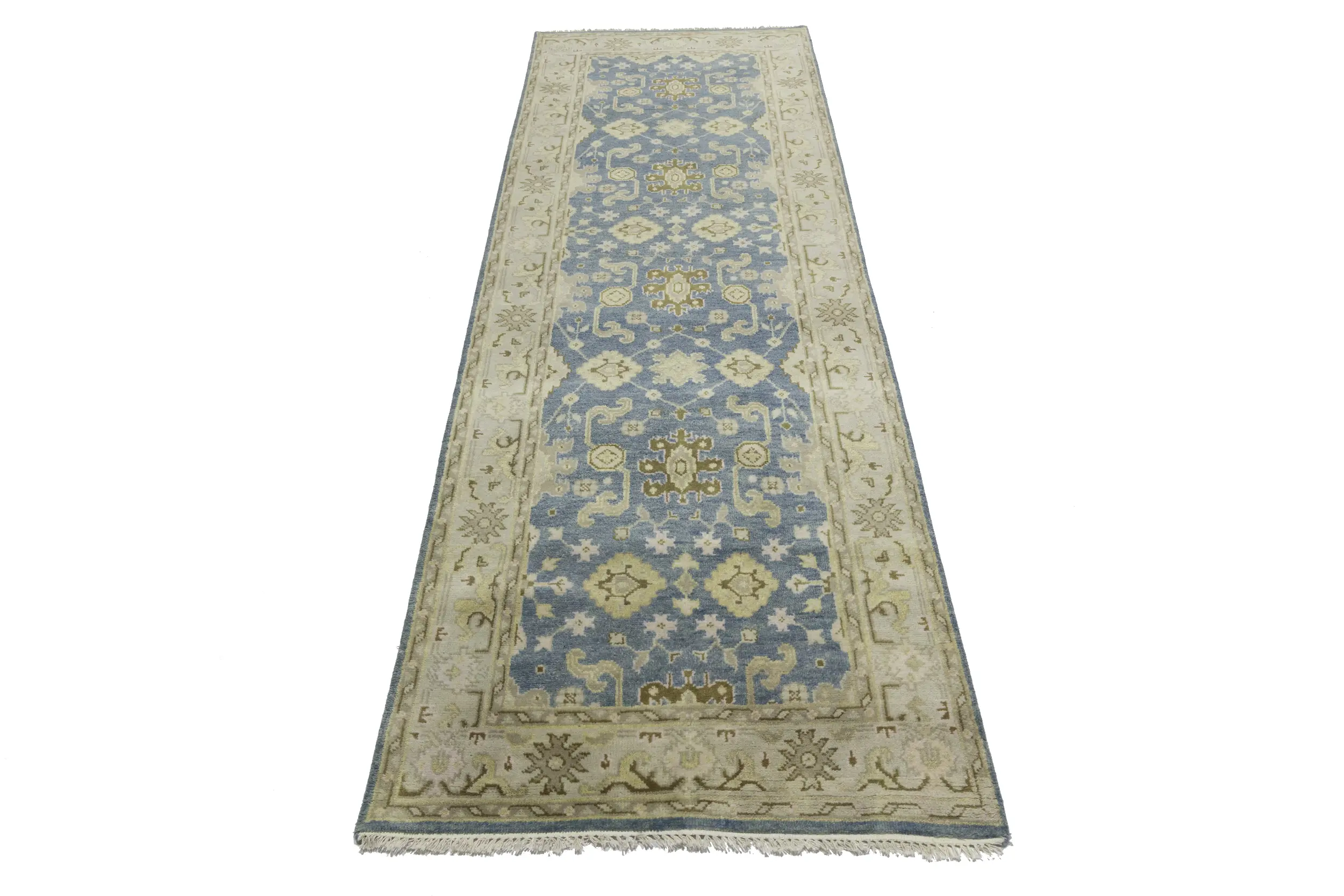 Blue-gray Floral 4X12 Oushak Chobi Oriental Runner Rug