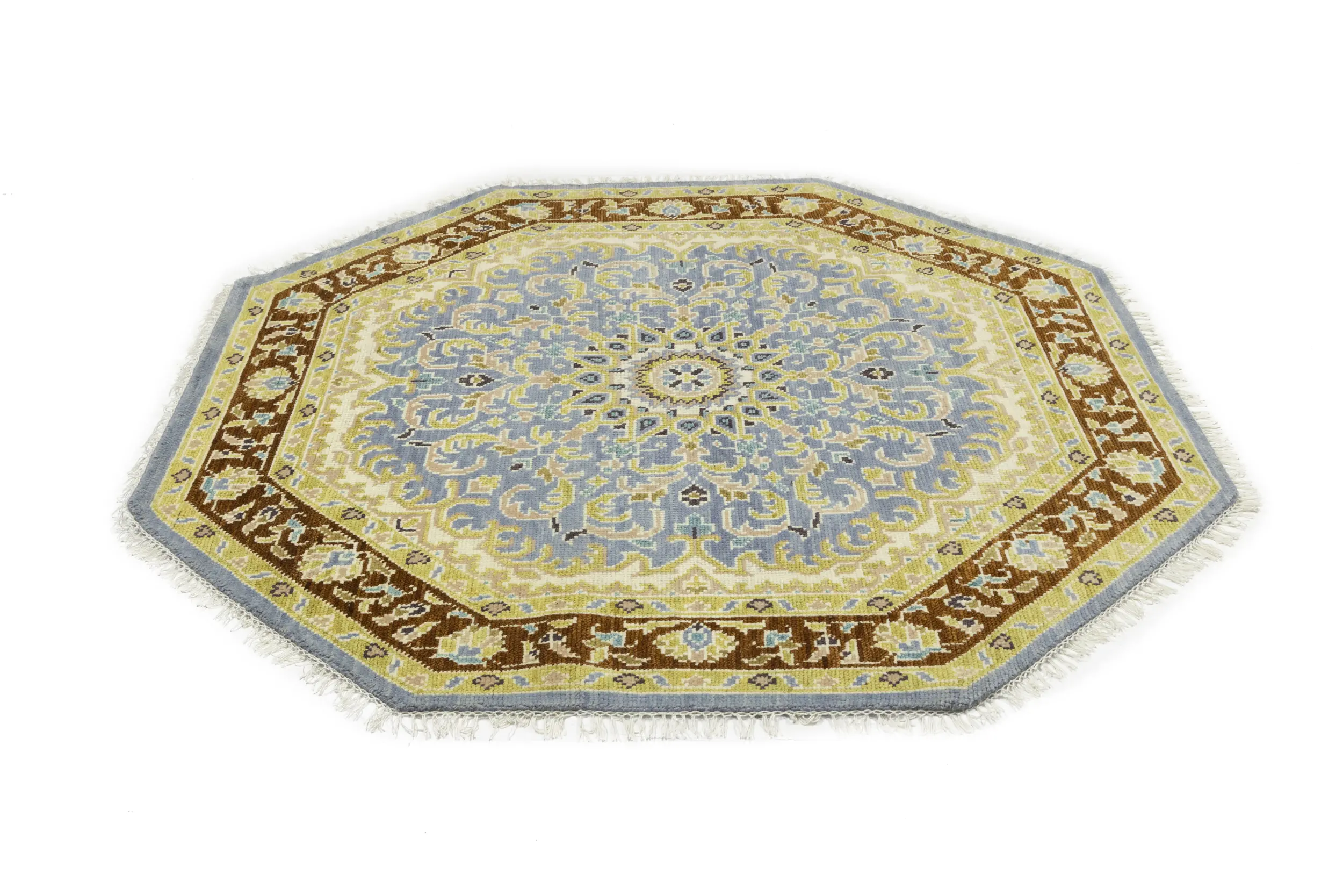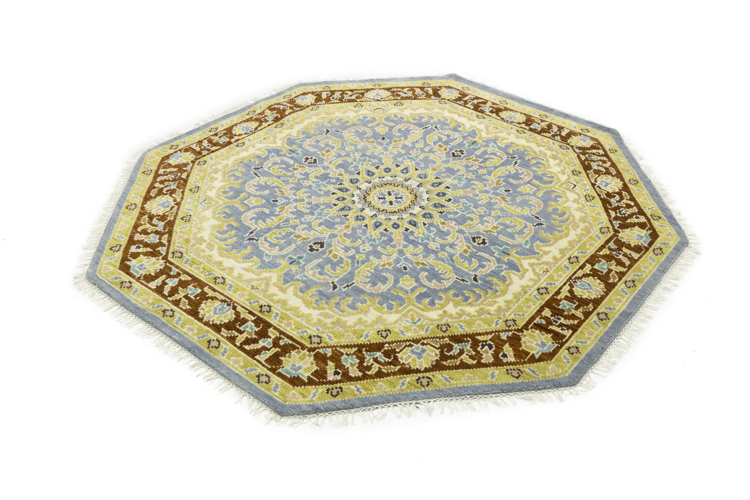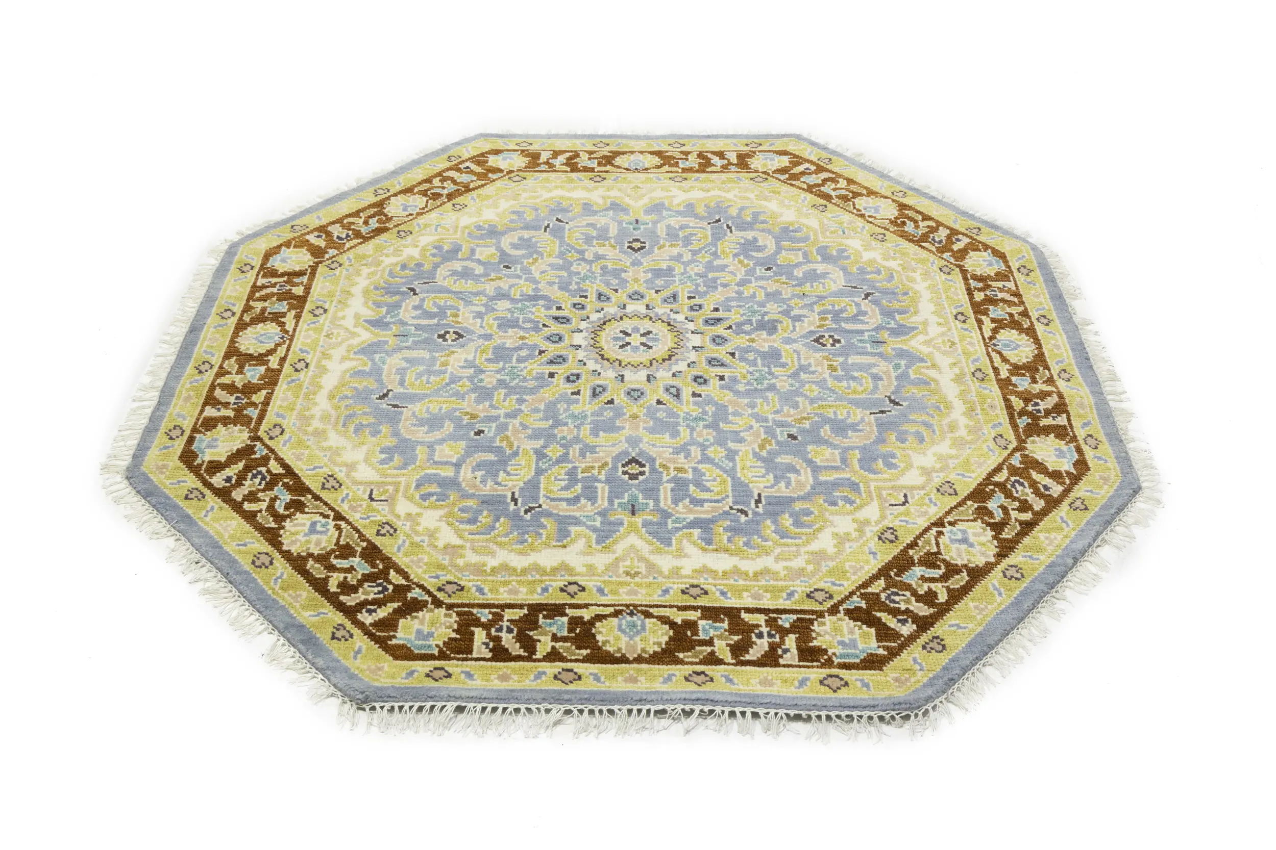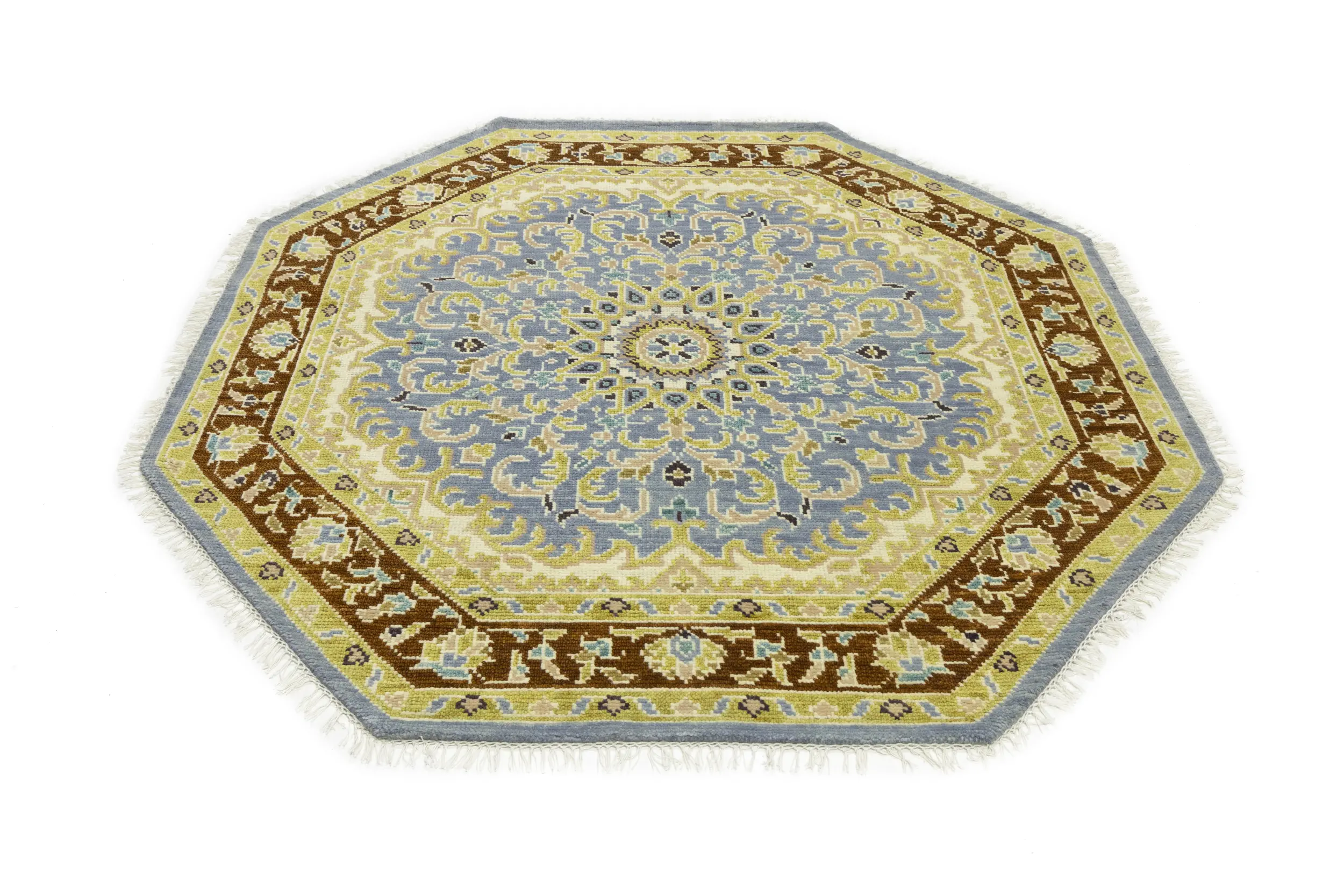 Blue-gray Floral 6X6 Traditional Oushak Oriental Octagon Rug
