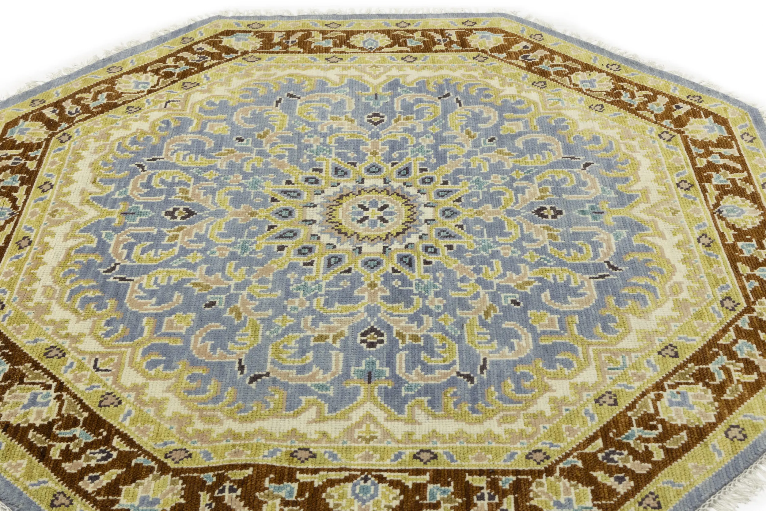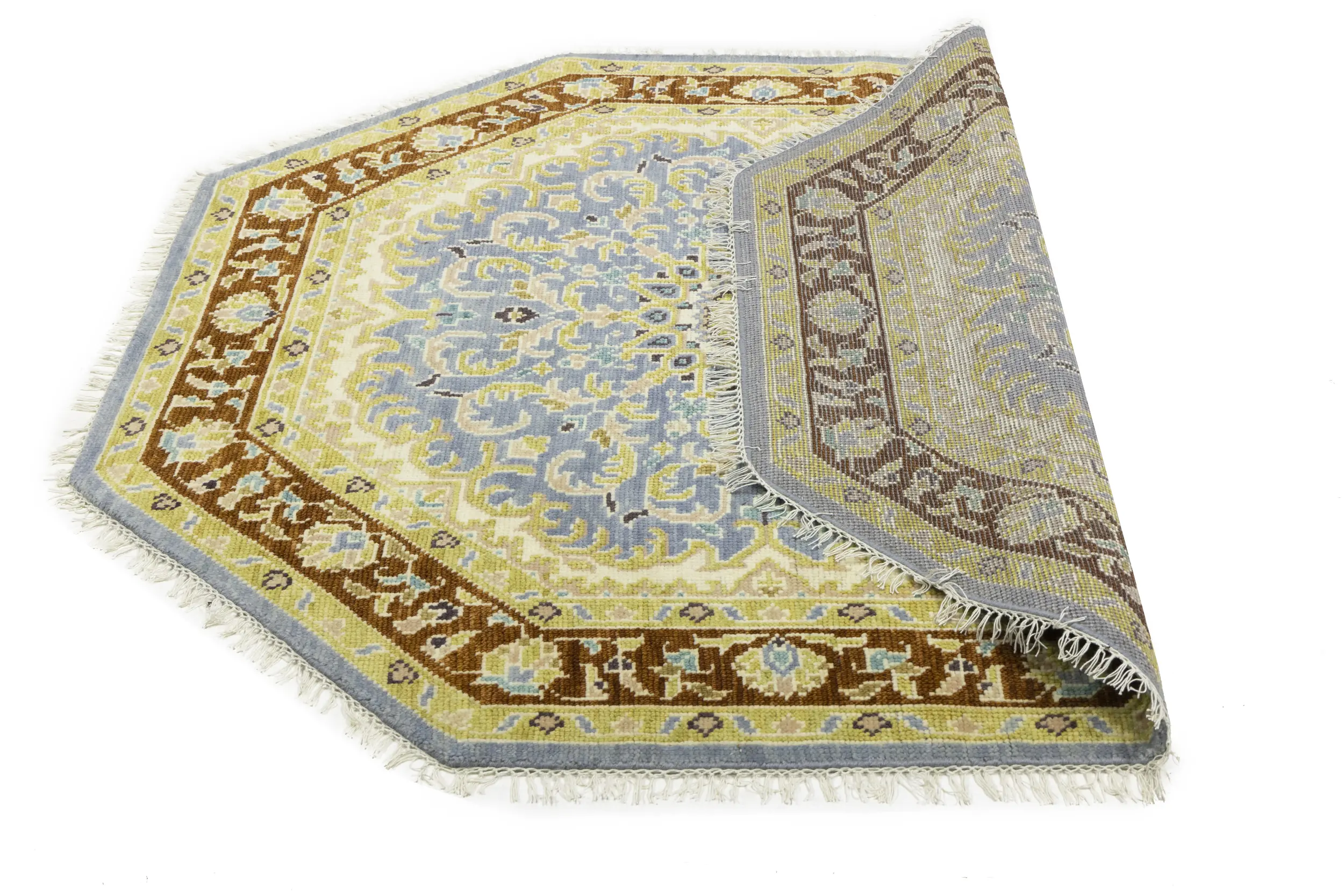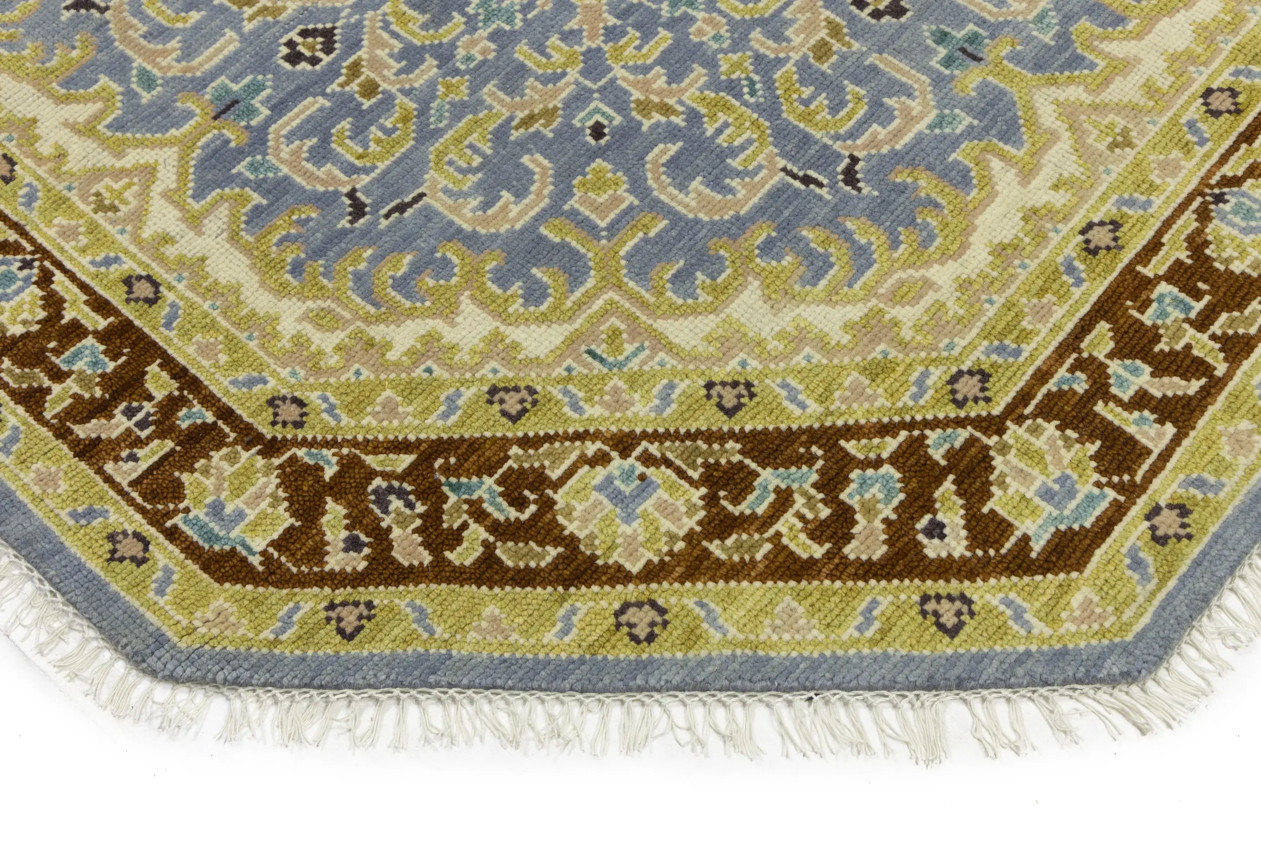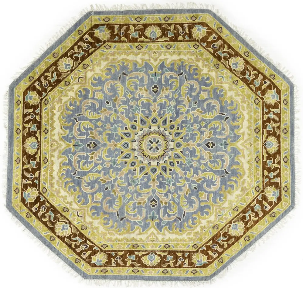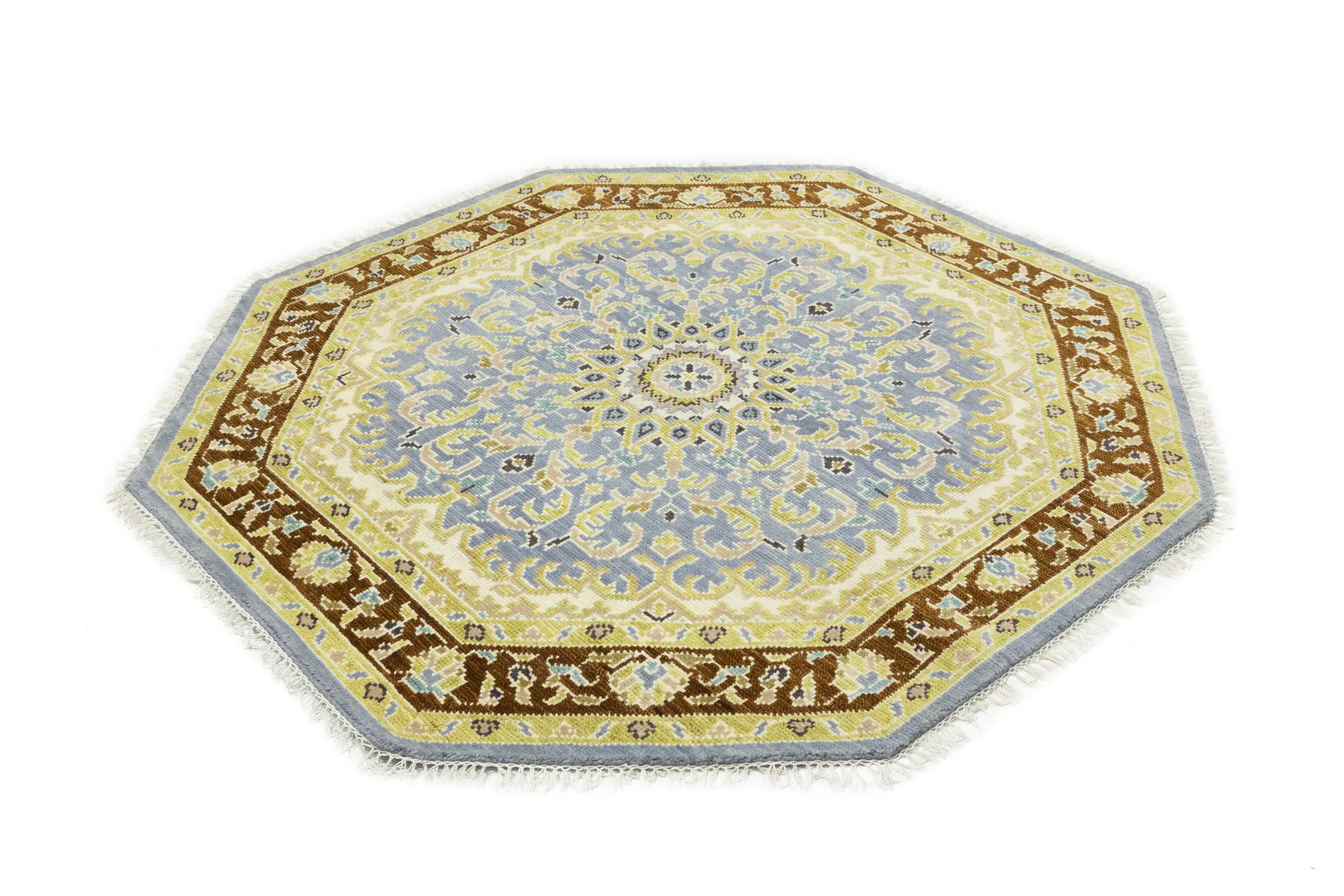 Blue-gray Floral 6X6 Traditional Oushak Oriental Octagon Rug