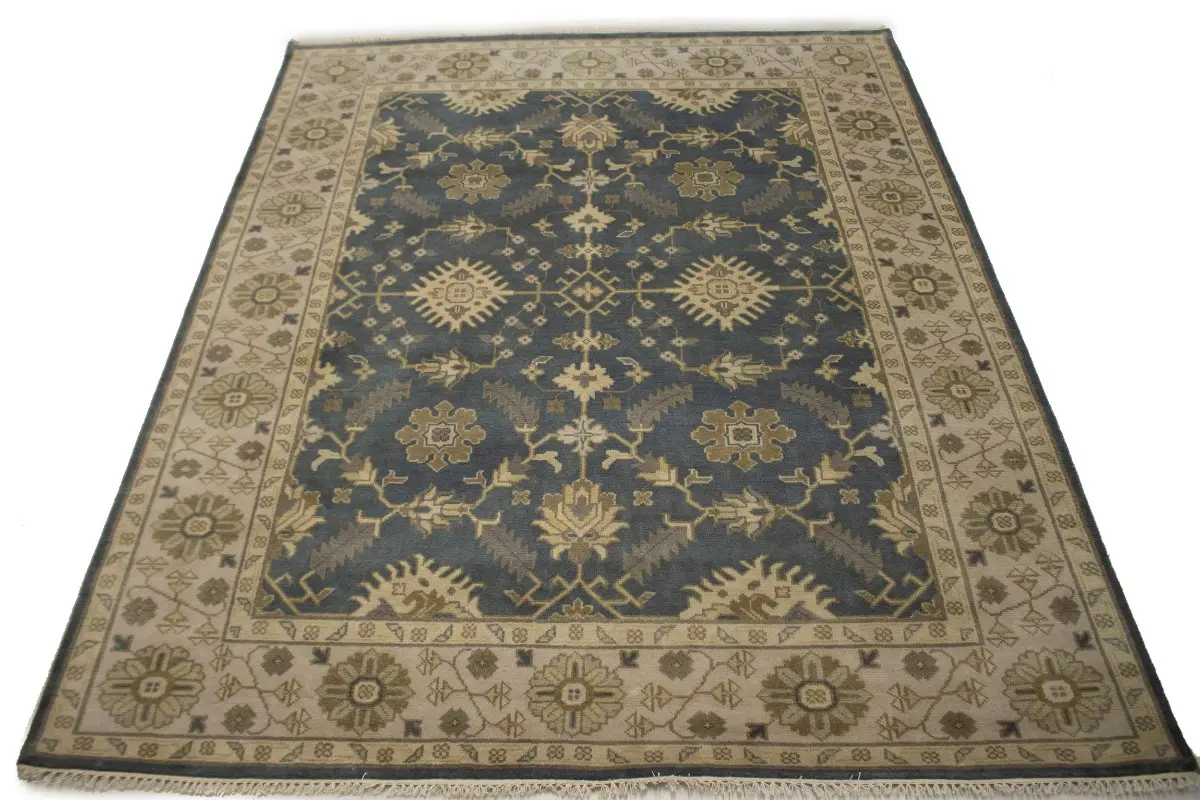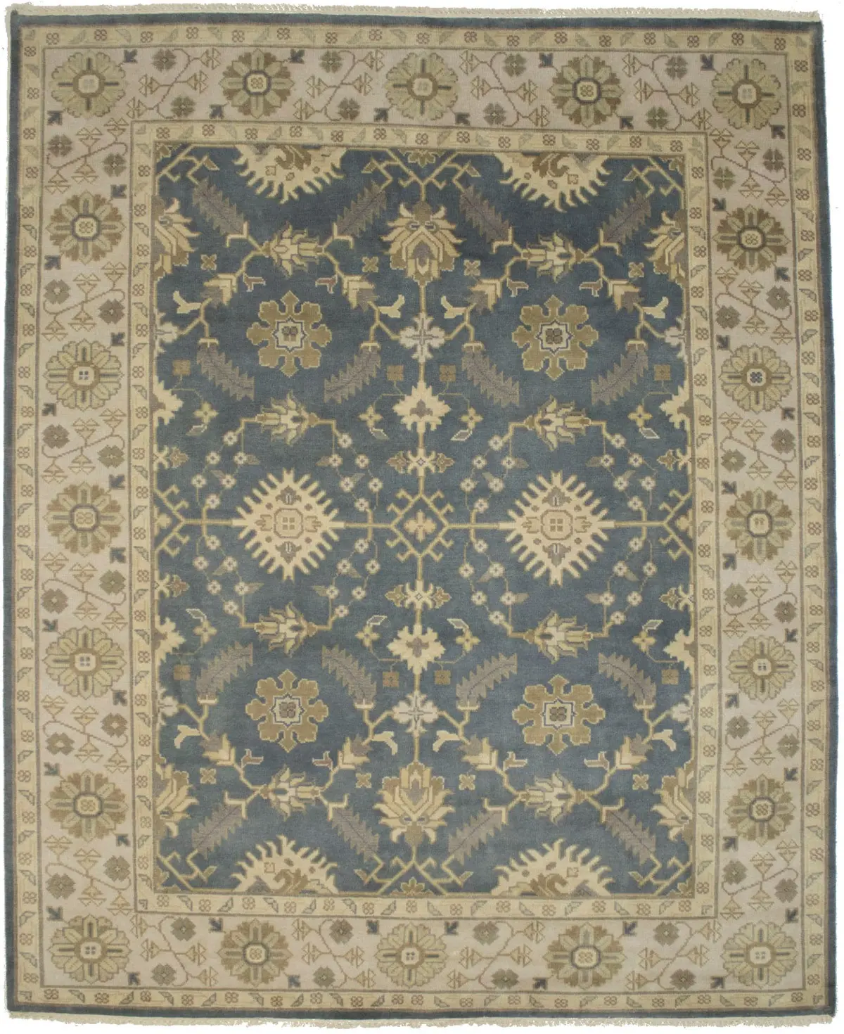This original 8X10 blue-gray new Oriental rug was made by the hands of talented weavers influenced by a variety of gorgeous symmetrical artistic designs, to recreate the aged look of the unique piece with a richness of color and very balanced background field. What set this vintage style Oriental area rug from the others are the material and dye used (wool pile and cotton foundation), knot count, antique designs, fantastic grades, and its regional historical connection: it has deep roots, from the story of the people who produced it to the meaning of the symbols and colors displayed across its canvas that have been praised for centuries. This Indian home décor carpet will be completely cozy and inviting that never will go out of style! Also, this Oriental rug would be among your most valuable treasures, it is a great investment that accrues value over time, and it will last a lifetime because was woven with high-quality, all-natural wool. Eco-friendly, opulent yet affordable; this rug will give you an extra pop of character to help define your home environment with sophistication and warmth that will capture the eyes and attention of your audience (homeowners, designers, decorators, family and friends). OT-4082
