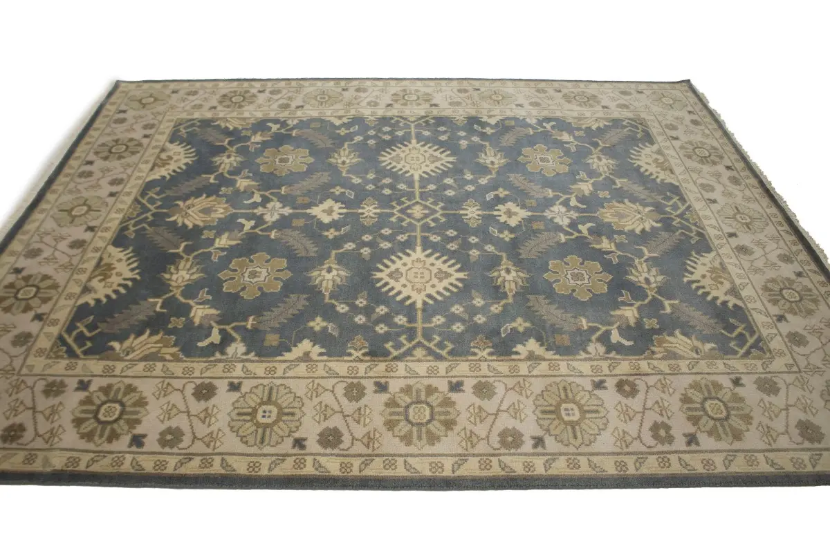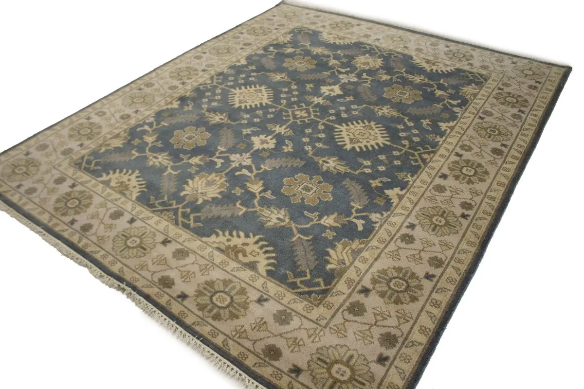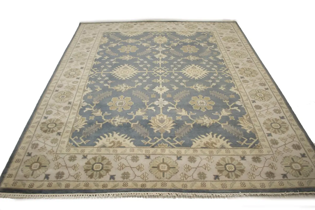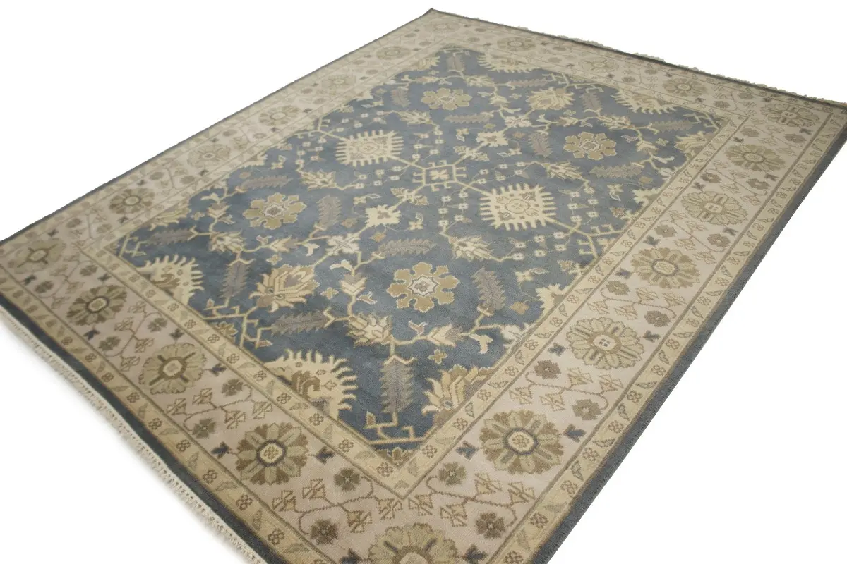 Blue-gray Floral 8X10 Oushak Chobi Oriental Rug